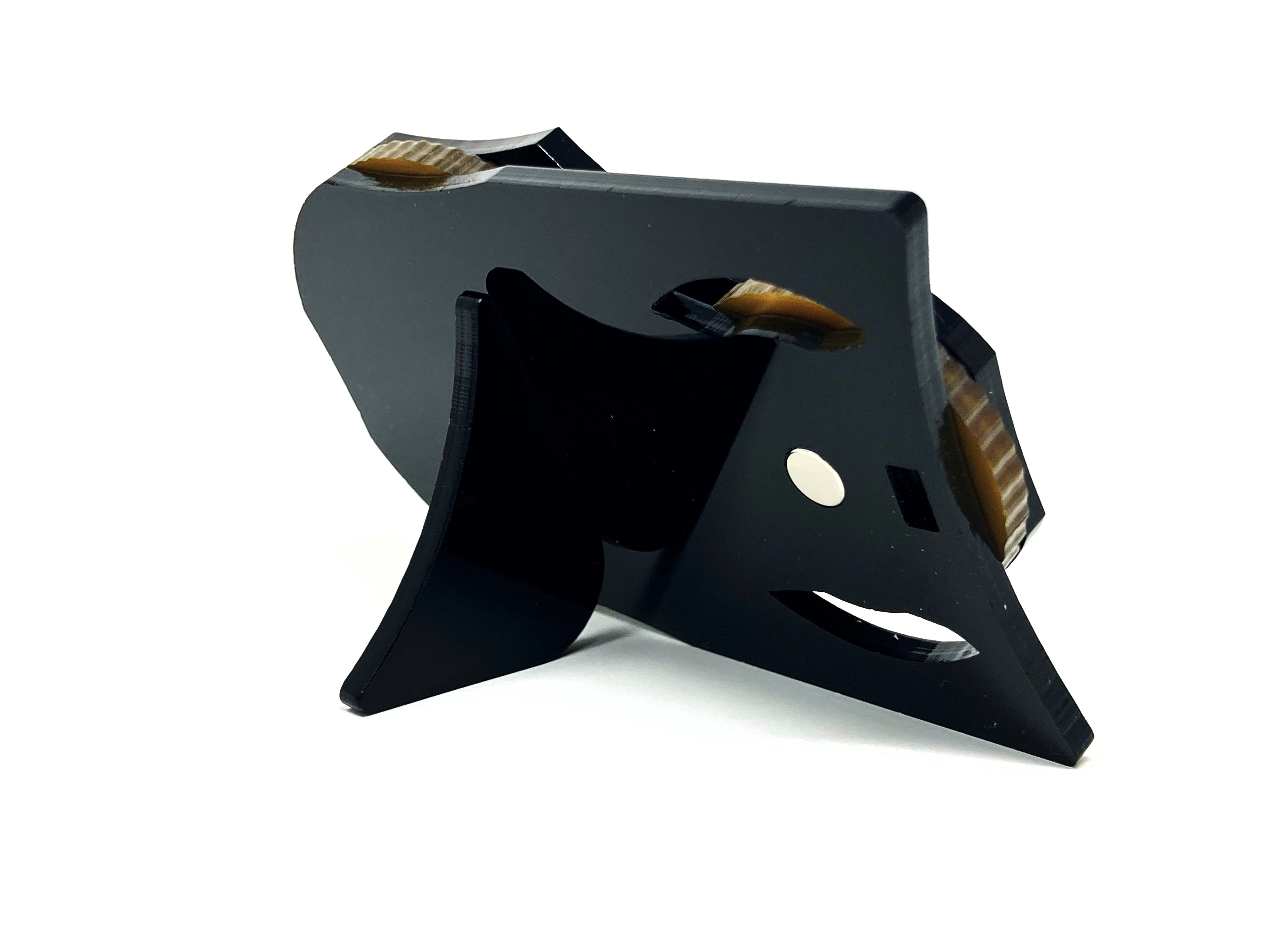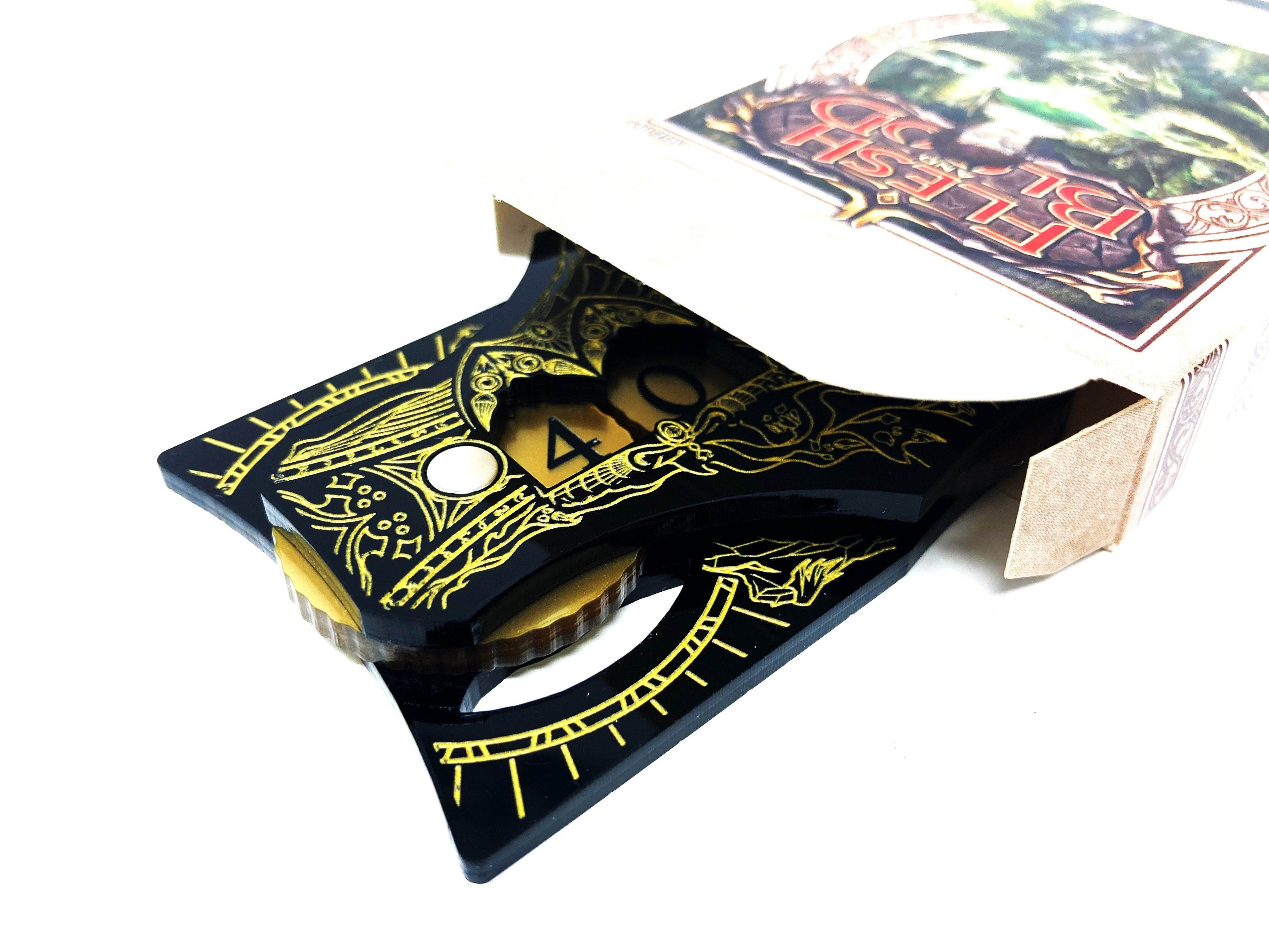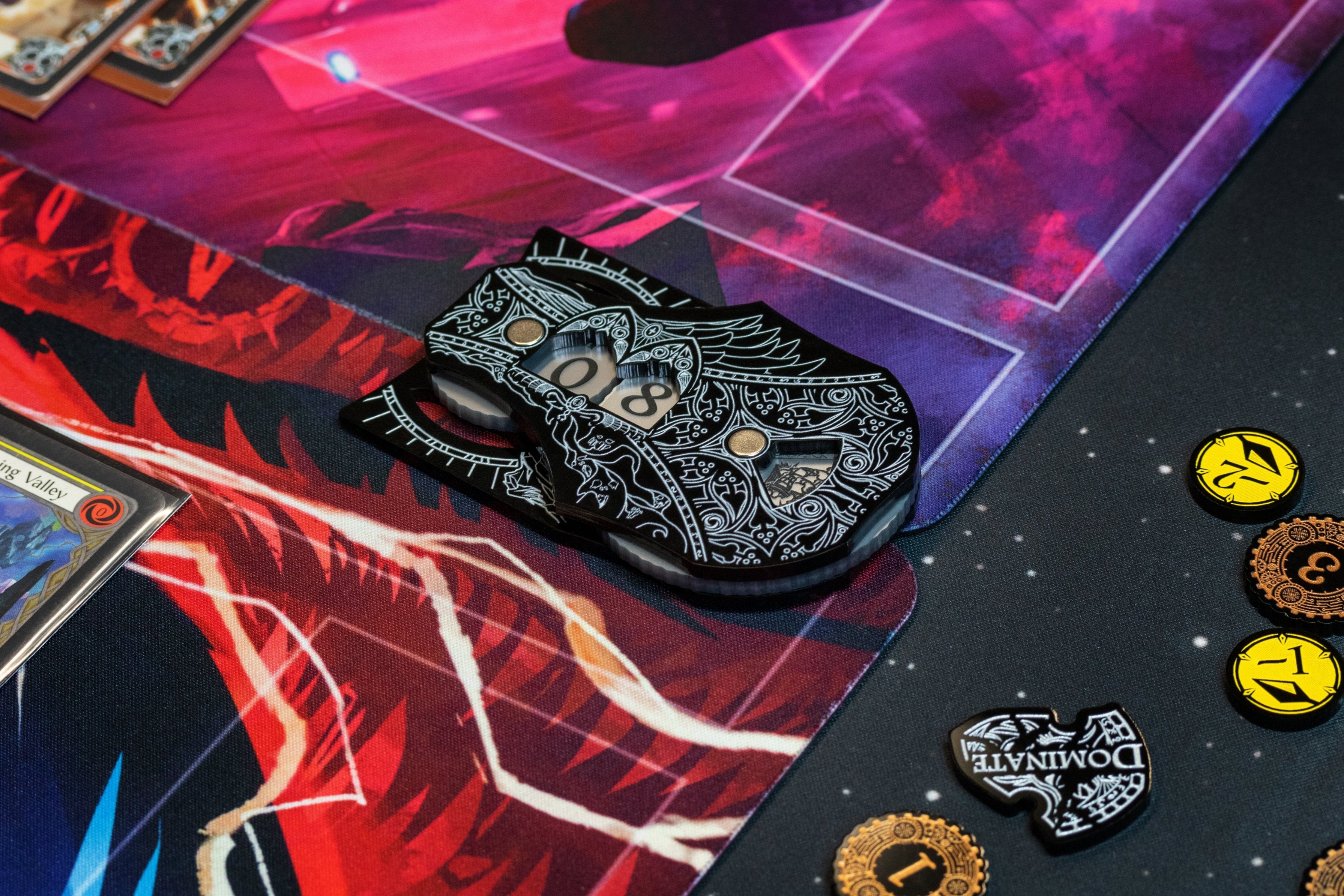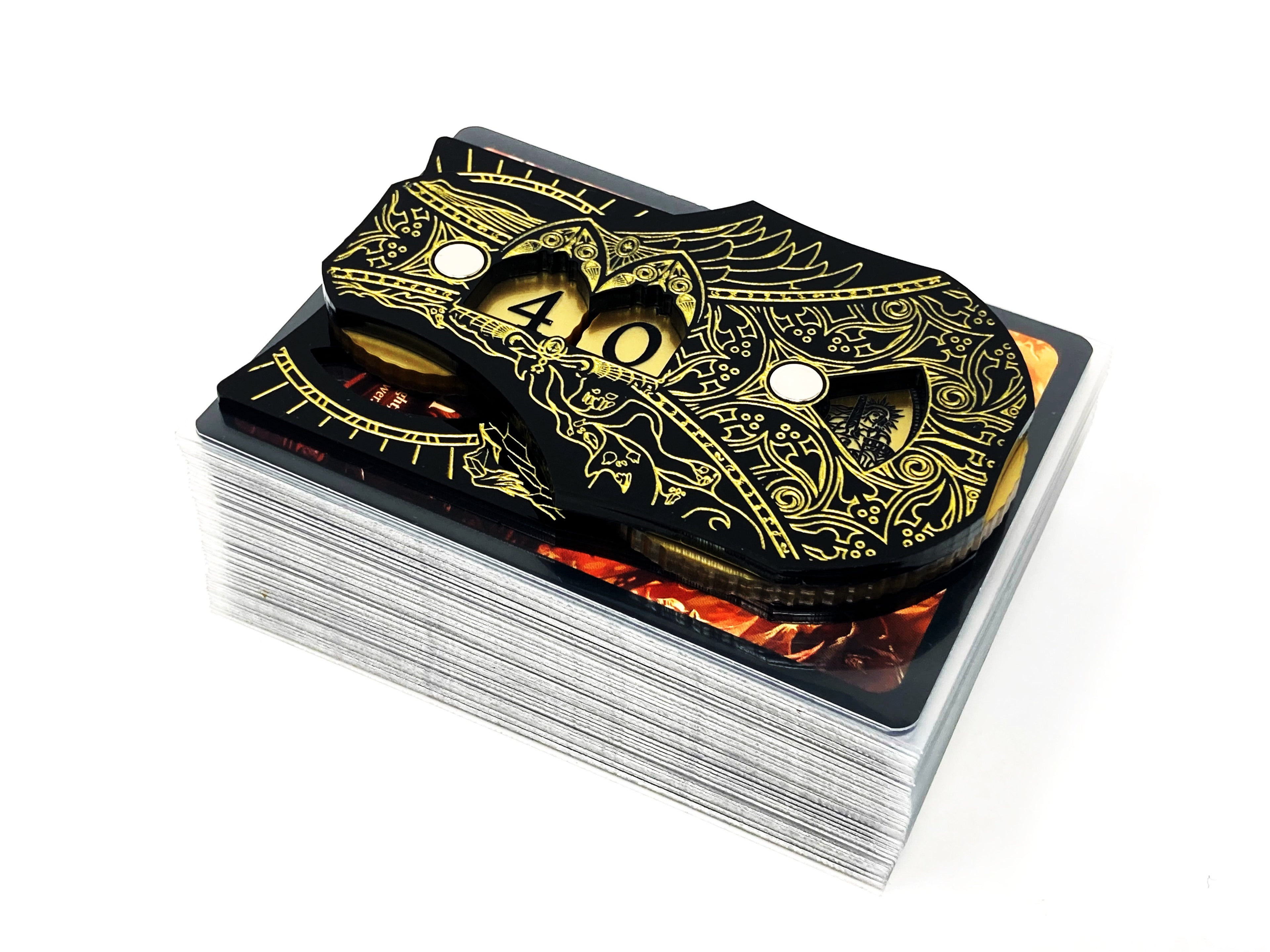 - A design with card storage in mind that fits within the profile of a standard game card, allowing it to be stored within a deck box for safe and easy transport.