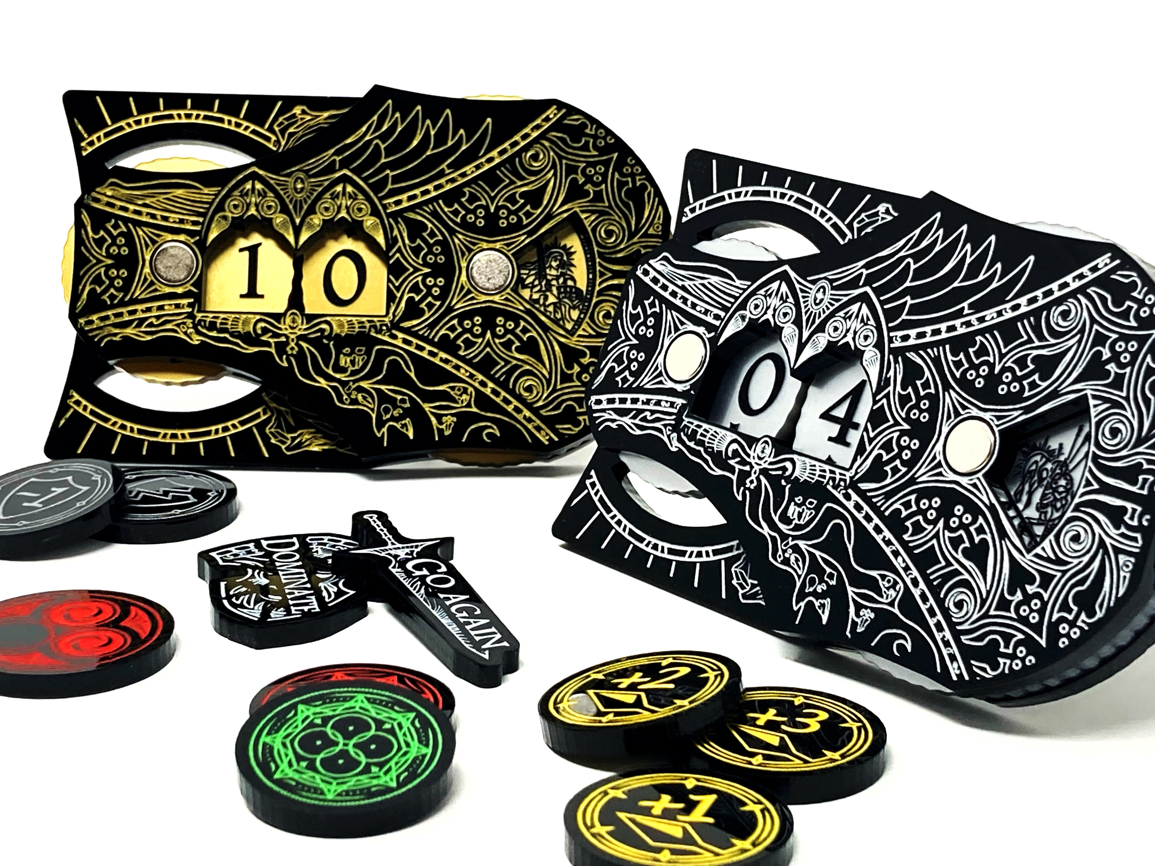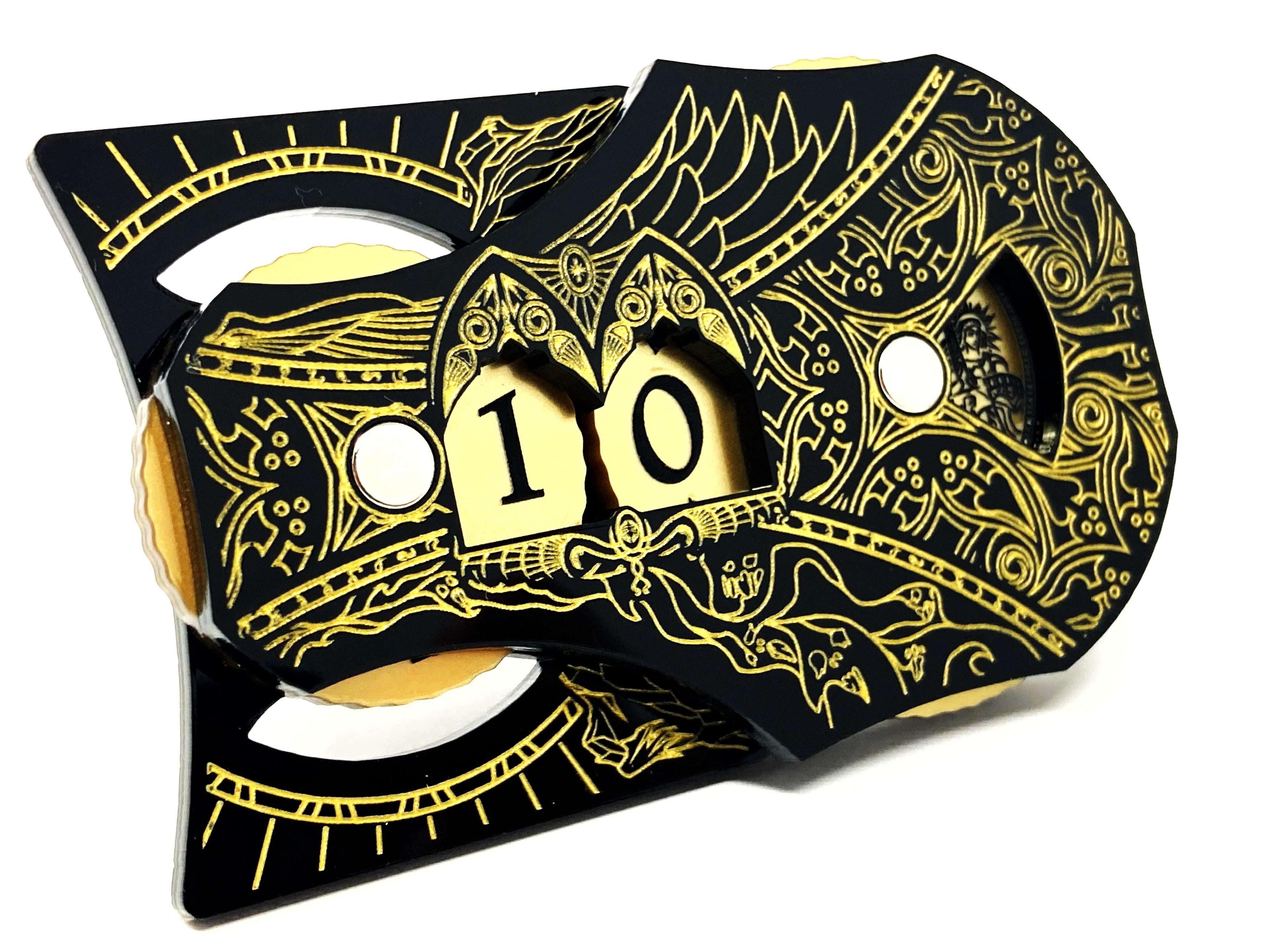 - Offered in two colour combinations to represent both the forces of good and evil and to help distinguish and avoid confusion between each players health dial.