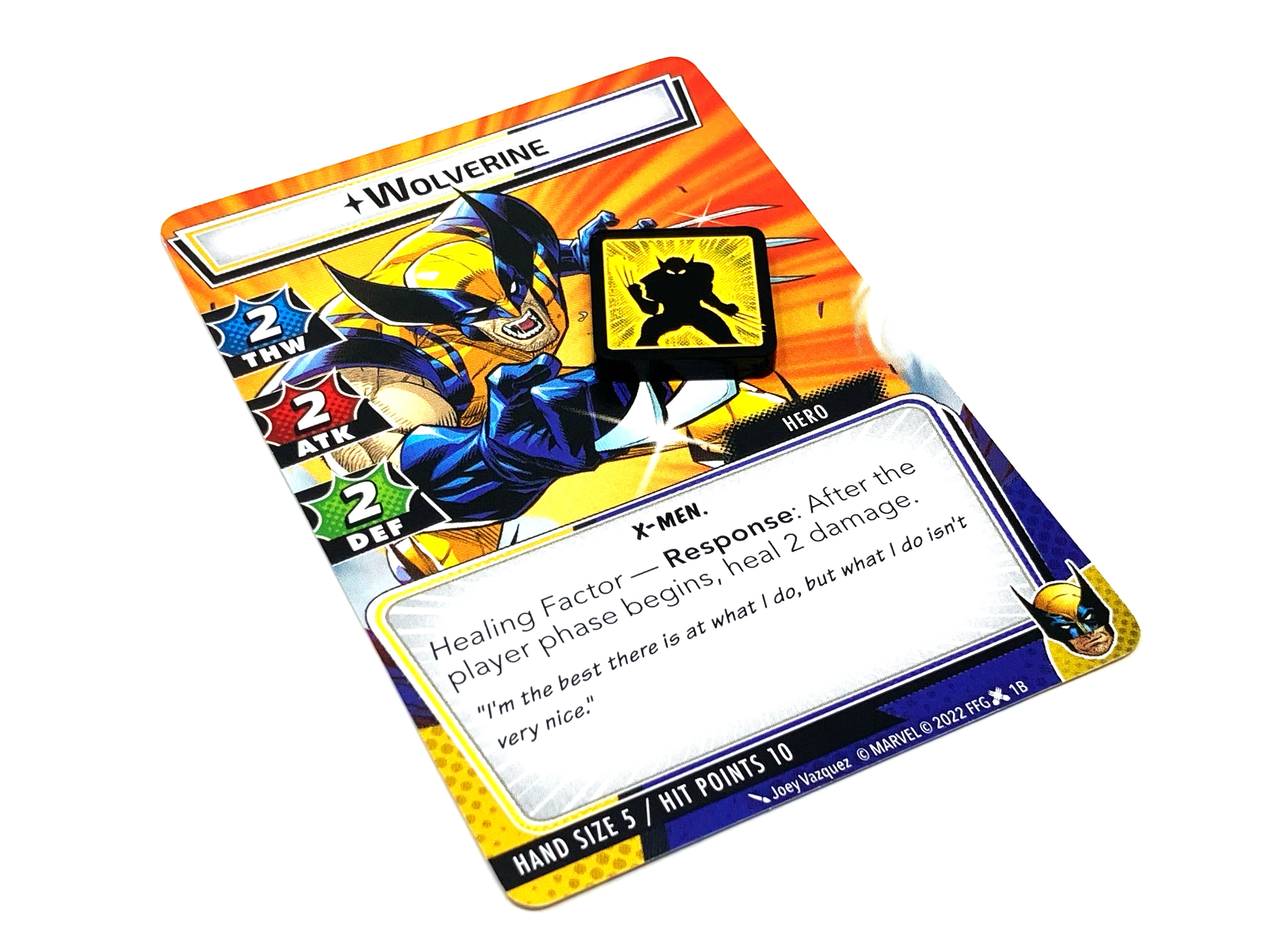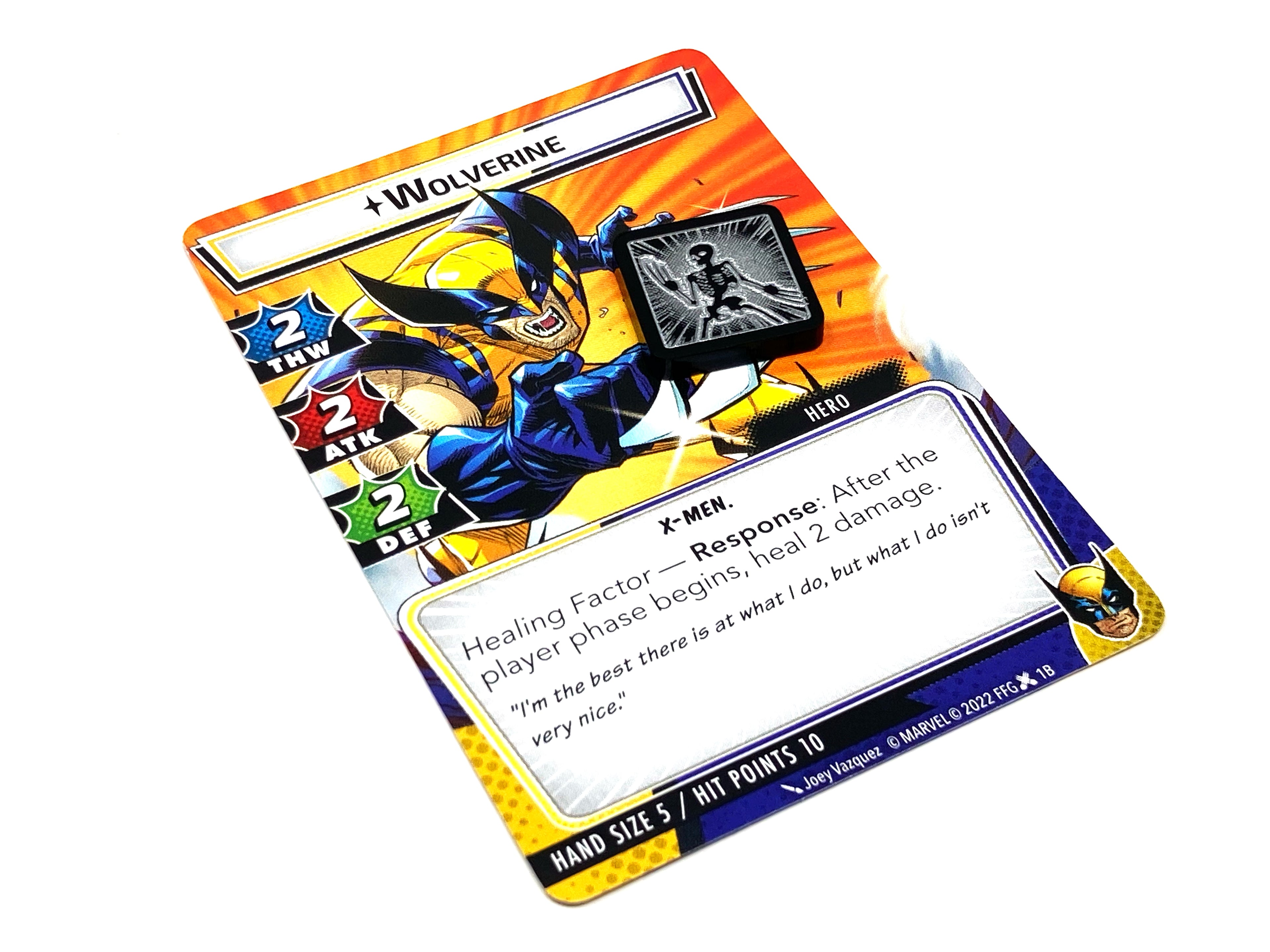 With brightly painted etched details on both sides, these easy-to-read and high contrasting tokens are both a thematic and practical reminder for Wolverine's healing factor ability.