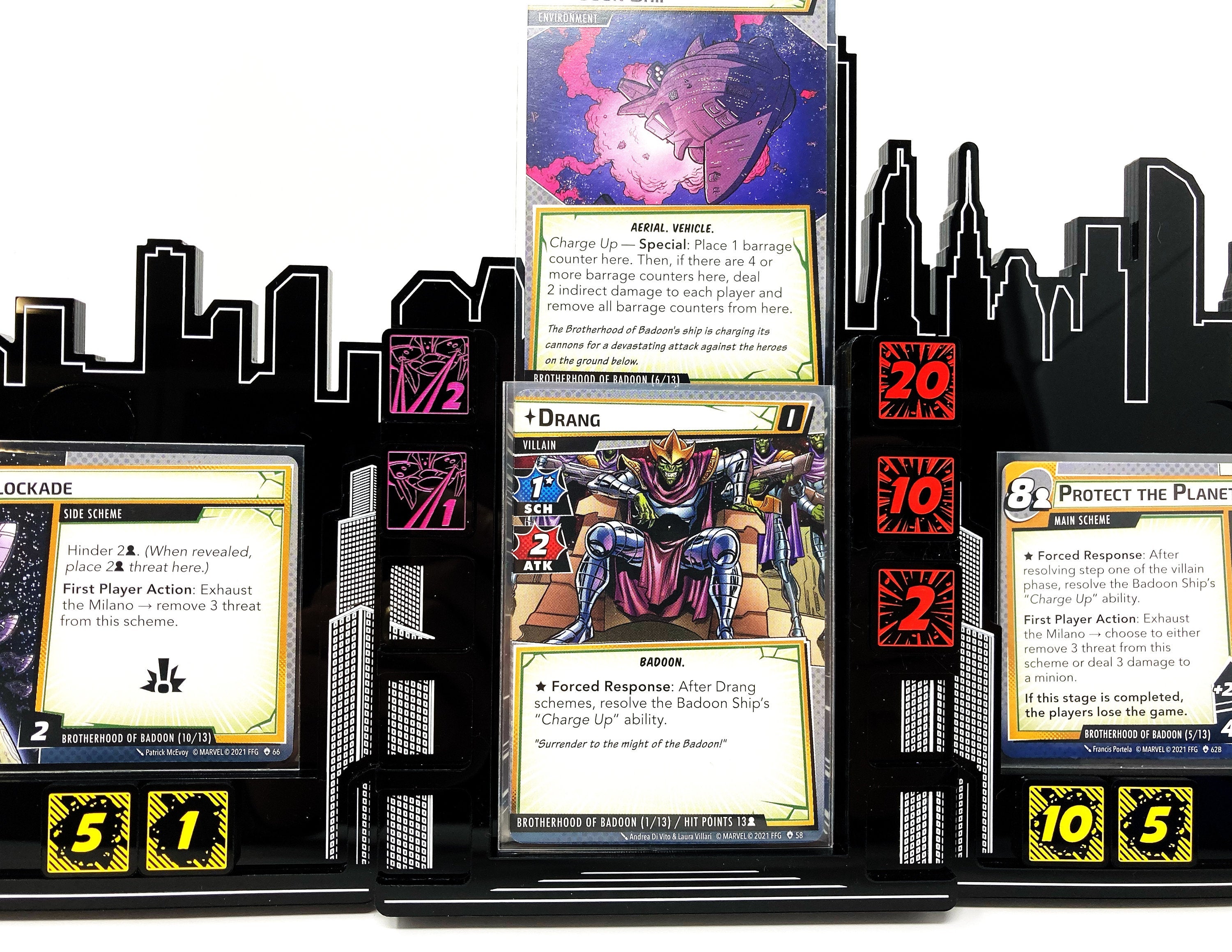Stick it to the Brotherhood with these awesome thematic Barrage Tokens. Showing a single laser blast on one face and a double on the reverse, keeping track of when you’re about to get blasted by Drang has never been so stylish.