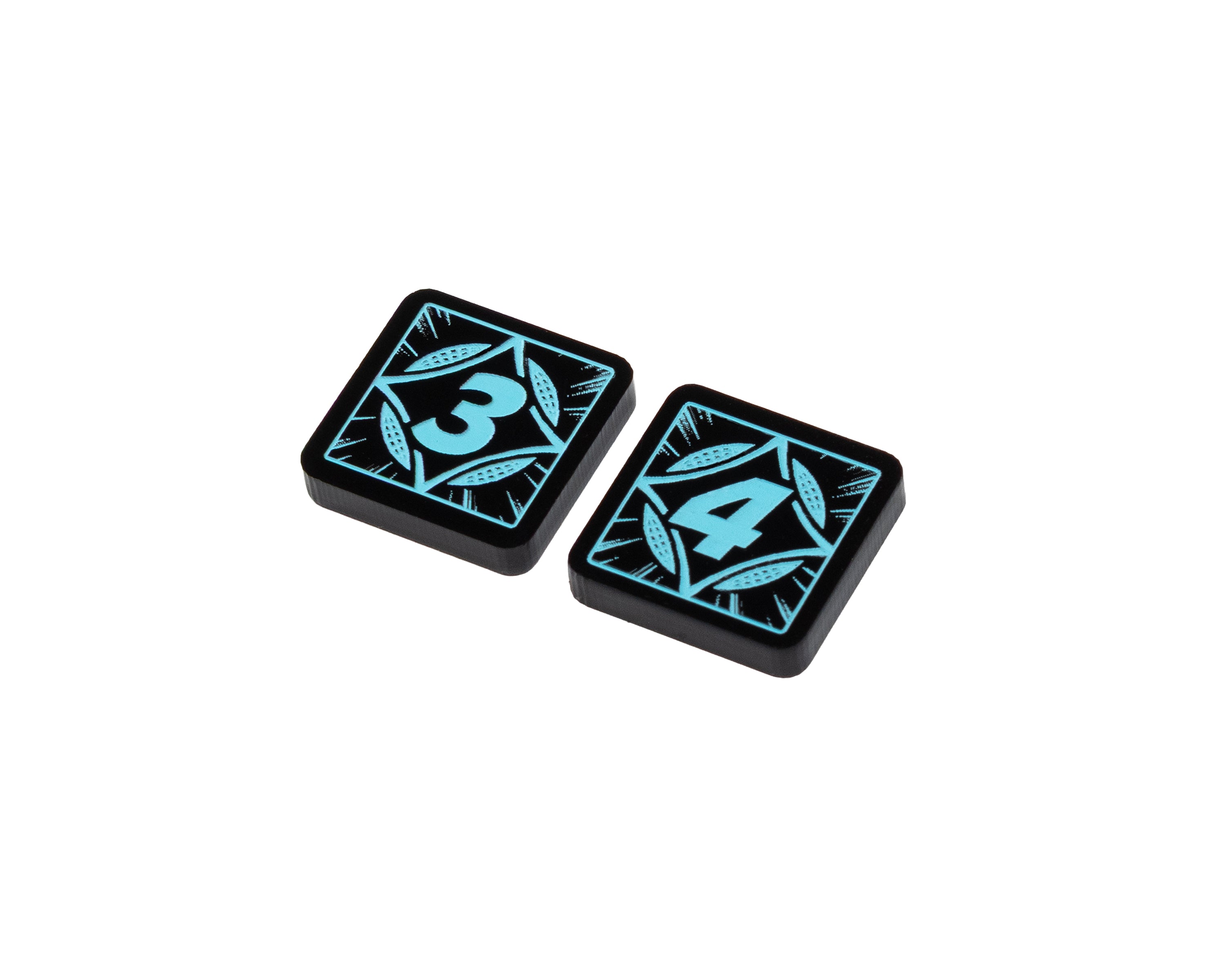 - 2 x All Purpose Tokens (3/4 denominations), double sided, measuring 18mm x 18mm