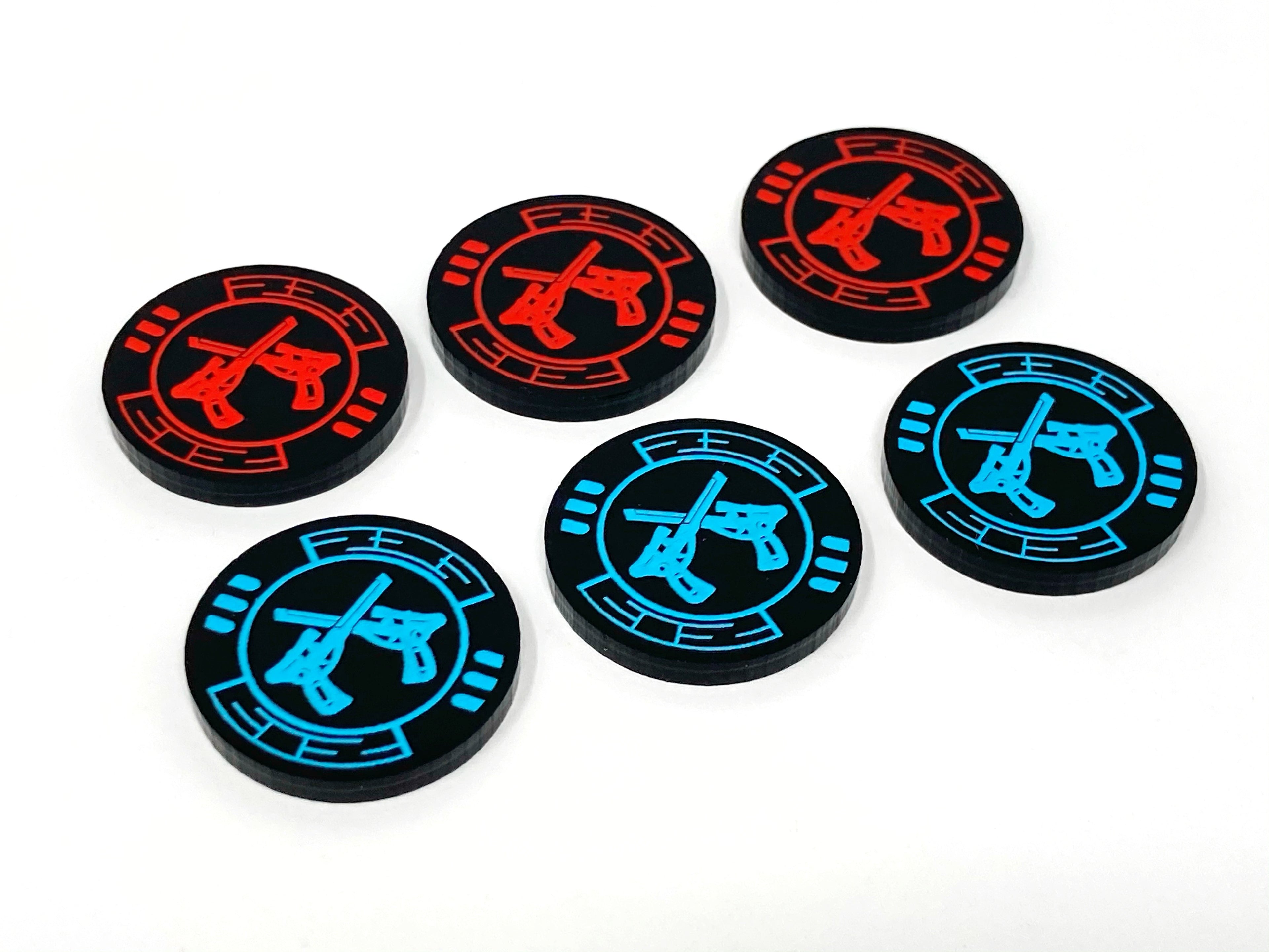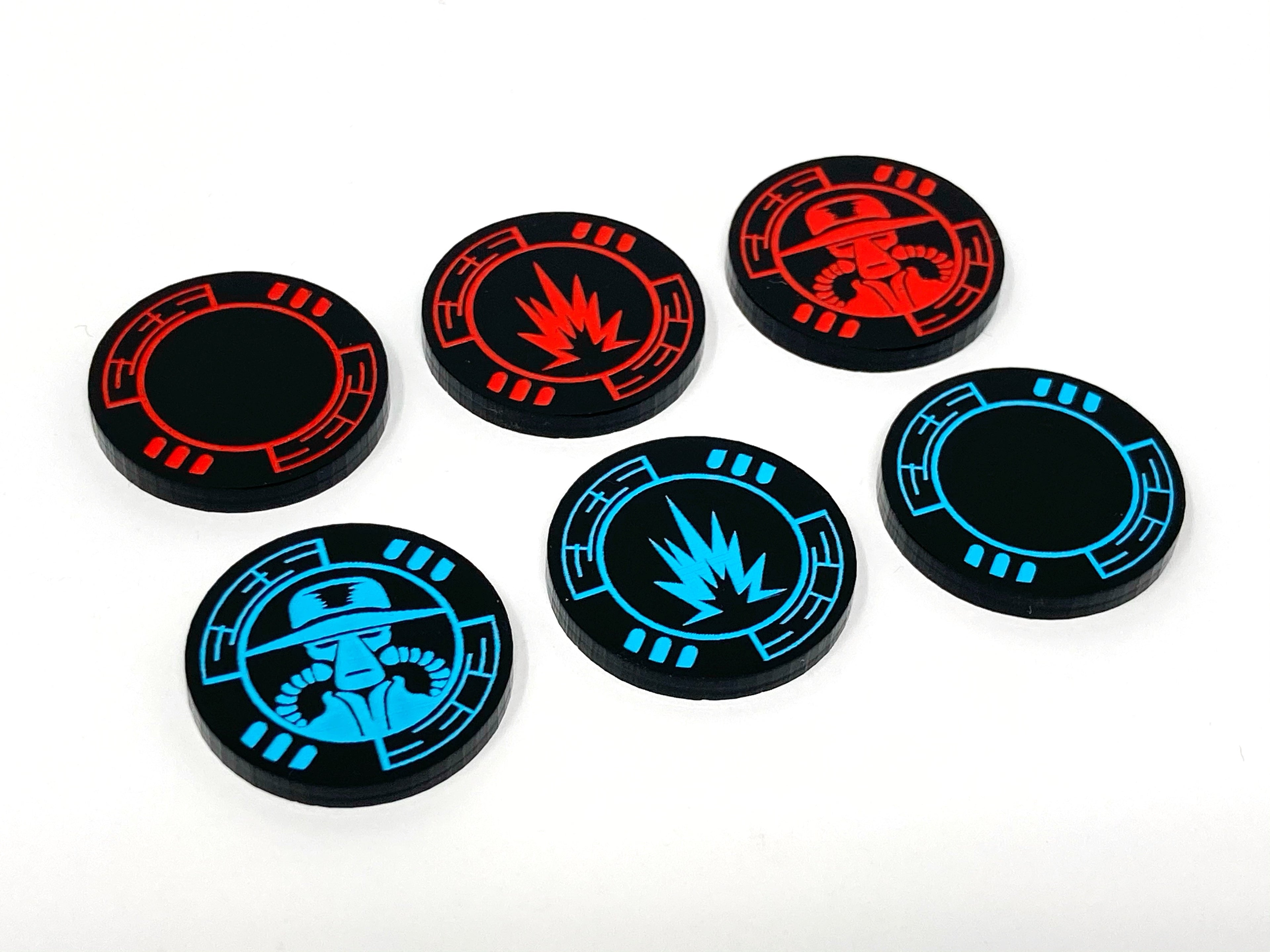 - 6 x Cad Bane tokens (Double sided, black acrylic, painted light blue & red)