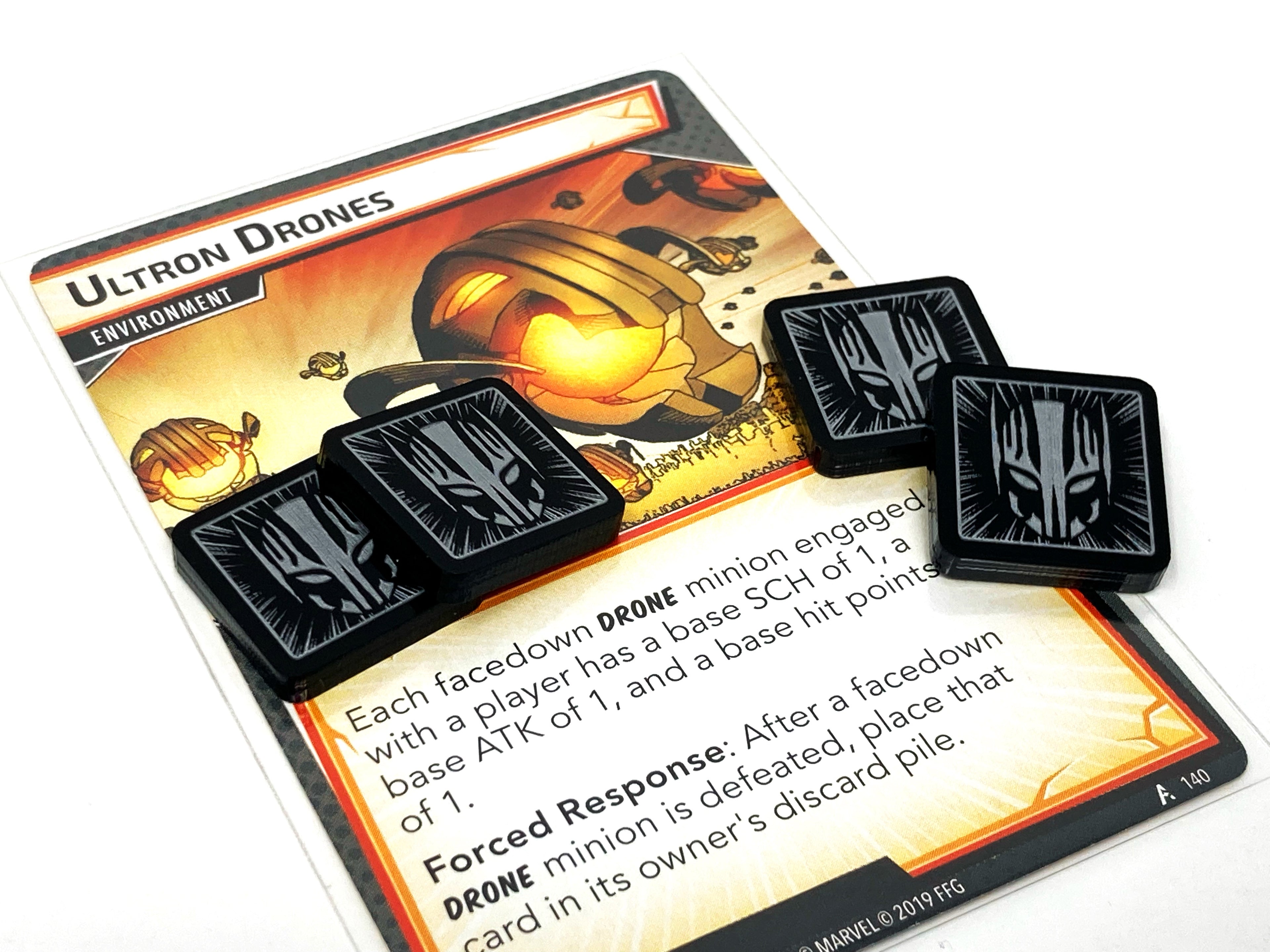 These thematic drone tokens will help to not only keep track of Ultron's minions engaged with your hero's, but will also add a level of immersion otherwise lost when simply using player cards. Showing a bright and bold design, keeping track of your enemies abilities has never been easier!