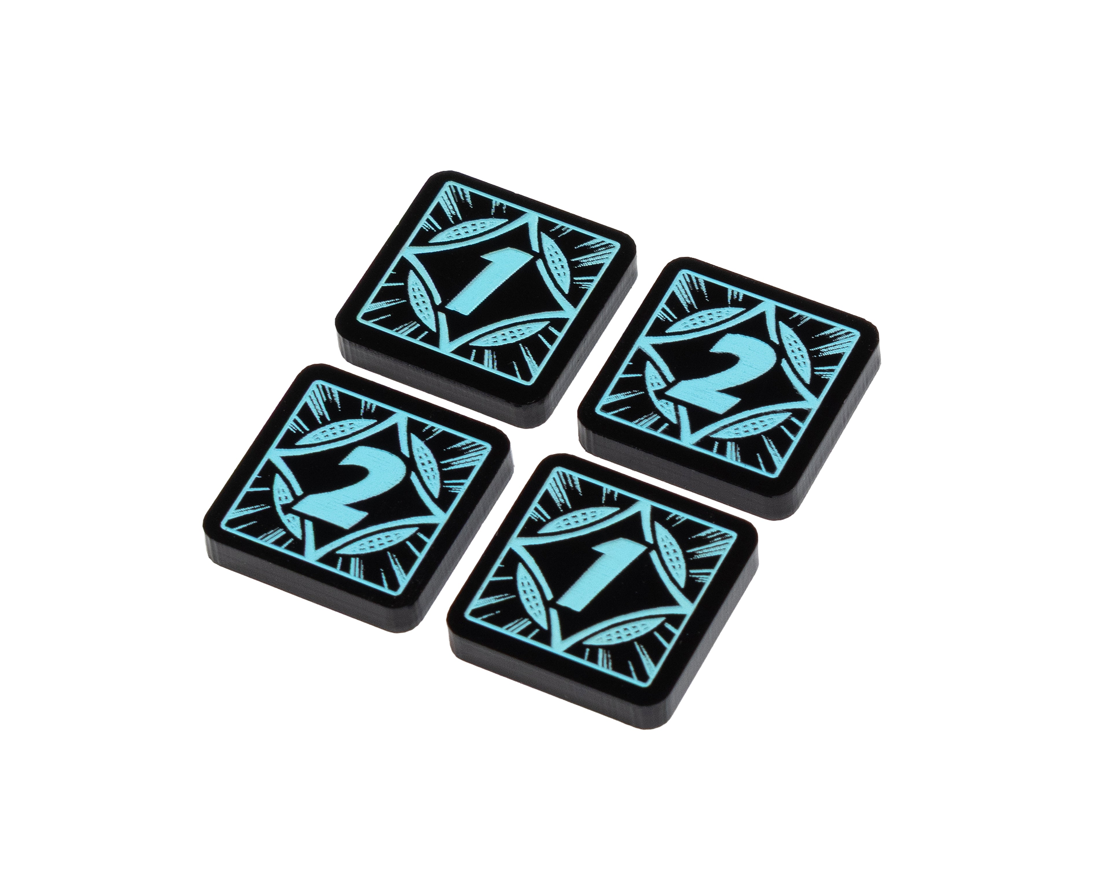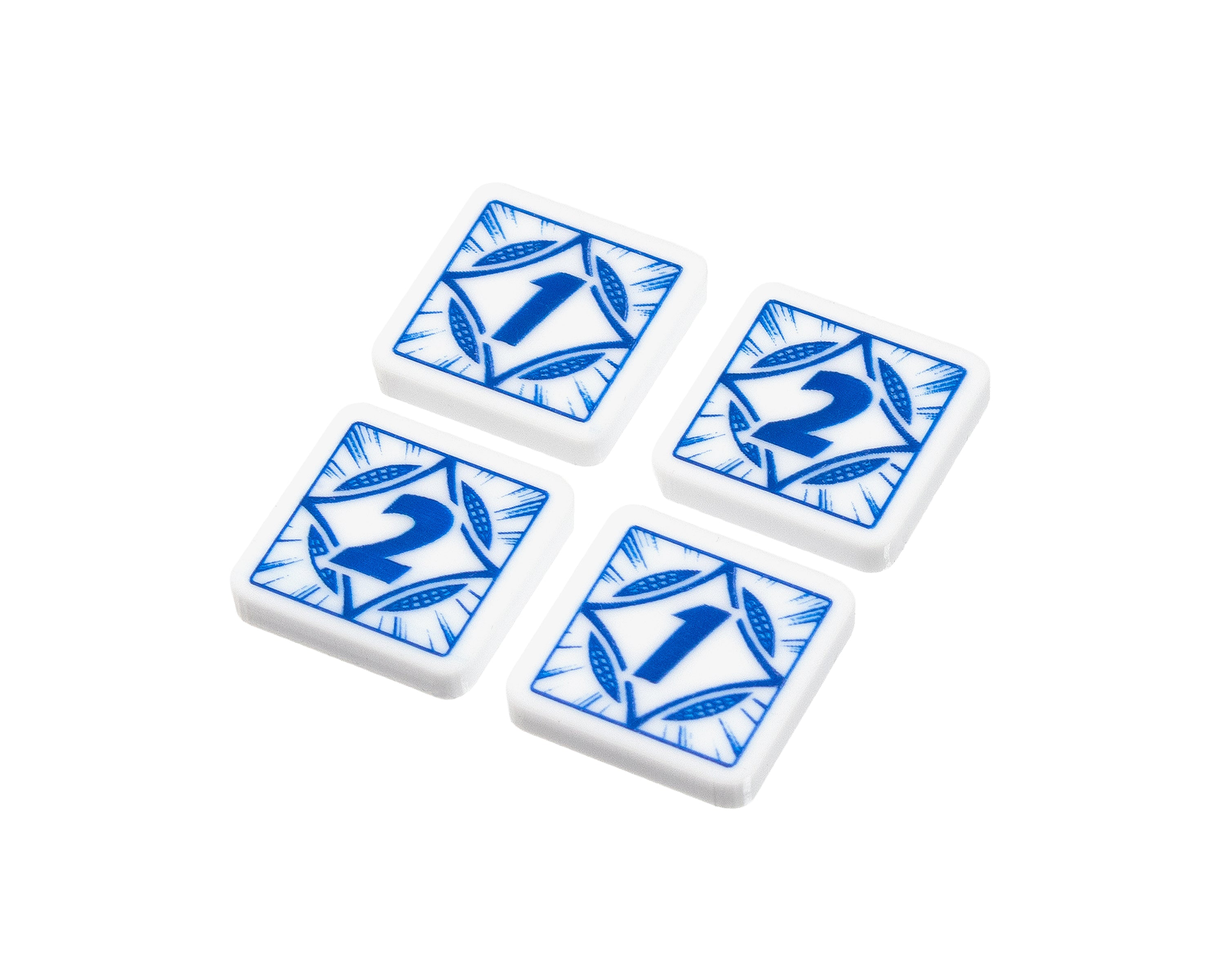 - 4 x All Purpose Tokens (1/2 denominations), double sided, measuring 18mm x 18mm