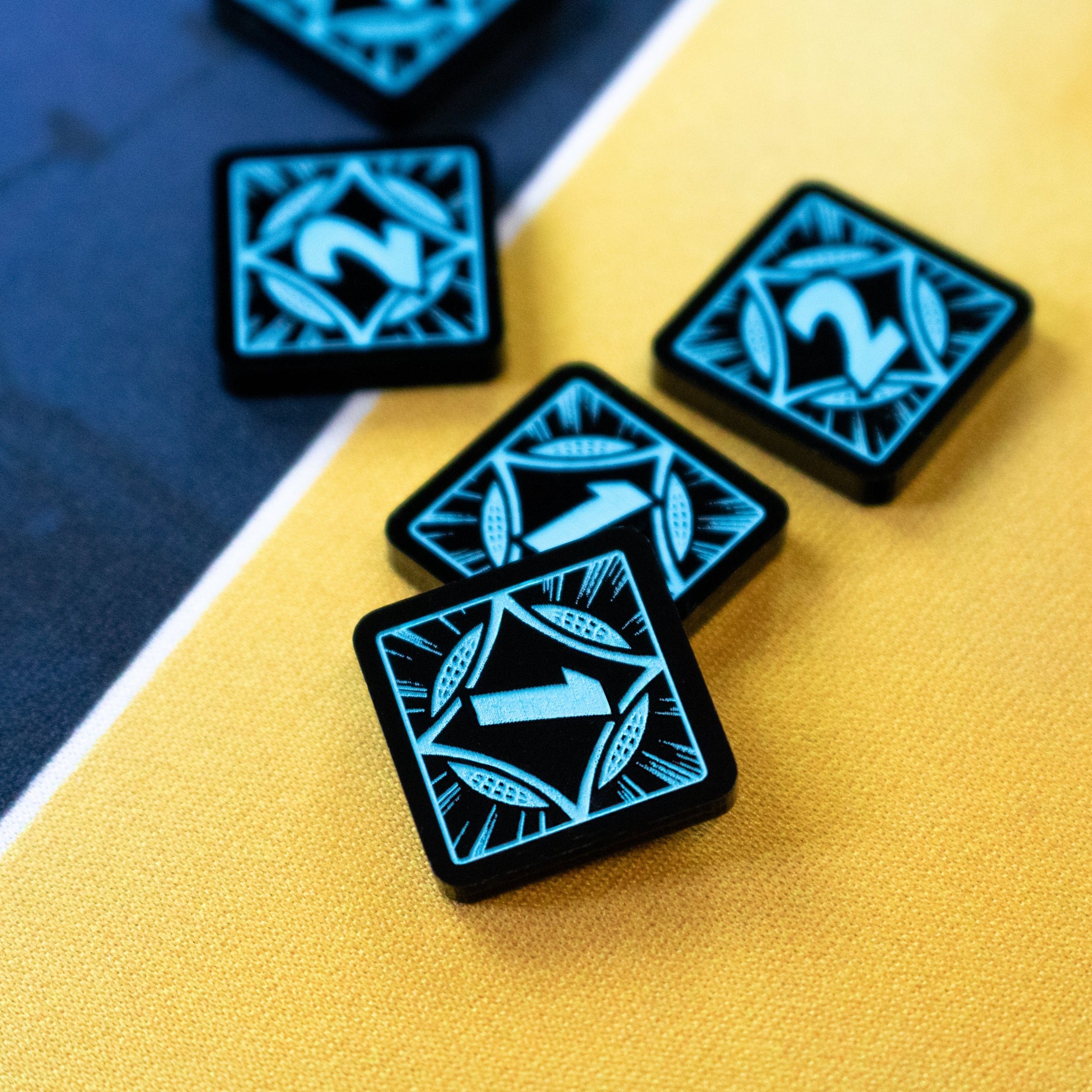 With an easy-to-read design and highly contrasting colours, these items are both a thematic and practical upgrade for your games.