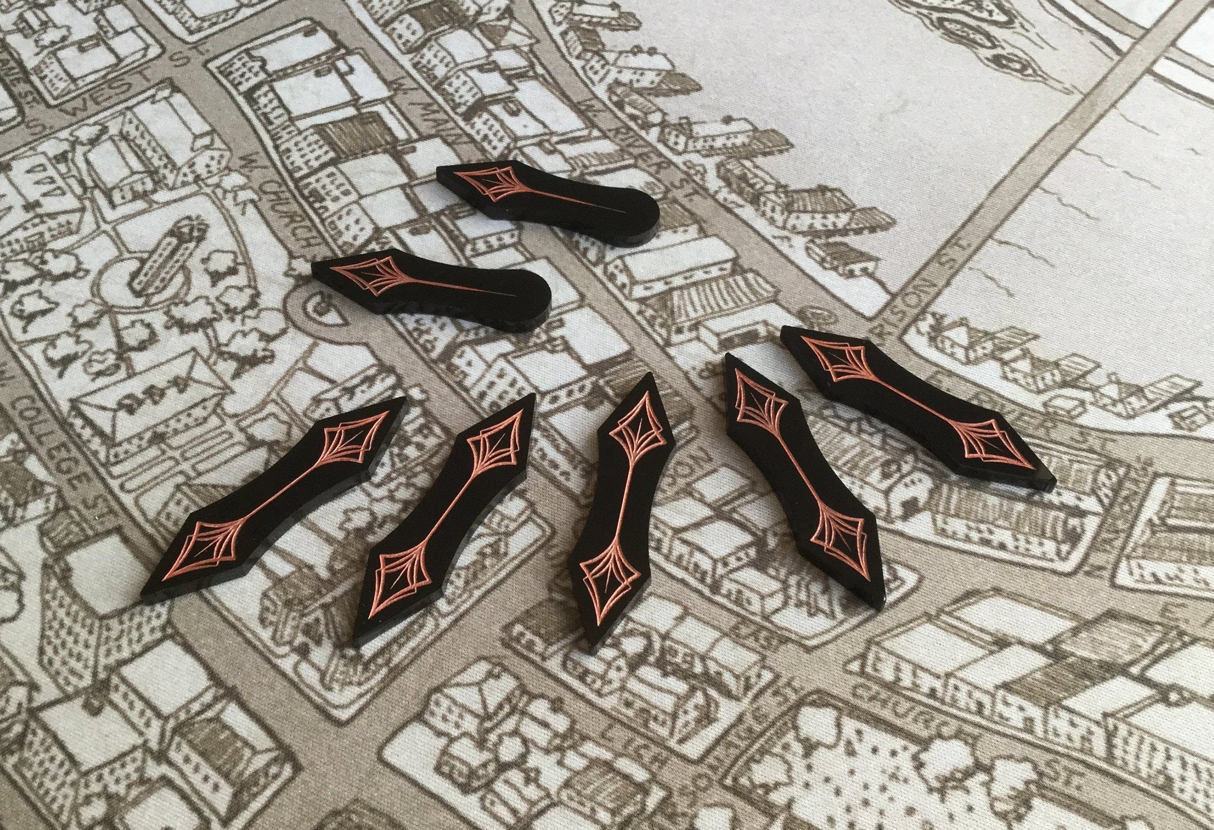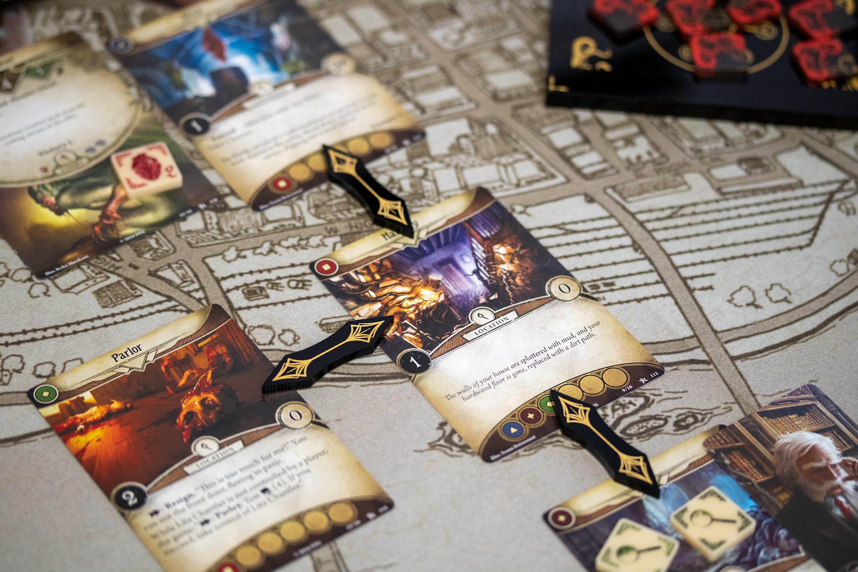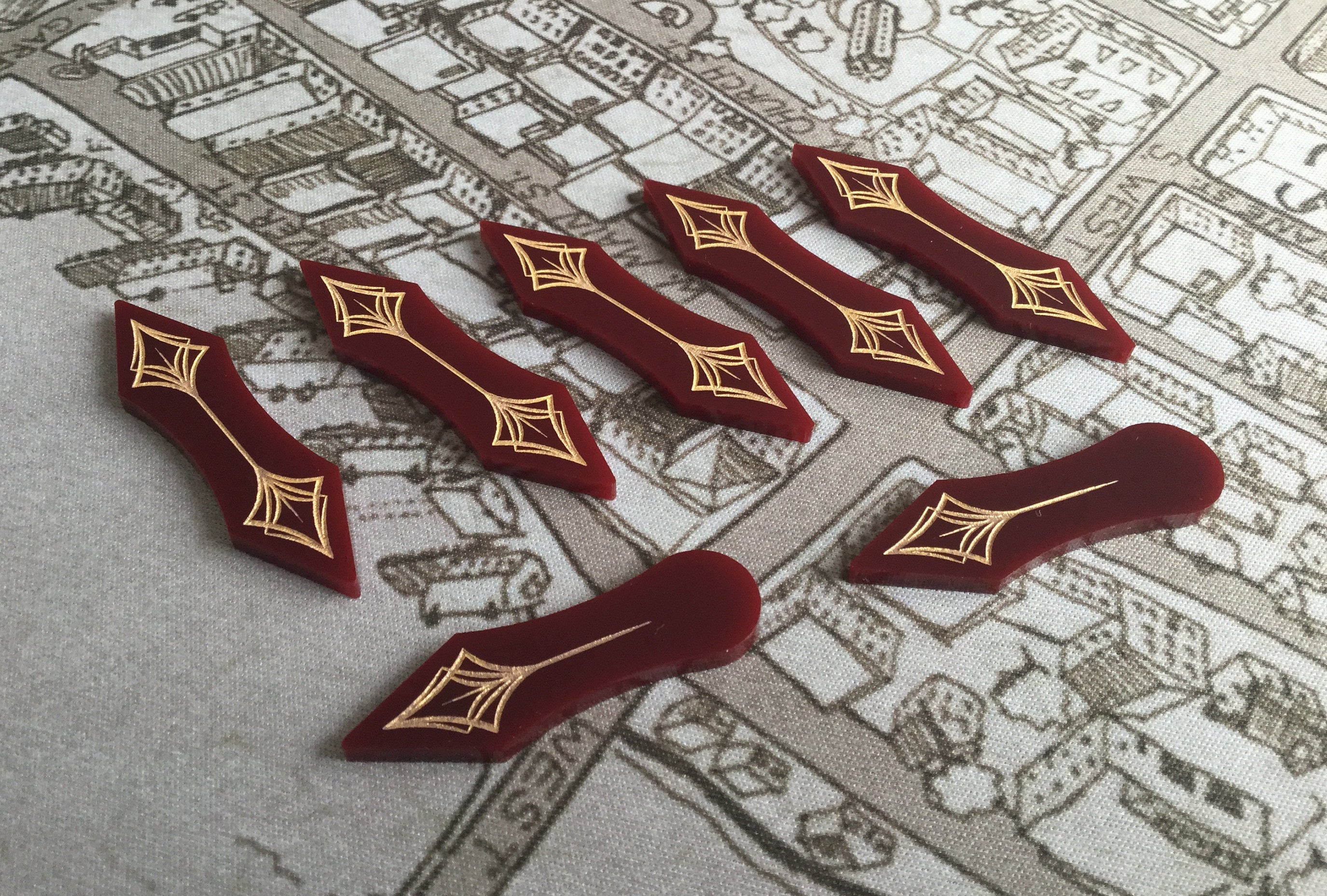 These Arkham horror LCG compatible path marker tokens help players easily recognize the available routes that can be taken across any given scenario without the need to address the individual cards for linked location to one another. Possibly the most useful upgrade for the game to date!