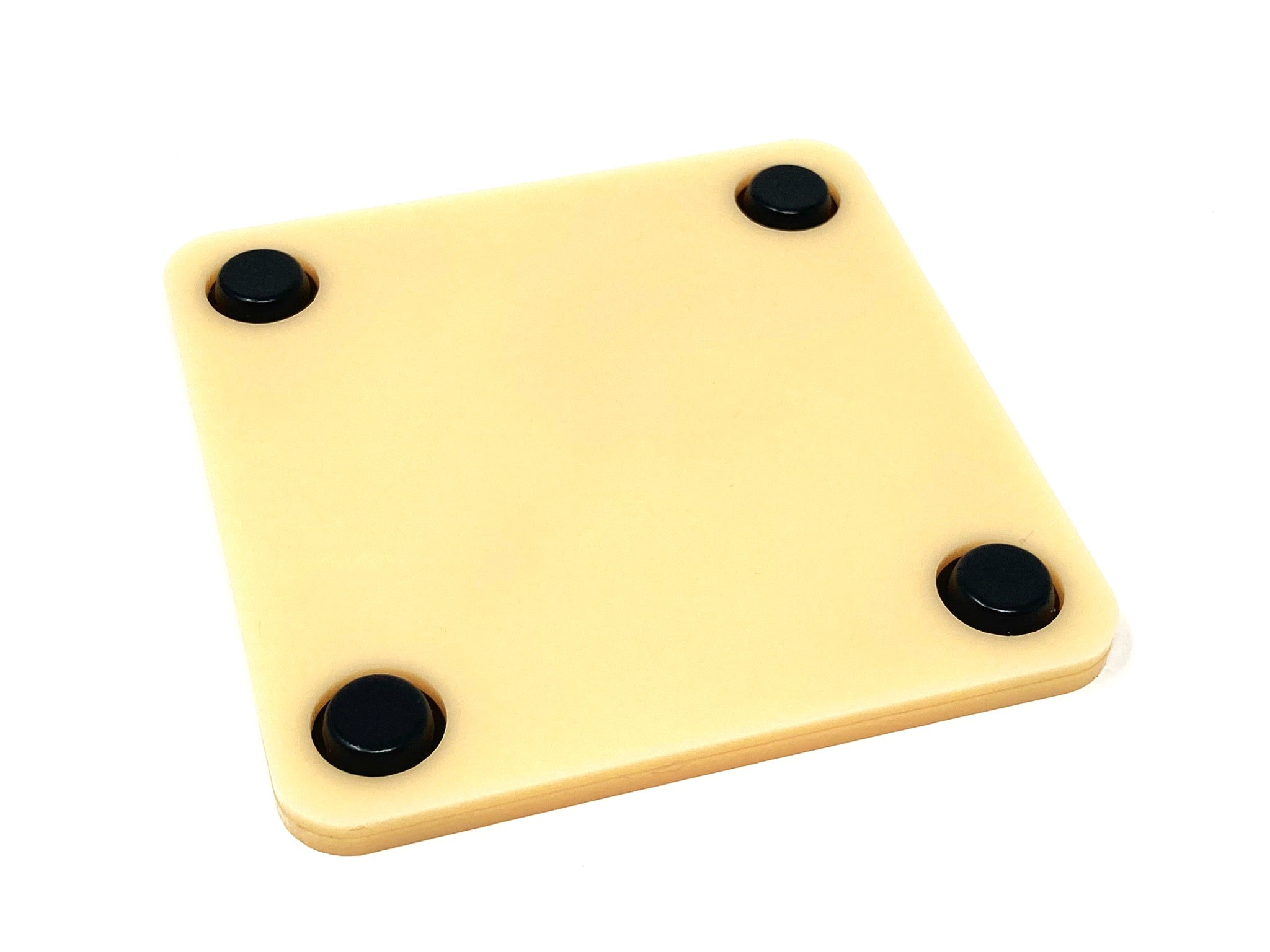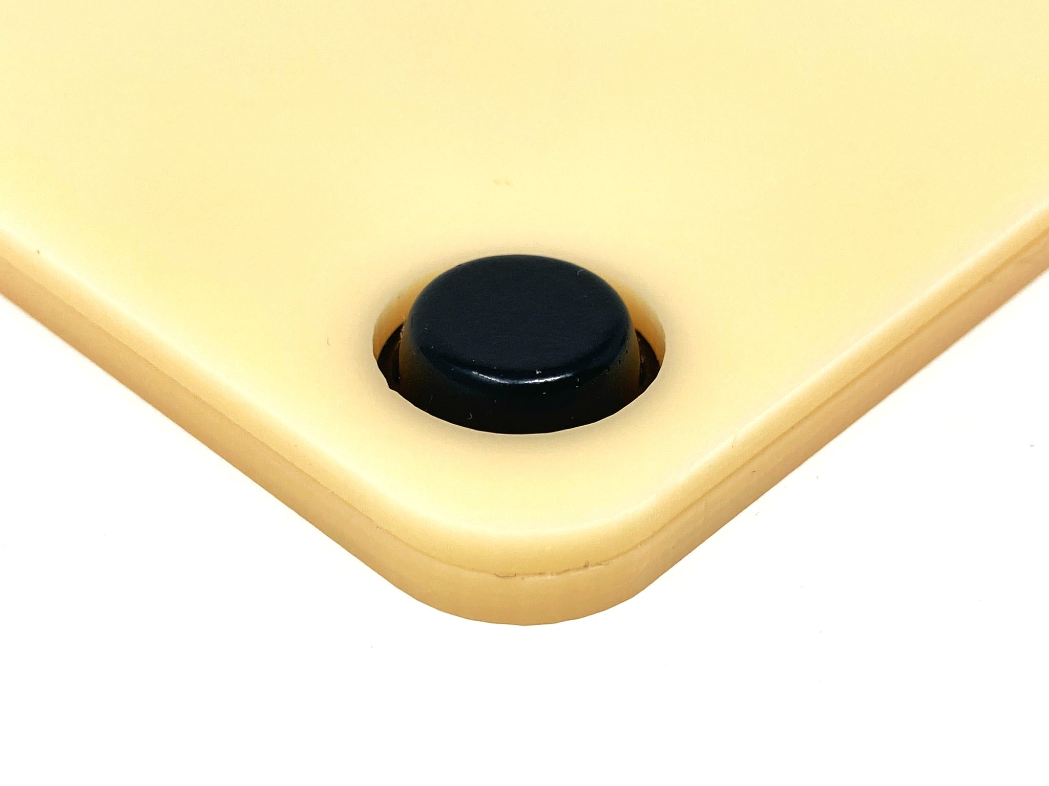 Rubber feet recessed into the coaster both elevate the coaster from the surface and prevent slipping.