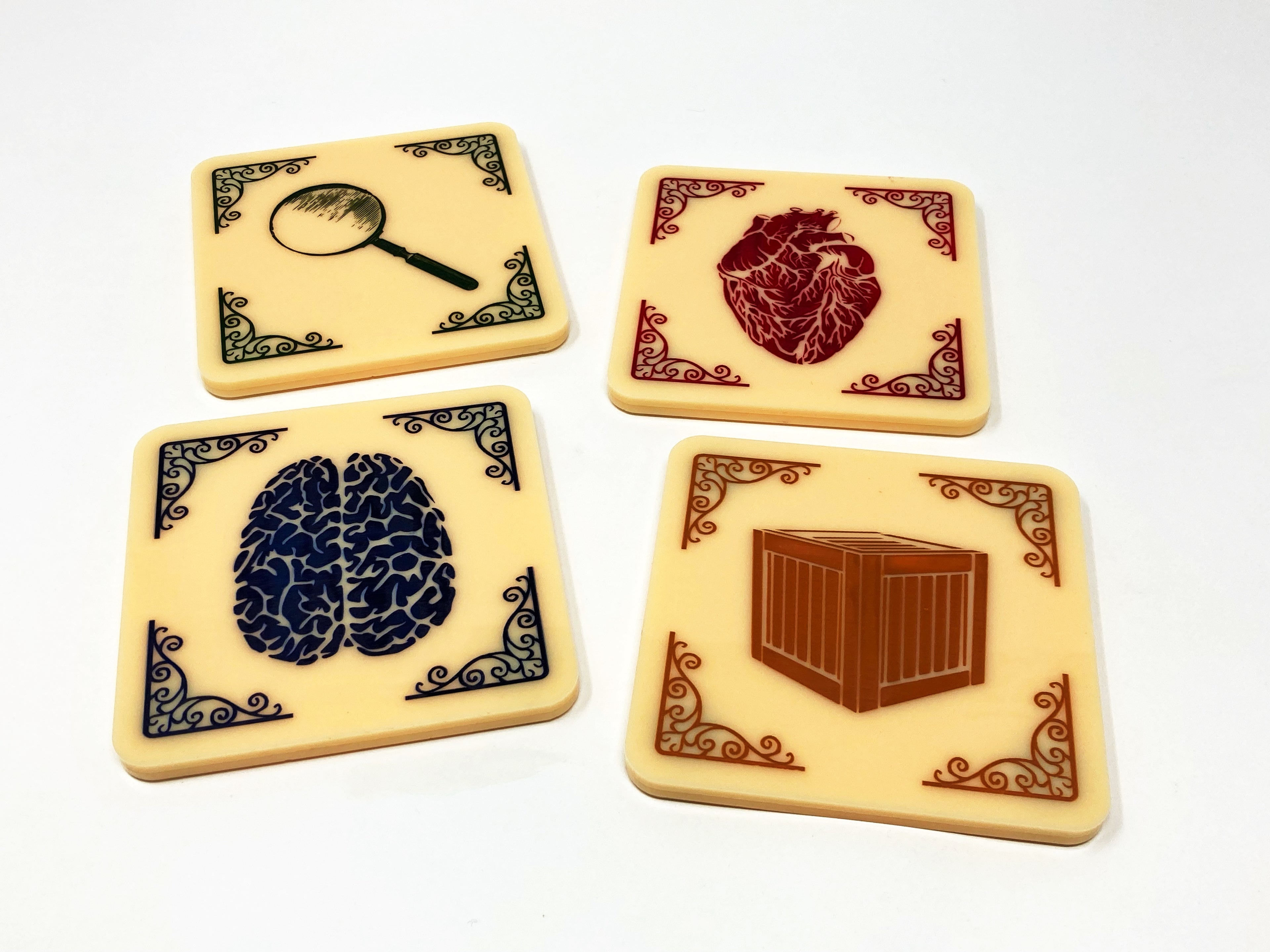 Precision etched and cut with our classic Arkham horror themed investigator token designs.