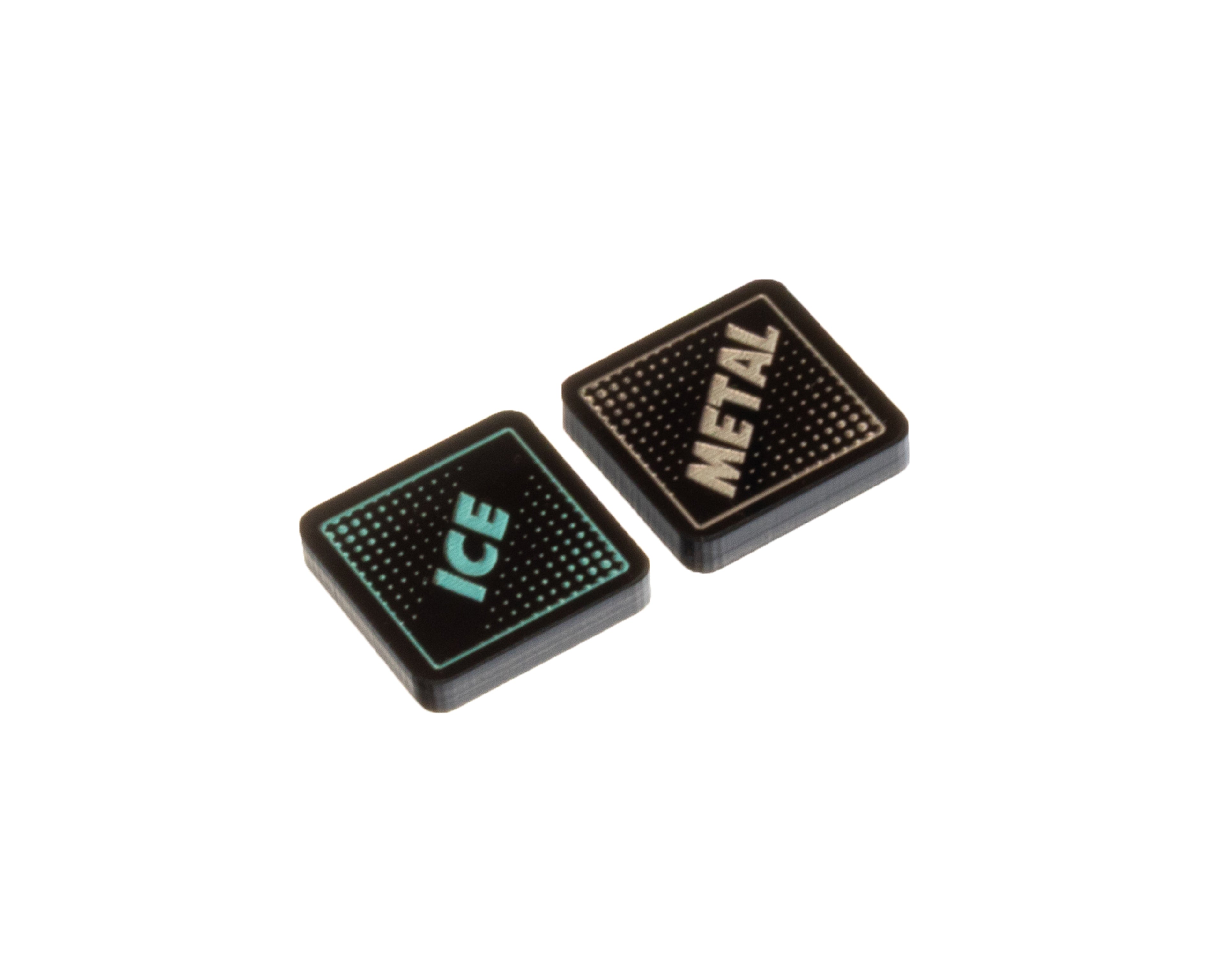- 1 x Ice Trait Token, etched and cut from opaque black acrylic and painted arctic pearl on both sides. Measuring 18mm x 18mm