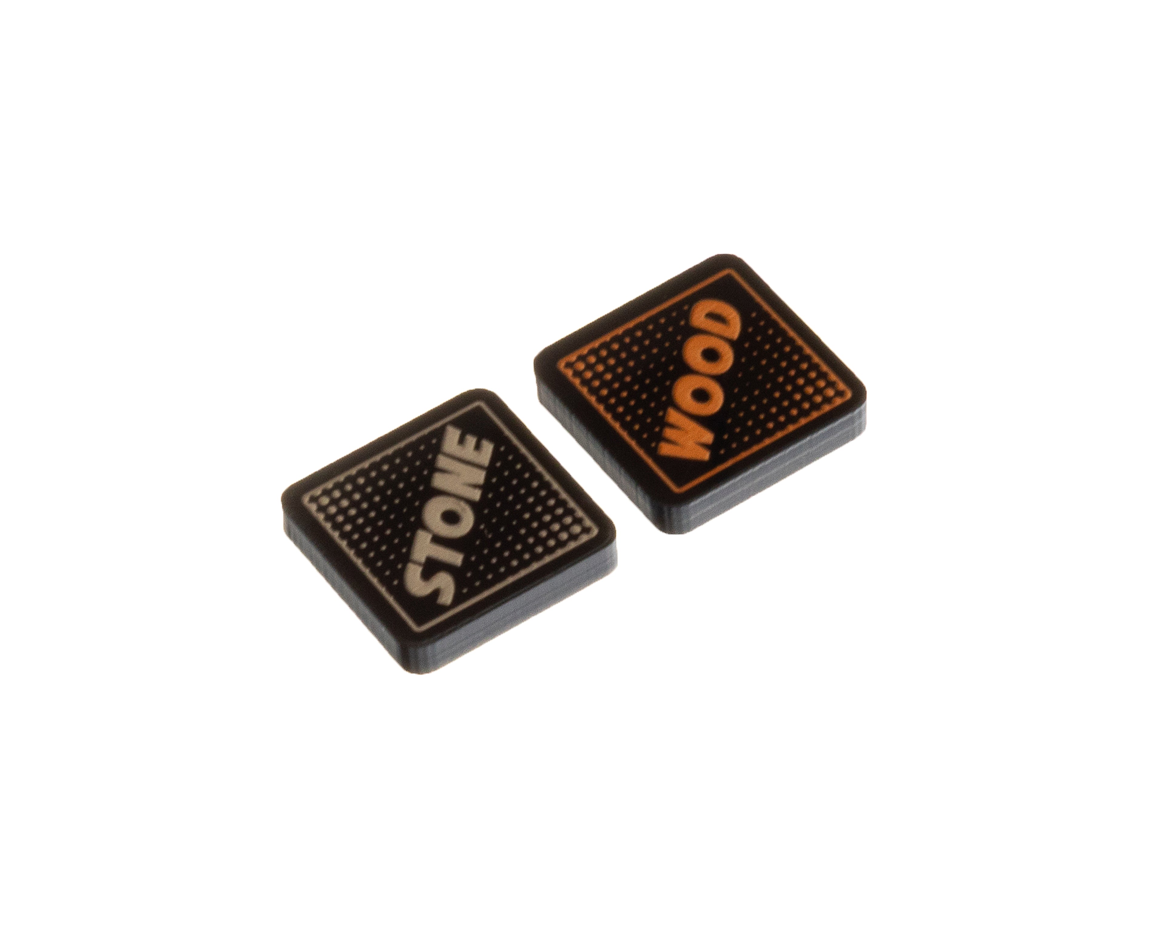 - 1 x Stone Trait Token, etched and cut from opaque black acrylic and painted neutral grey on both sides. Measuring 18mm x 18mm