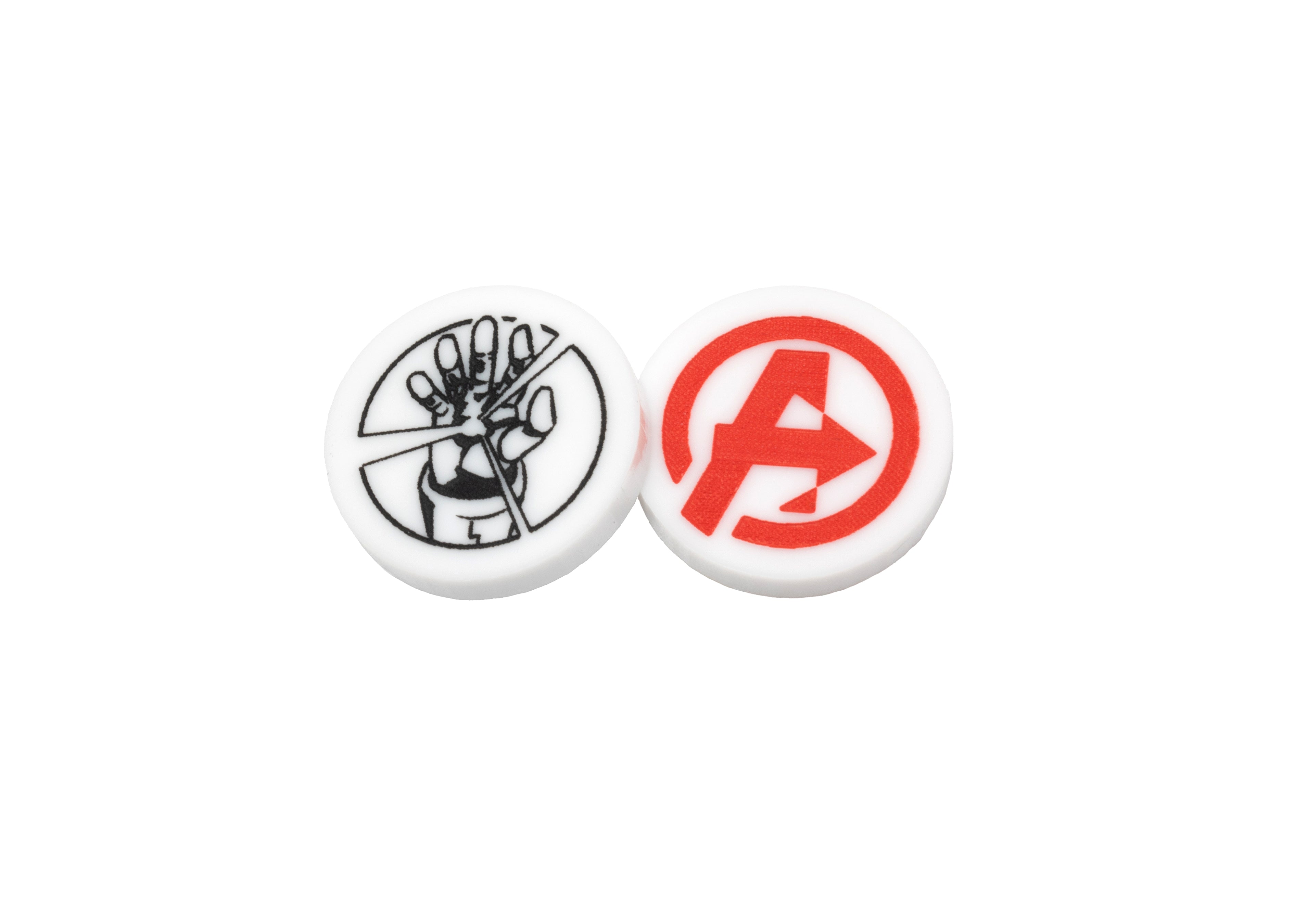 Represent your favourite Avengers in combination with our Avengers Hero board or simply use them on your hero card to remind you if your hero has activated for added immersion! With an easy-to-read design and highly contrasting colours, these items are both a thematic and practical upgrade for your games.