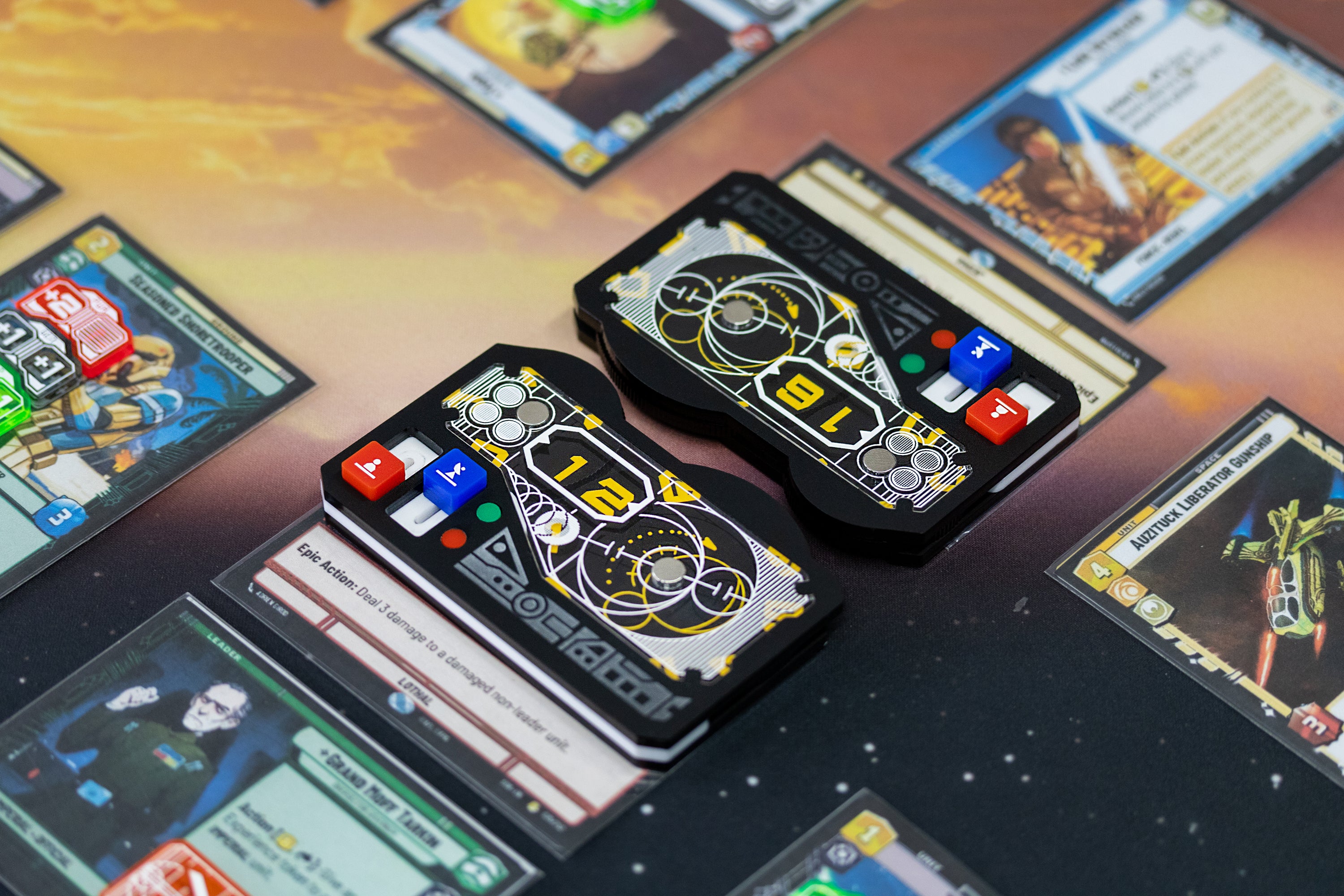 A premium Base Health and Epic Action Tracker Dial, compatible with Star Wars Unlimited TCG.