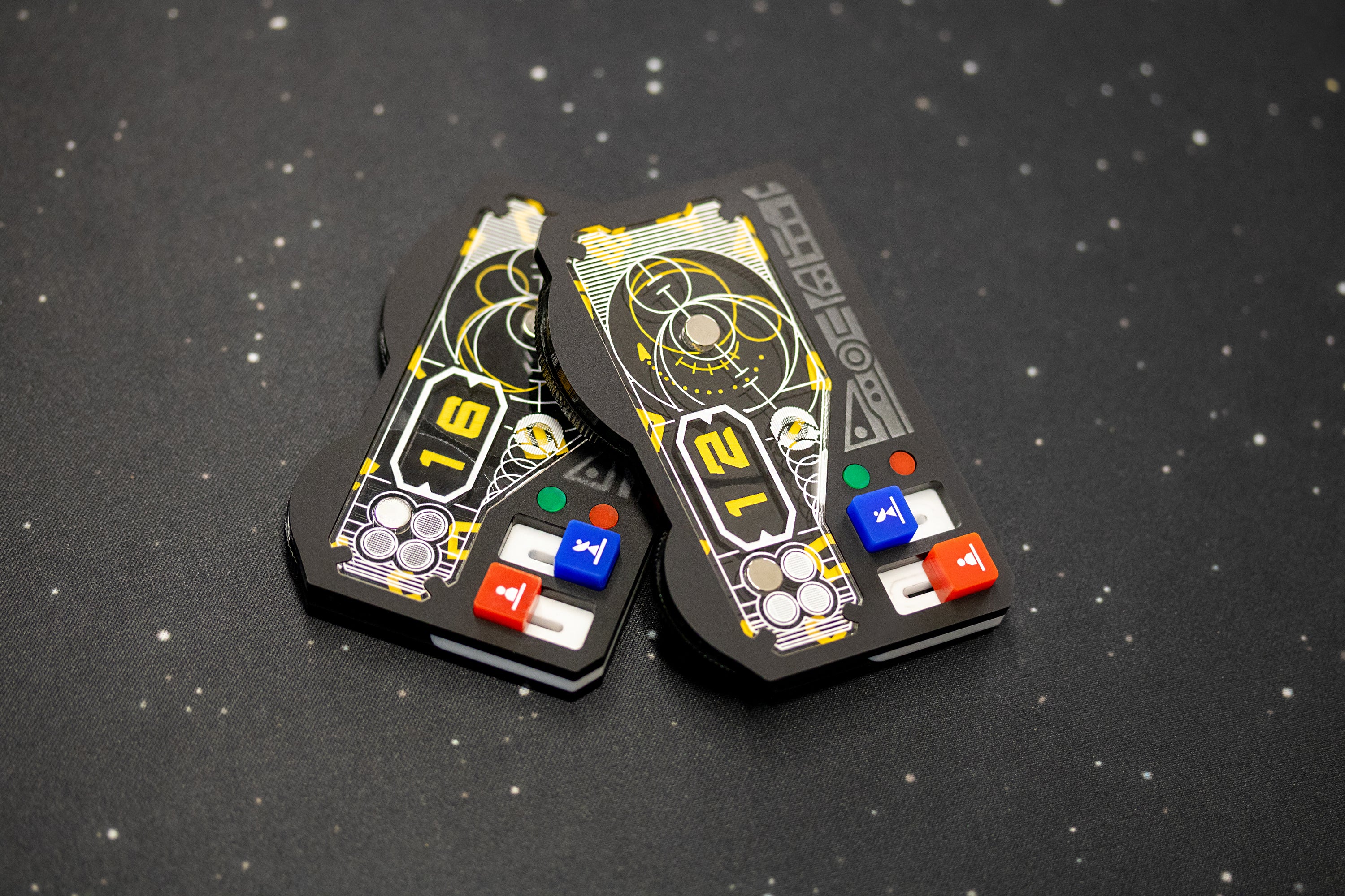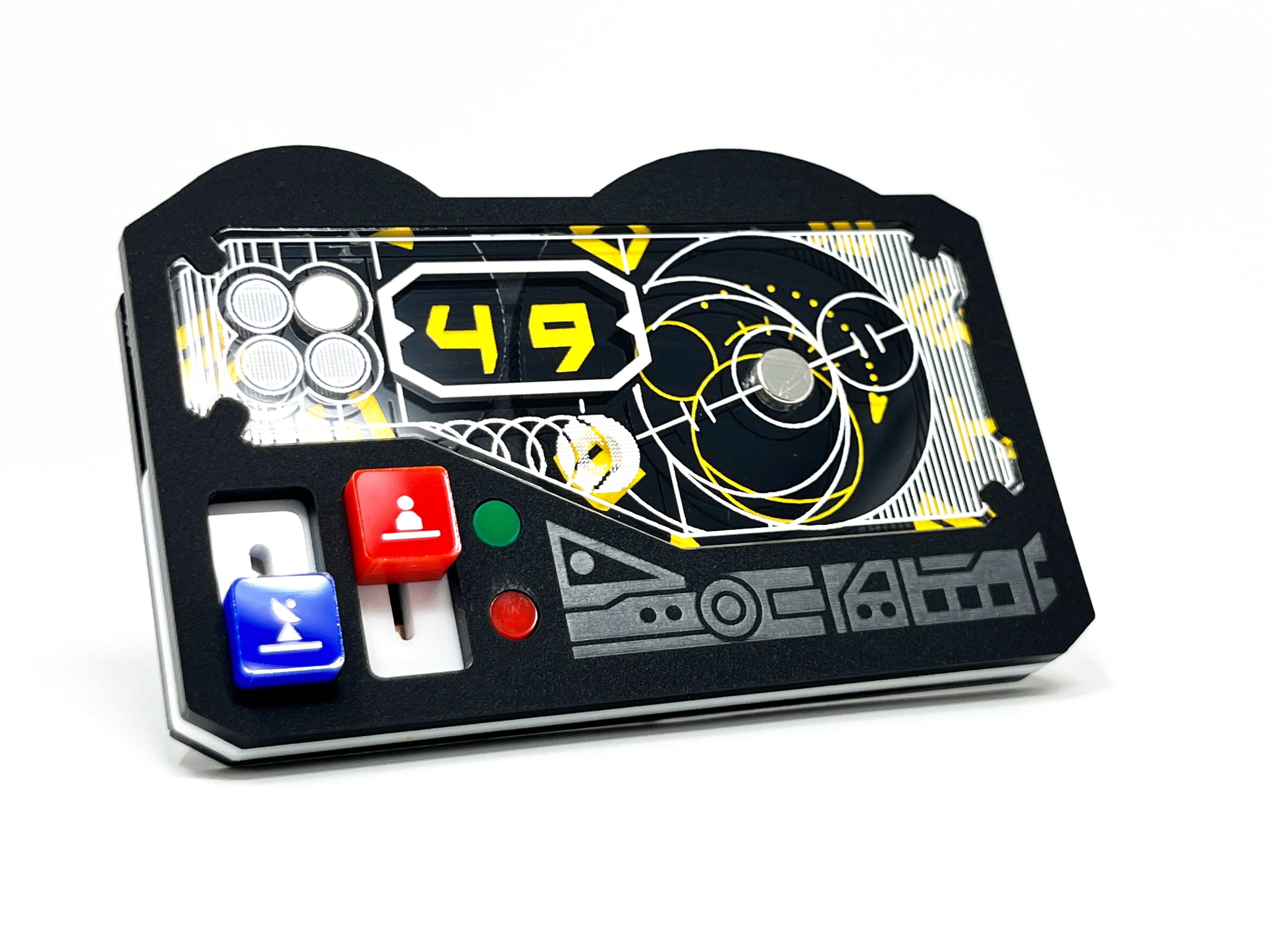 - 1 x Base Health Dial, cut and etched from a combination of matte black and white acrylic, painted yellow and white. Measuring 90mm x 58mm x 10mm