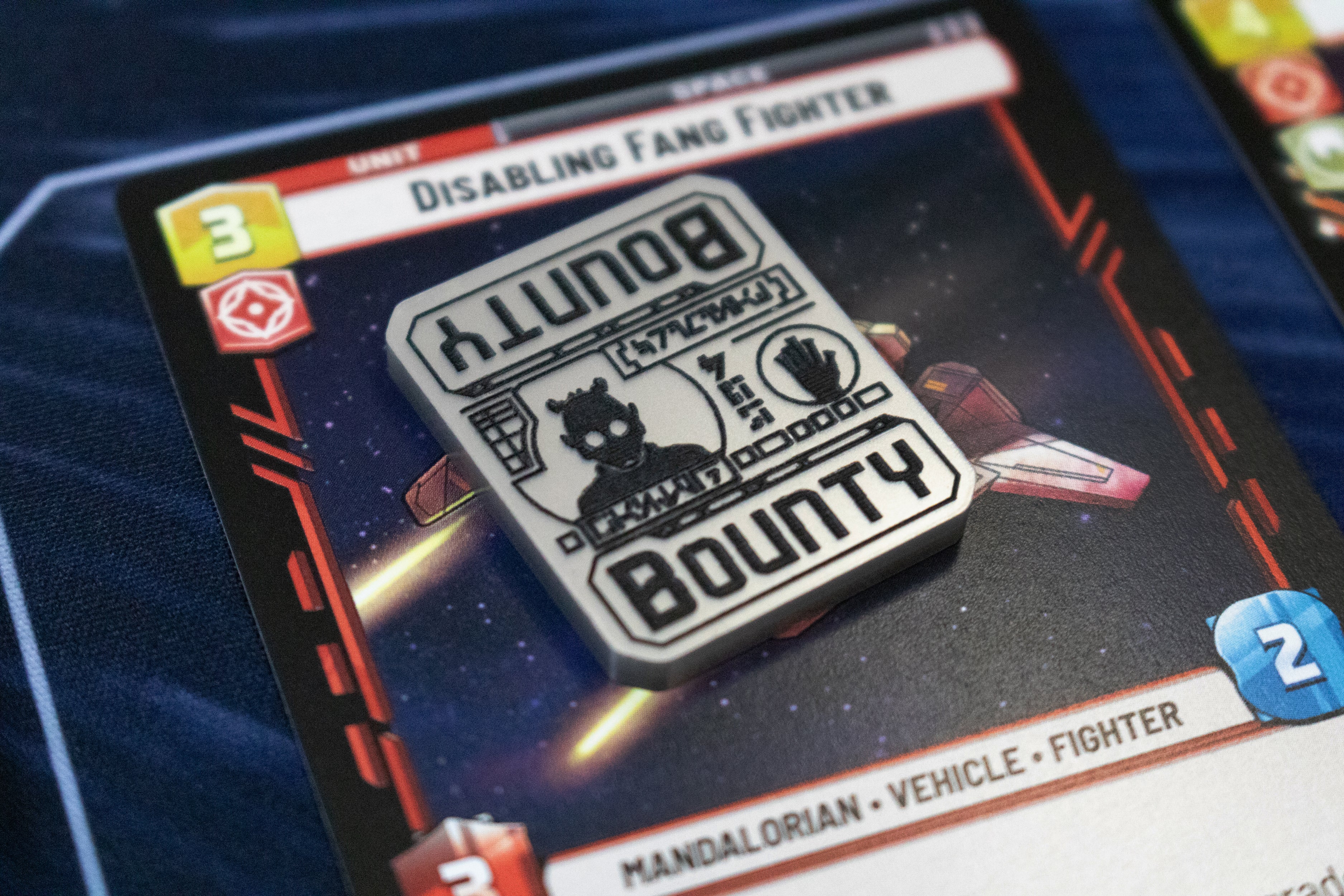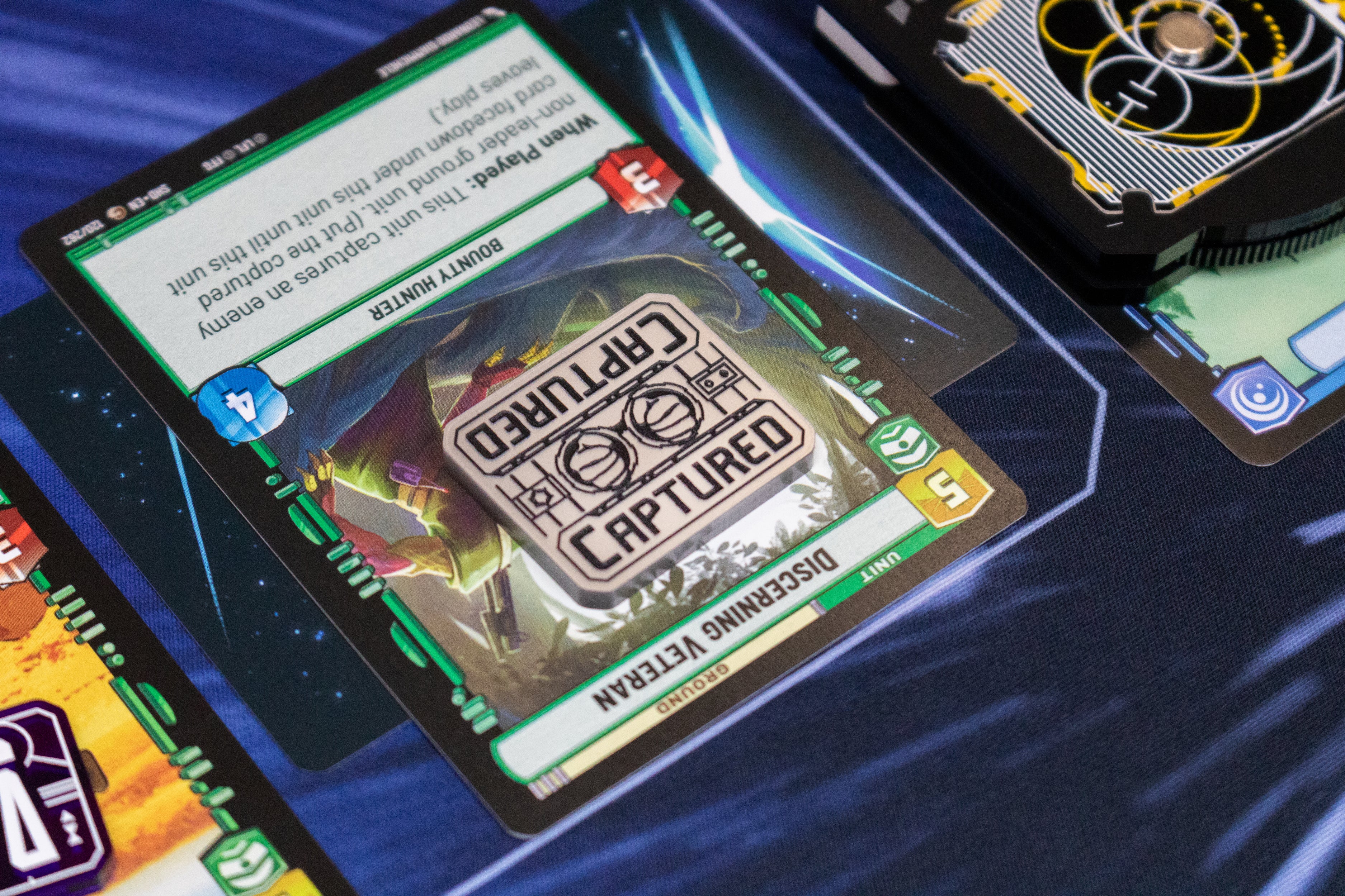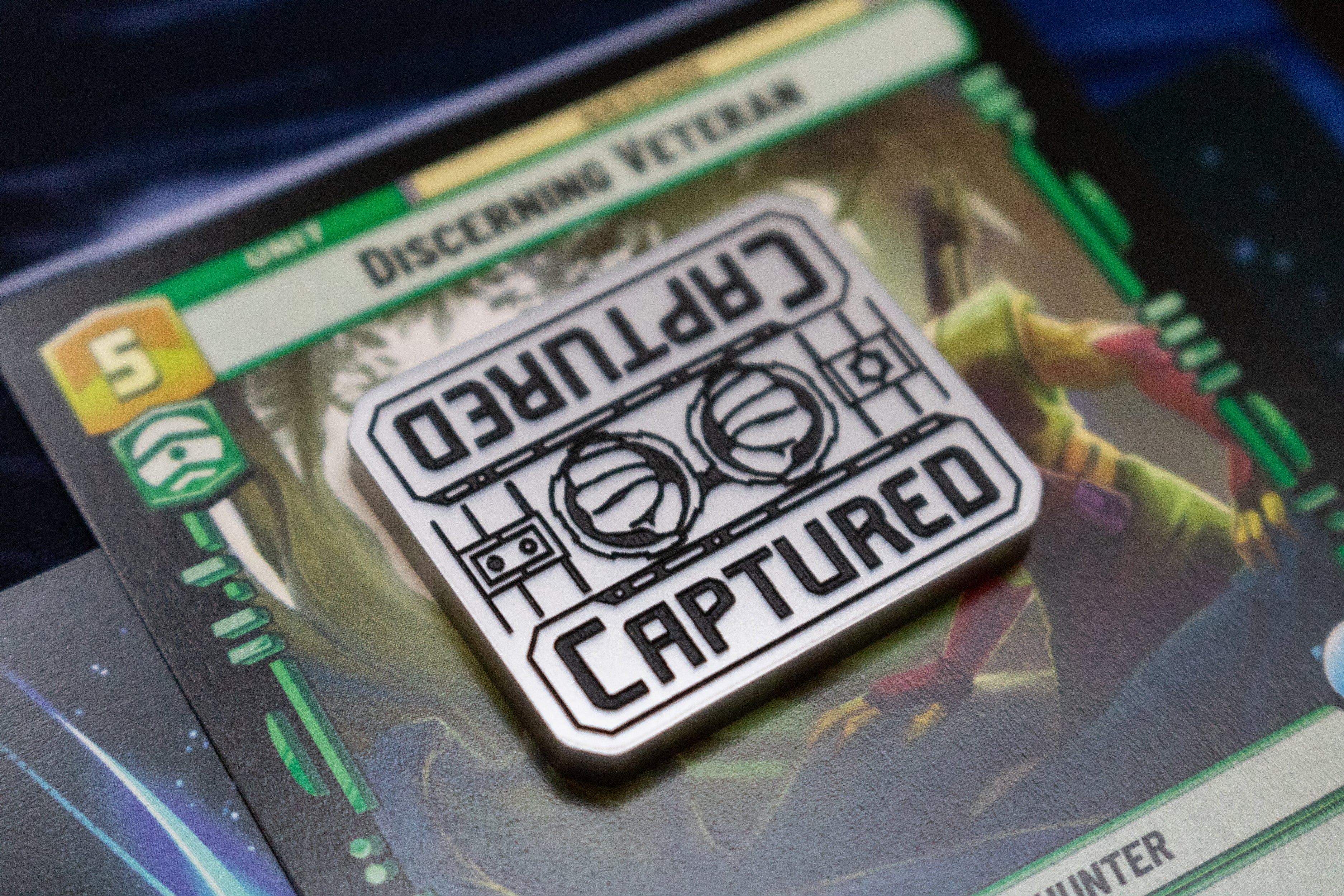 A thematic, double sided and multi-use token to remind you which unit has a bounty placed upon them or which unit has been captured by your opponent. After all, they are no good to you dead!