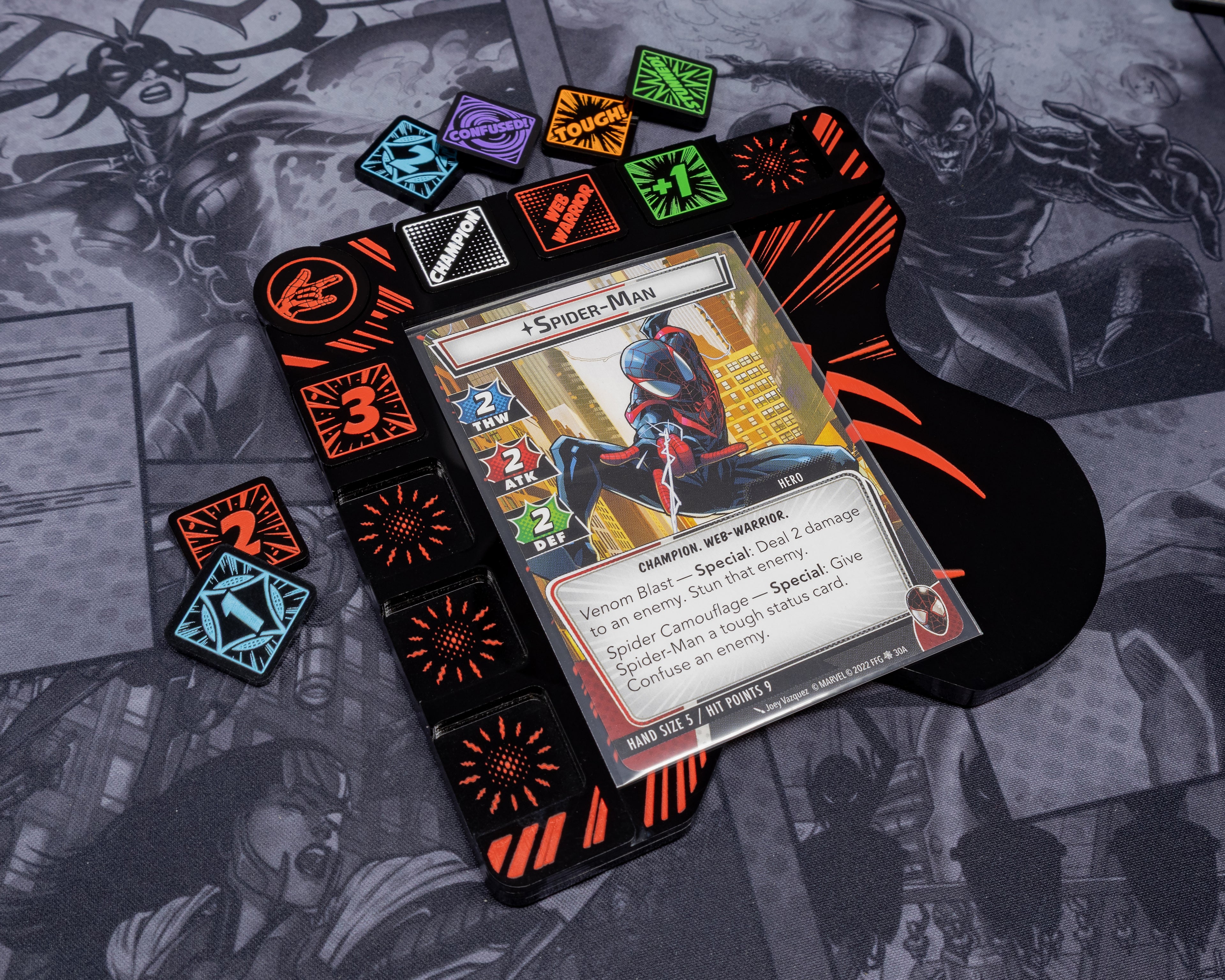 Our Hero Boards has been specifically designed to fit the theme of the Marvel Champions LCG. Having played the game ourselves extensively since launch, we have taken our time to design Hero Boards that are both beautiful and functional.