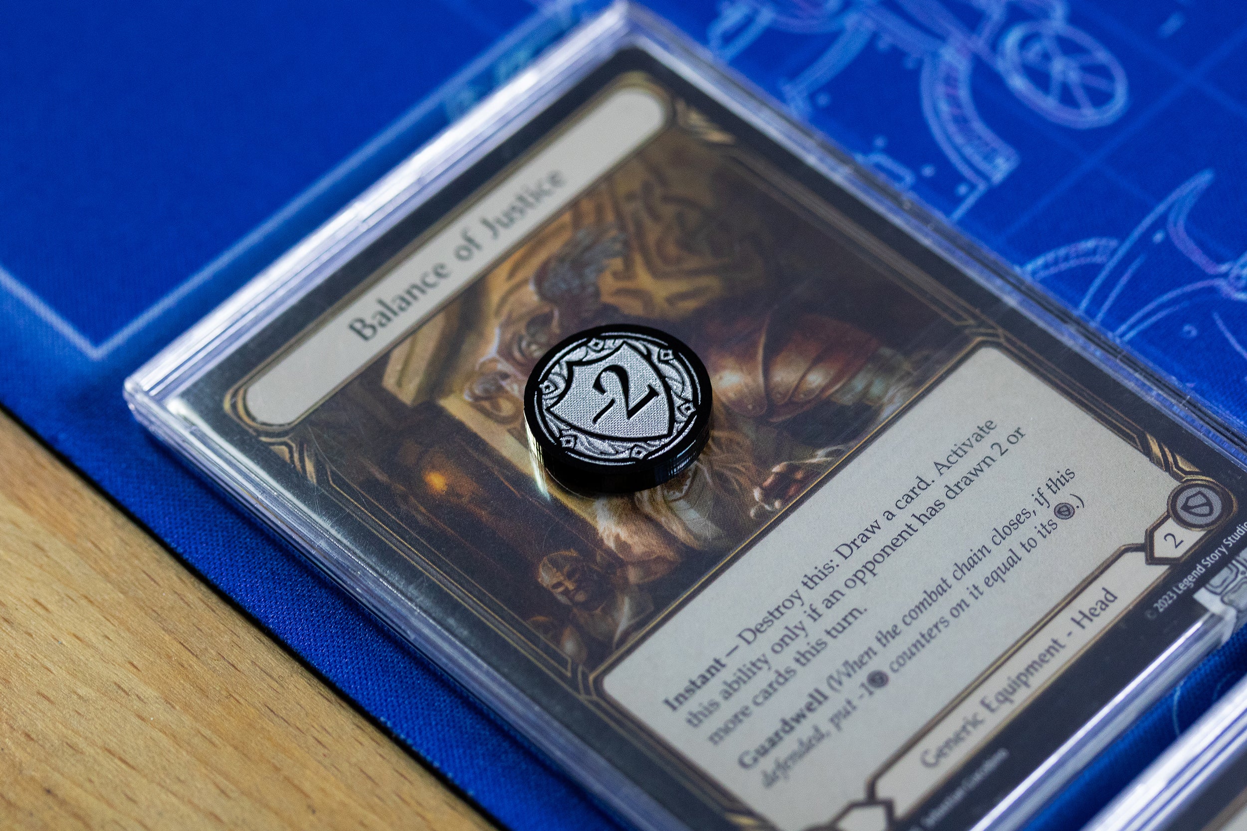 A set of 2 Armour modifier tokens compatible with Flesh And Blood TCG*.