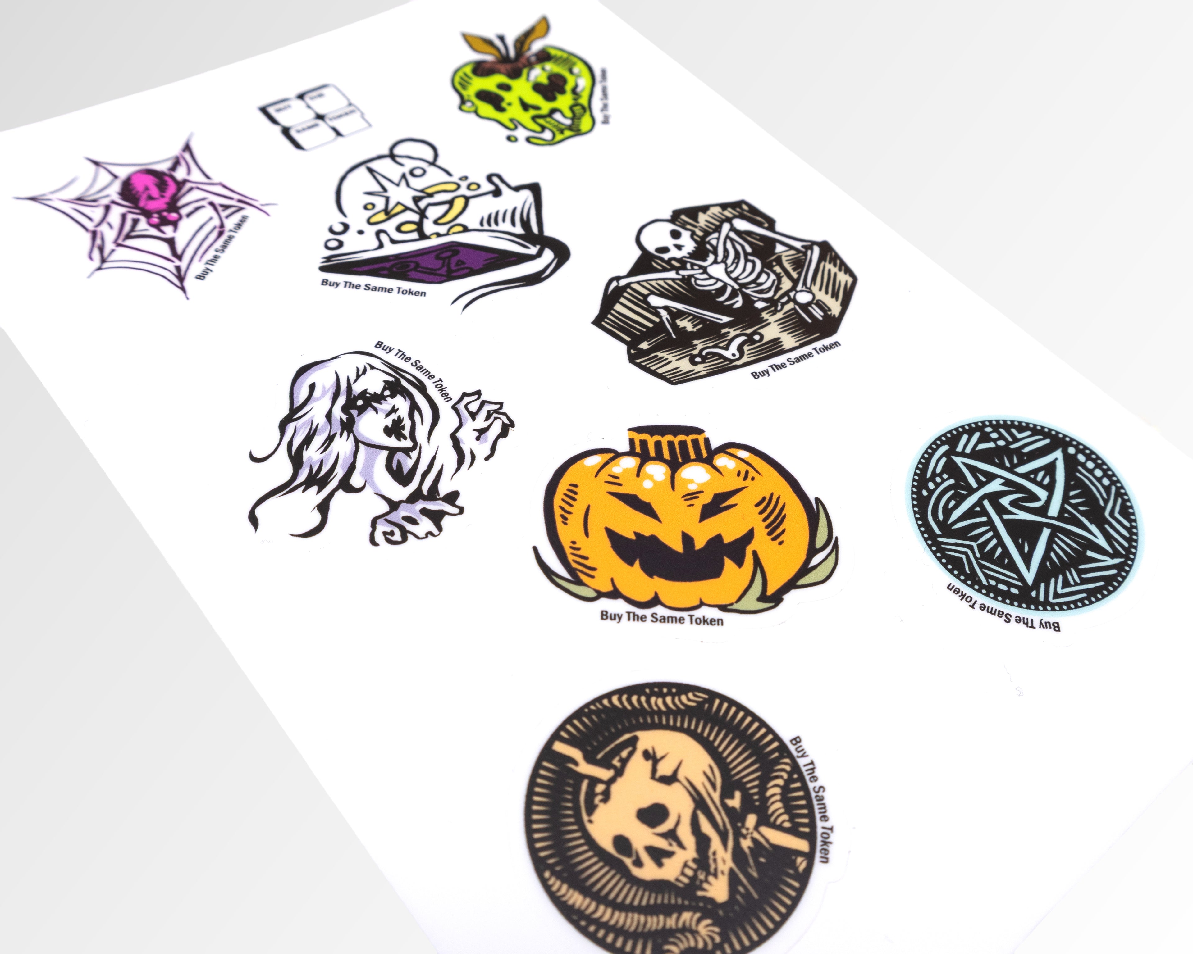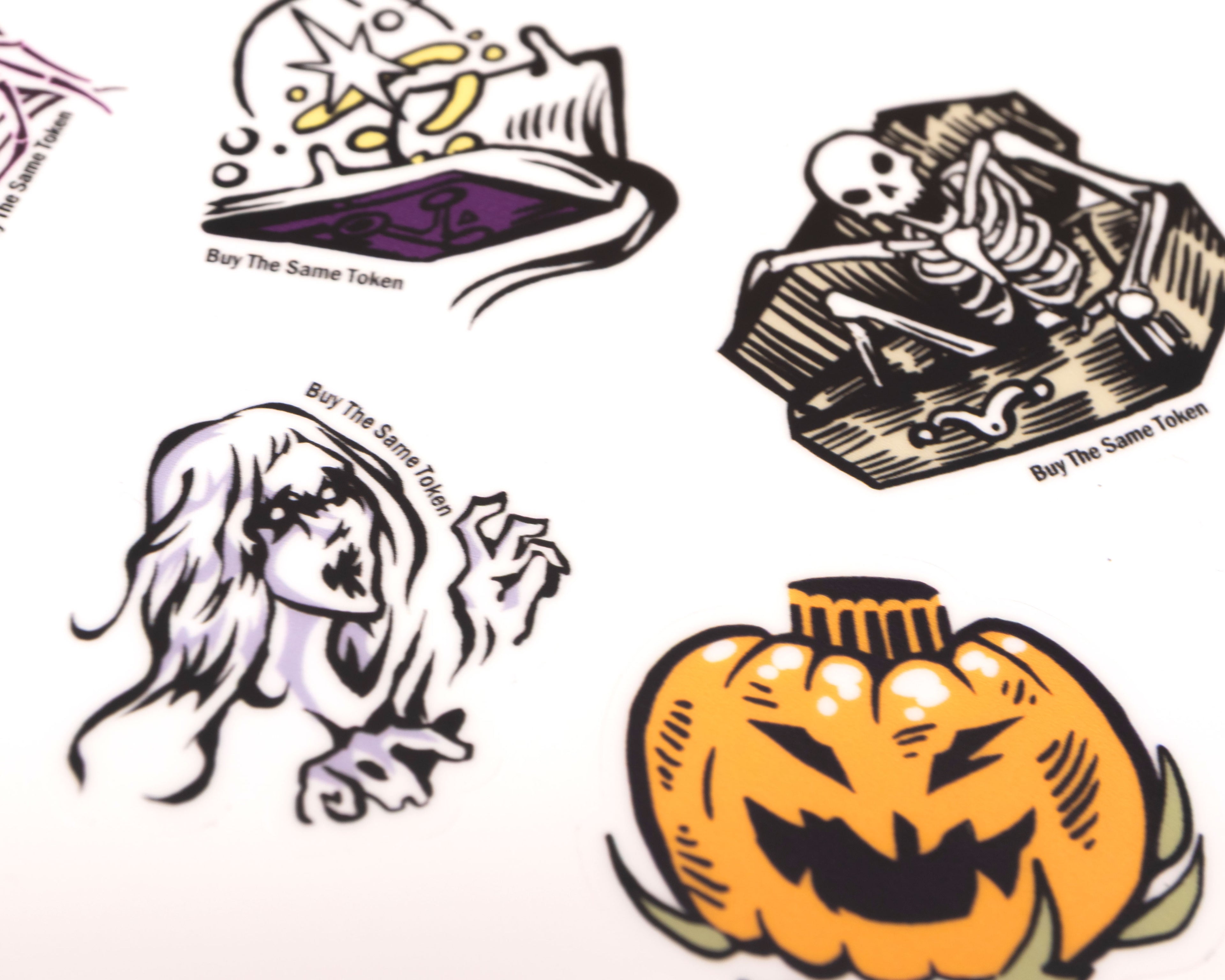 10cm x 15cm sticker sheet with 8 Spooky Halloween designs.