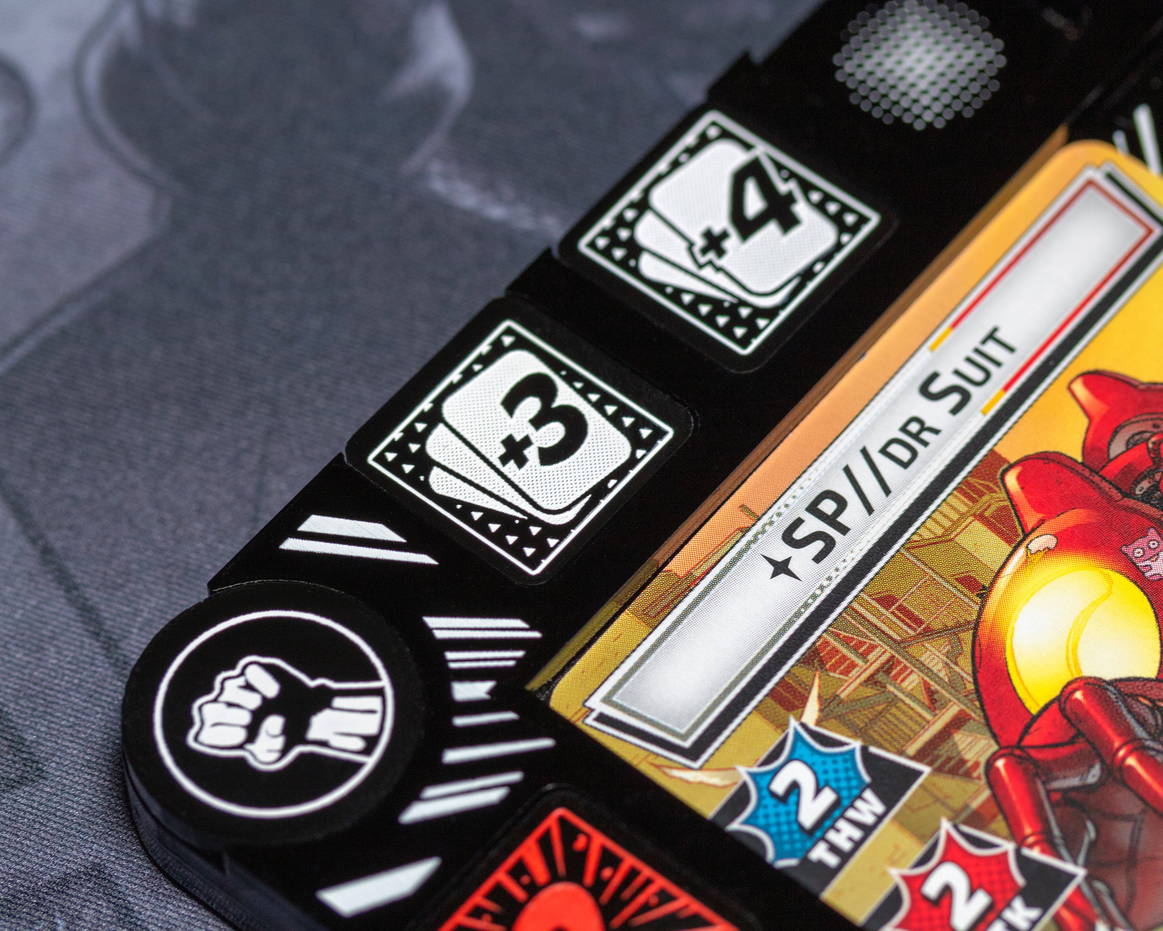These eye popping hand limit tokens will help to remind you of your Hero's changes in hand size. With 2 tokens revealing a +3 on one face and a +4 on the reverse. Keeping track of all the changes during plays has never been simpler!