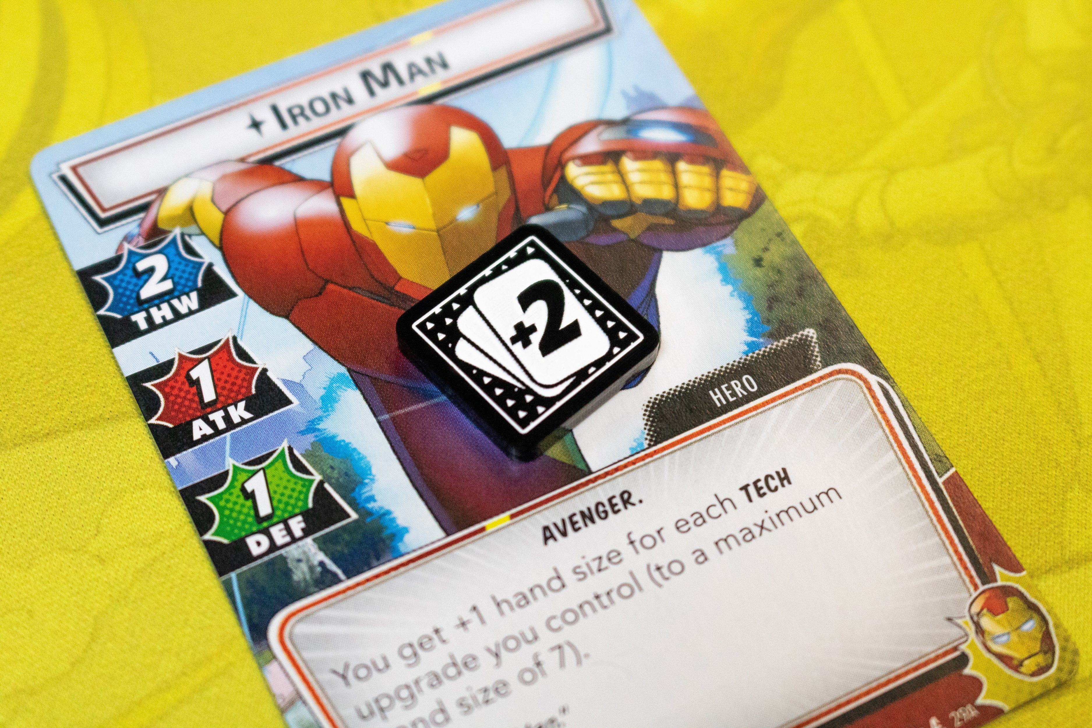 These eye popping hand limit tokens will help to remind you of your Hero's changes in hand size. With 2 tokens revealing a +1 on one face and a +2 on the reverse and 2 tokens revealing a -1 on one face and -2 on the reverse. Keeping track of all the changes during plays has never been simpler!
