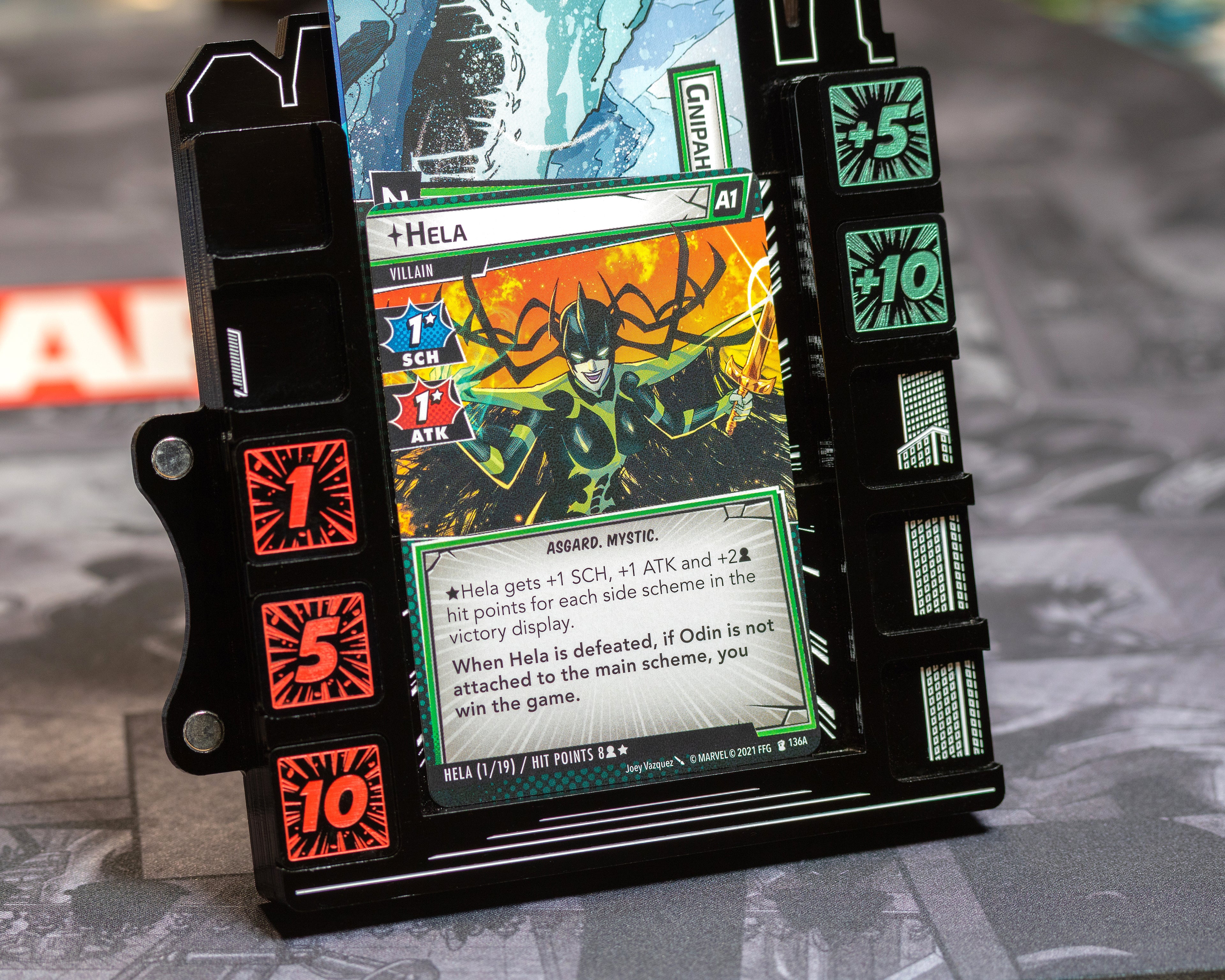 These Hela Tokens will come in very handy for characters card abilities. Showing a bright and bold design, keeping track of your (and your enemies) abilities has never been easier and this good looking!