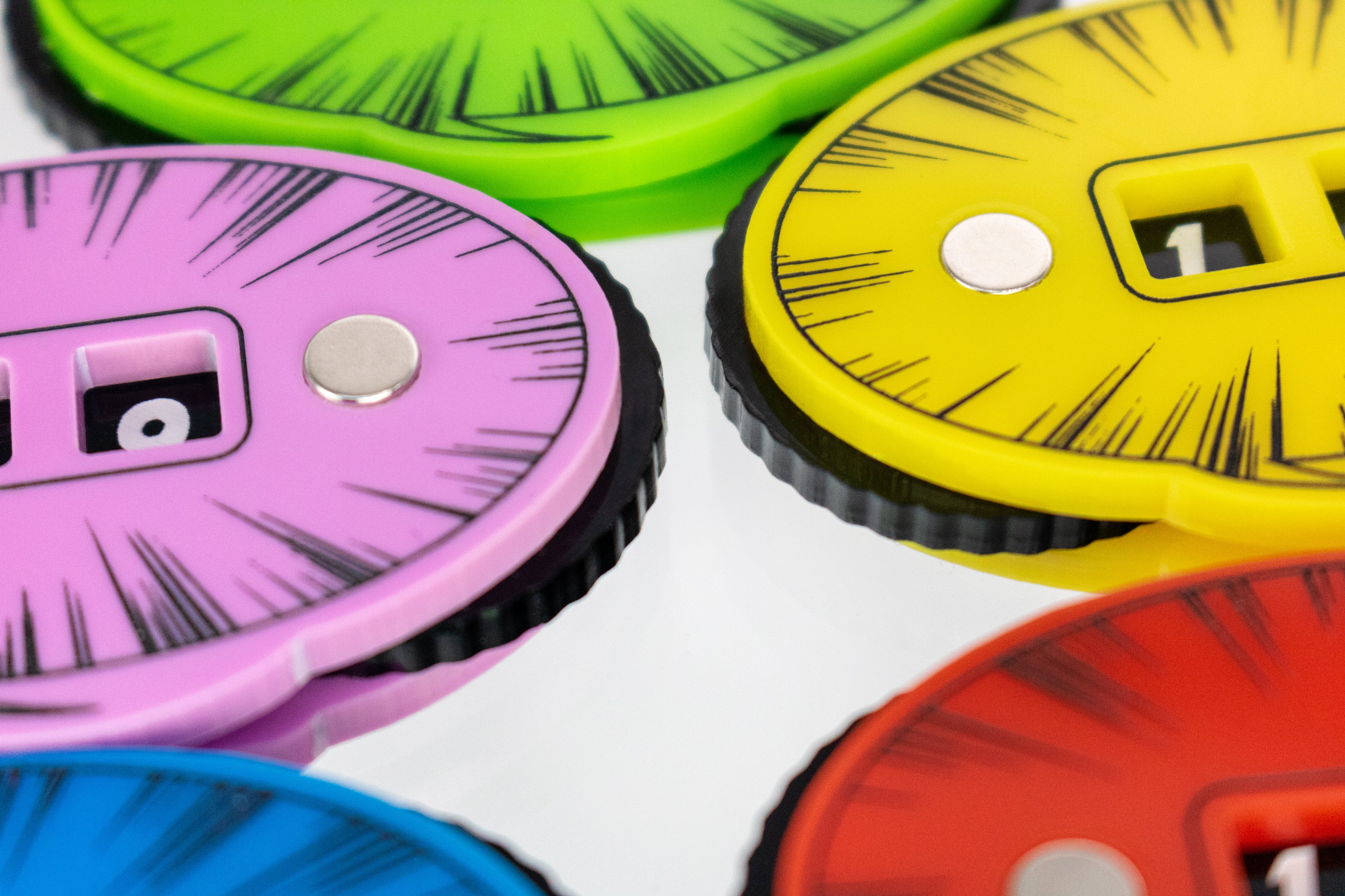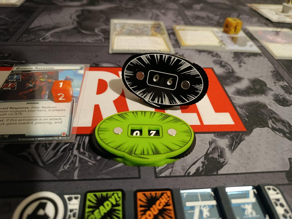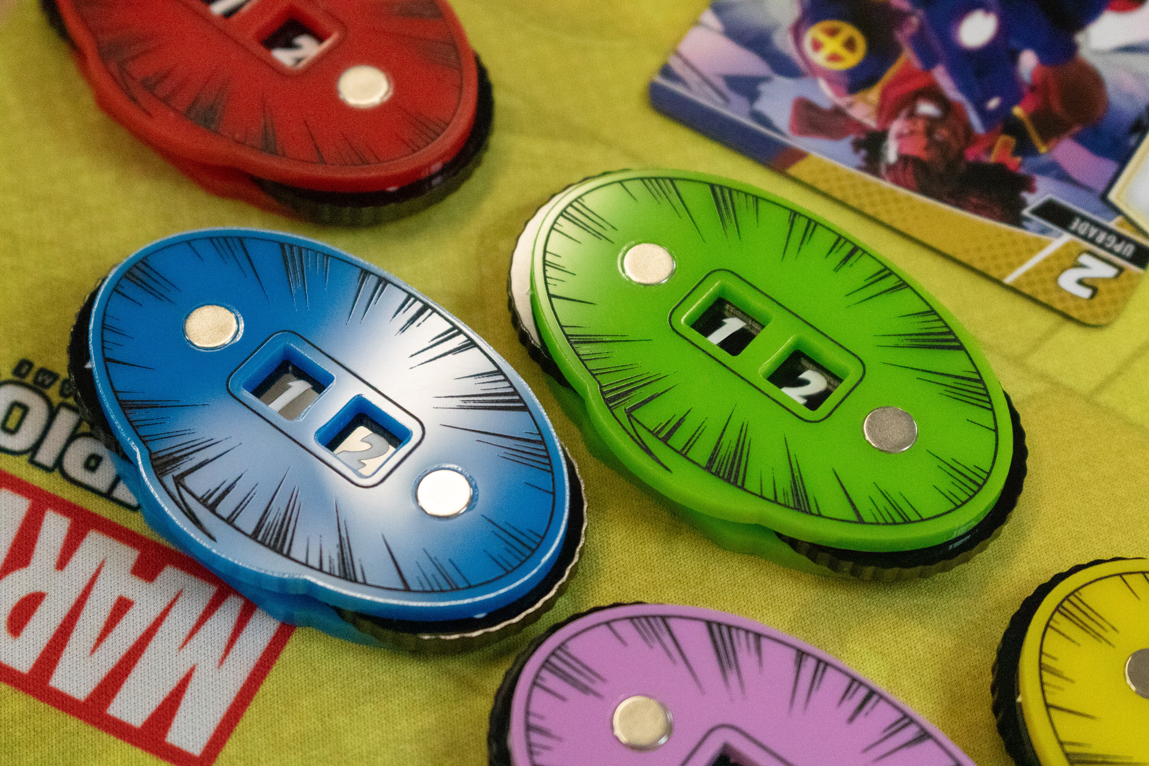With brightly painted etched details, smooth operating dial wheels and the optional ability to position them upright with an included rear stand, these easy-to-read and high contrasting hero health dials are both a thematic and practical upgrade for Marvel Champions LCG.