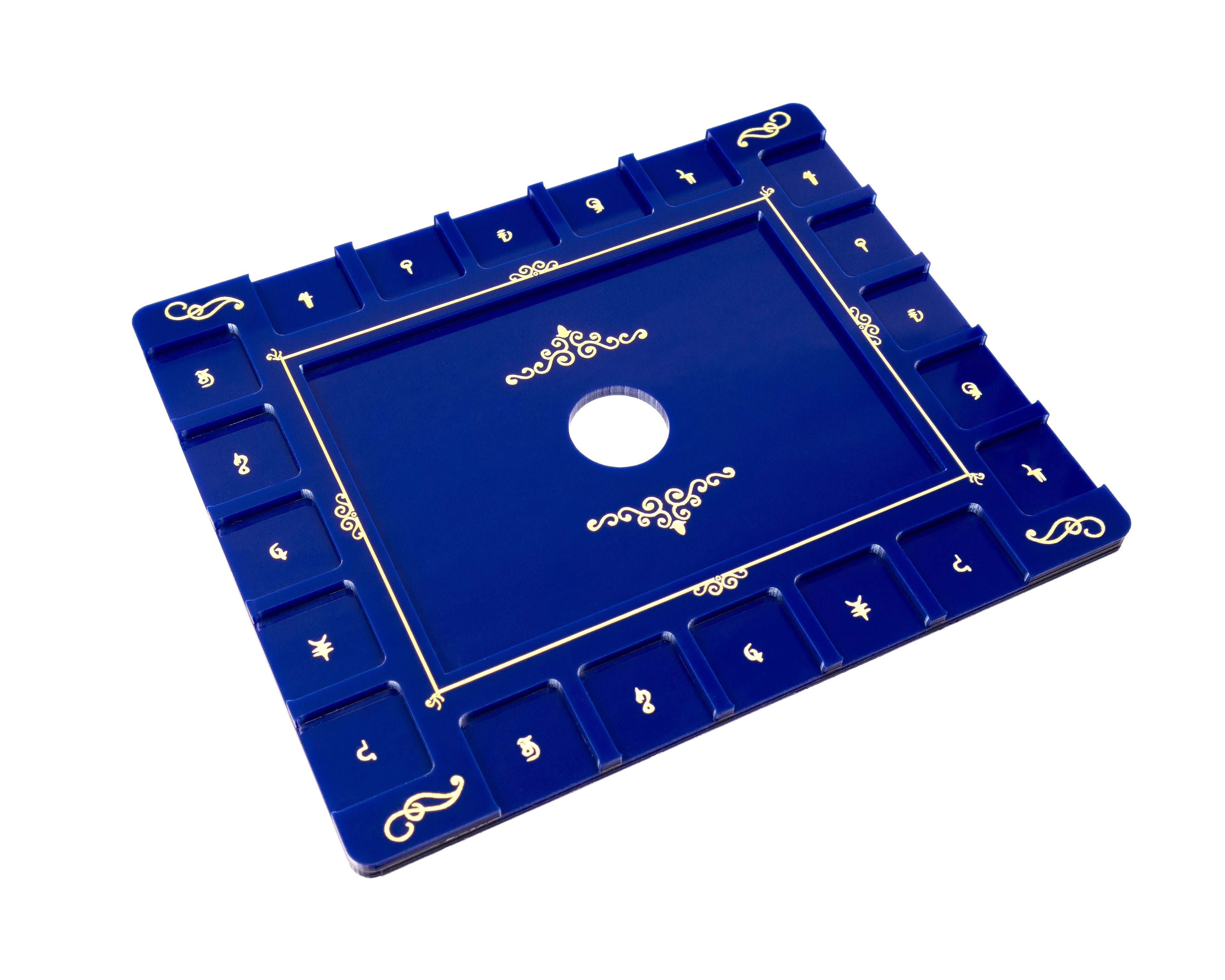 - 8 Integrated magnets within the board and cover, providing storage for the tokens within.