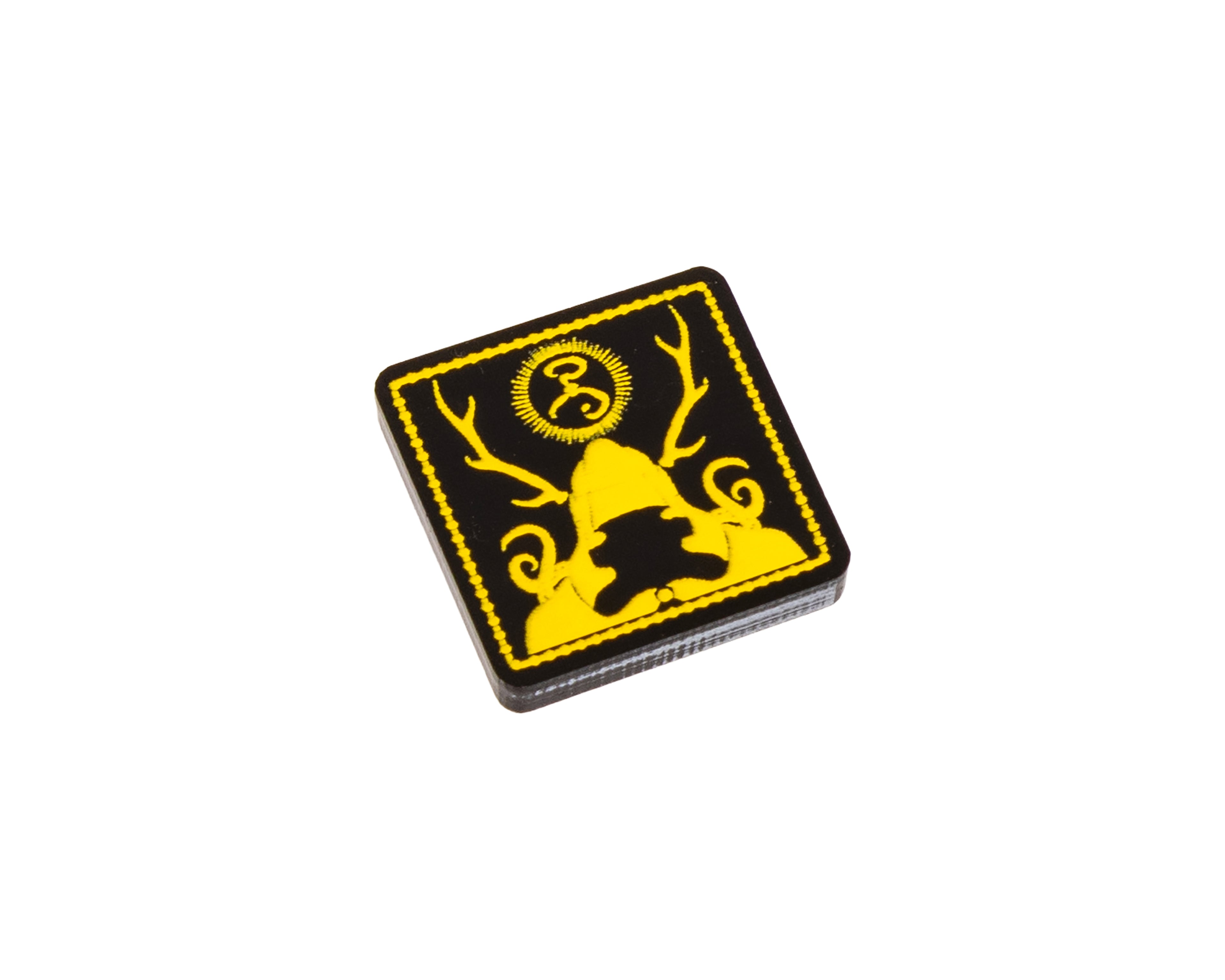 - 1 x Doom tokens, double sided, etched and cut from opaque black 3mm acrylic, painted on both sides. Measuring 18mm x 18mm.