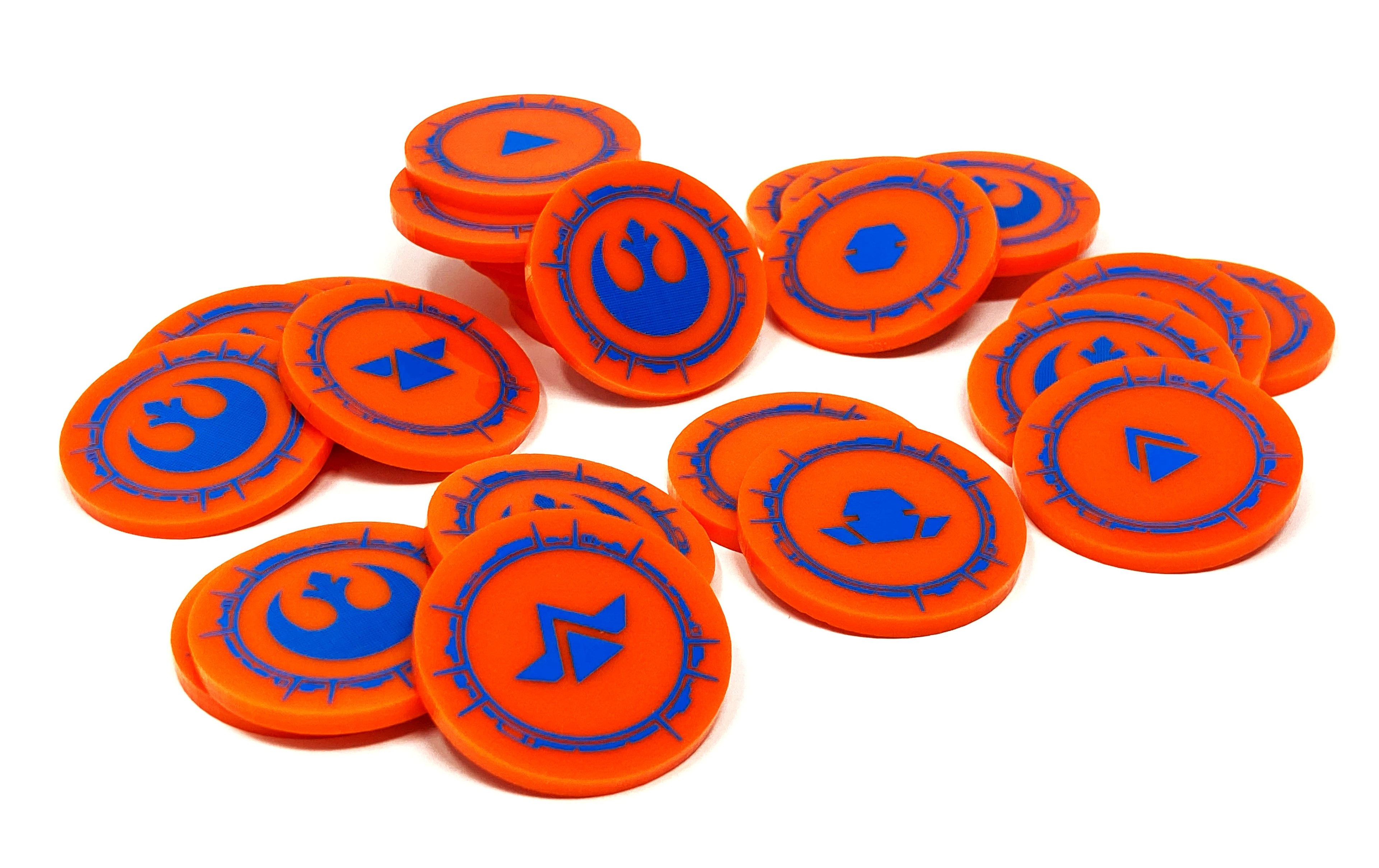 A complete set of customisable Order tokens for SW Legion. This set can be customised from a wide selection of acrylic and paint. This set contains all the order tokens needed to field any of the available SW Legion factions.