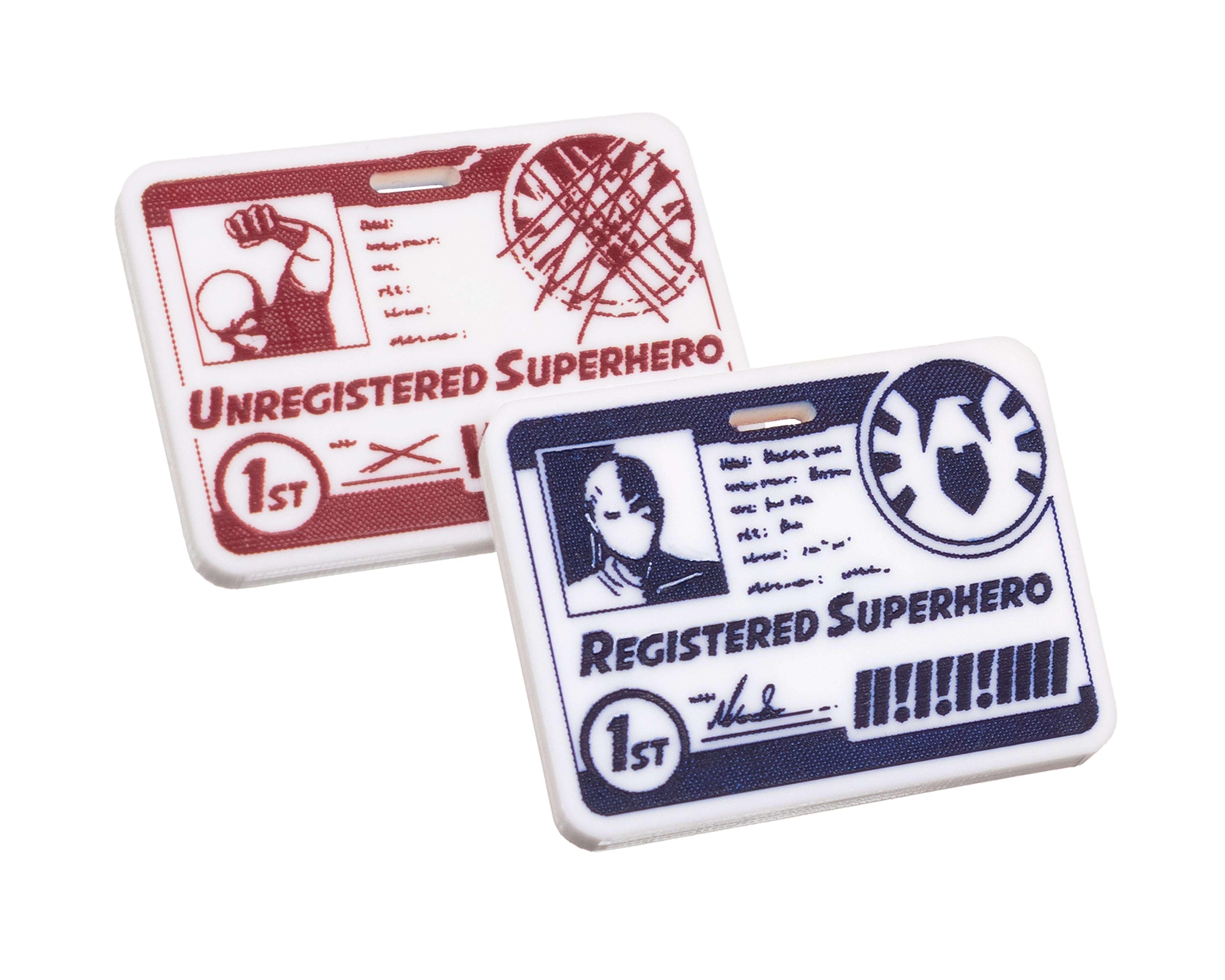 - 1 x Registered/Unregistered 1st Player Token, double sided, etched onto opaque white acrylic, painted alizarin crimson red on one side and prussian blue on the other side. Measuring 27mm x 37mm.