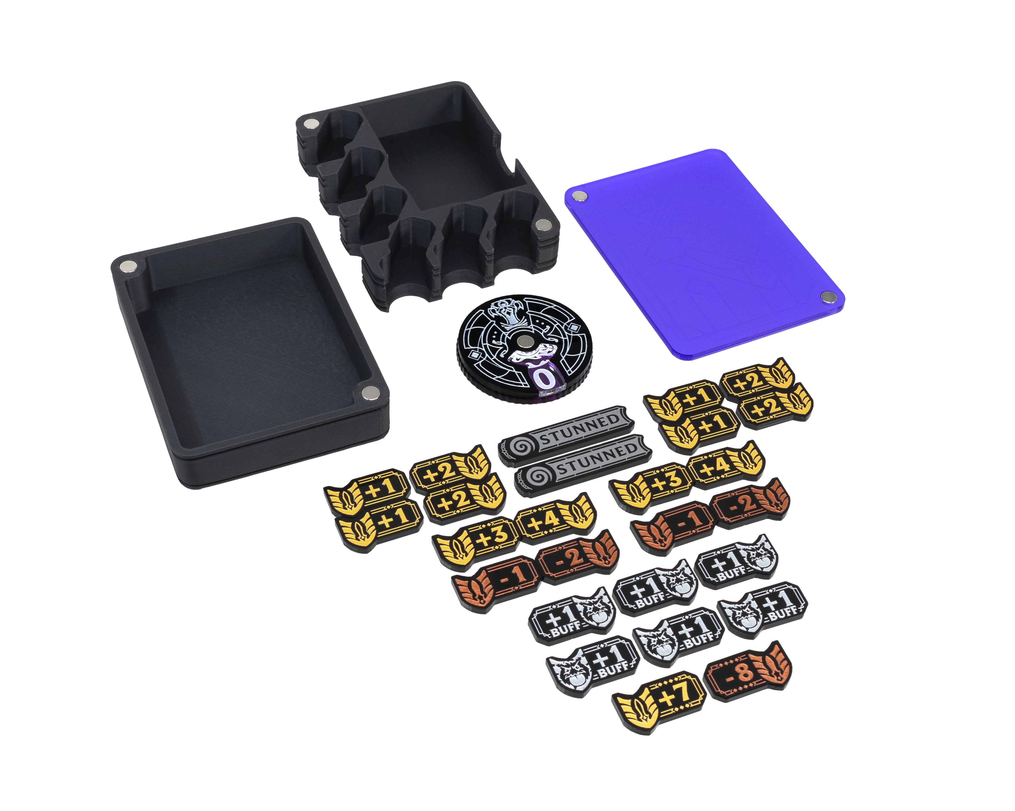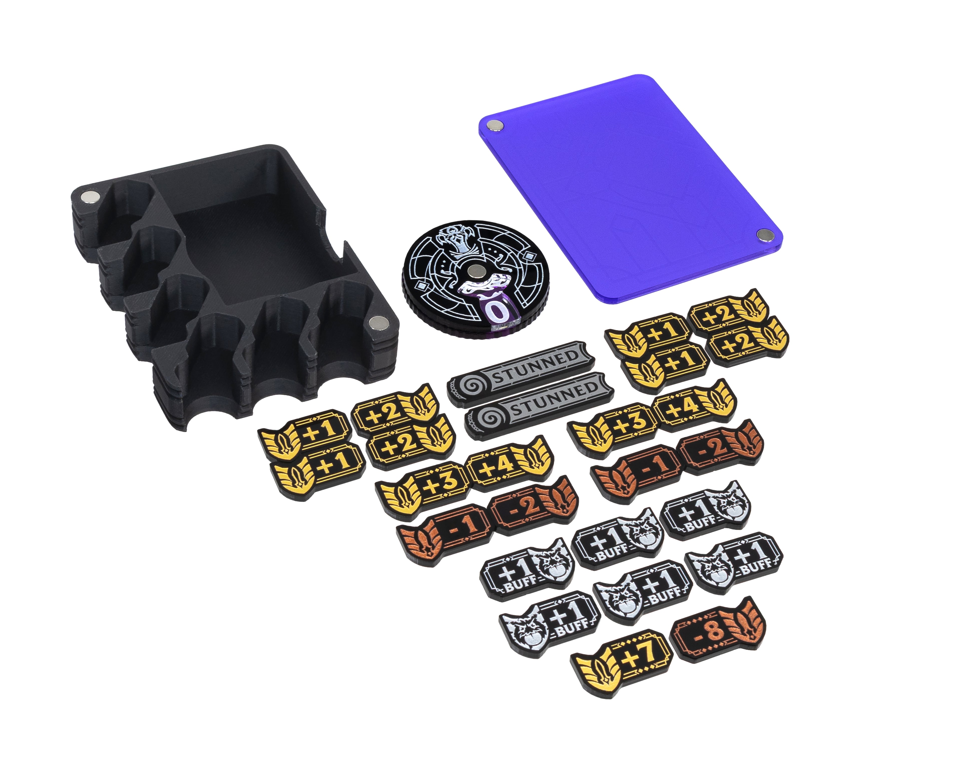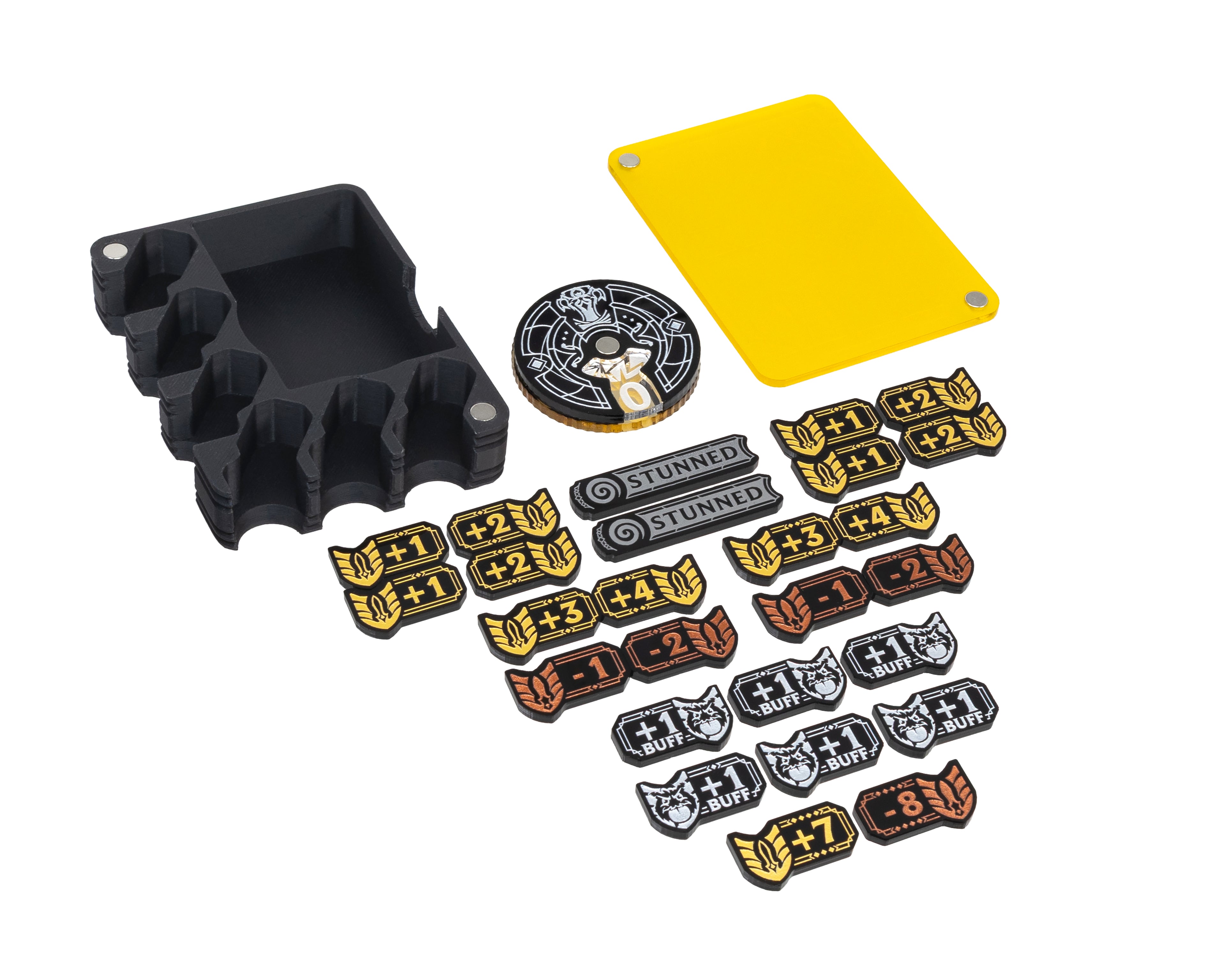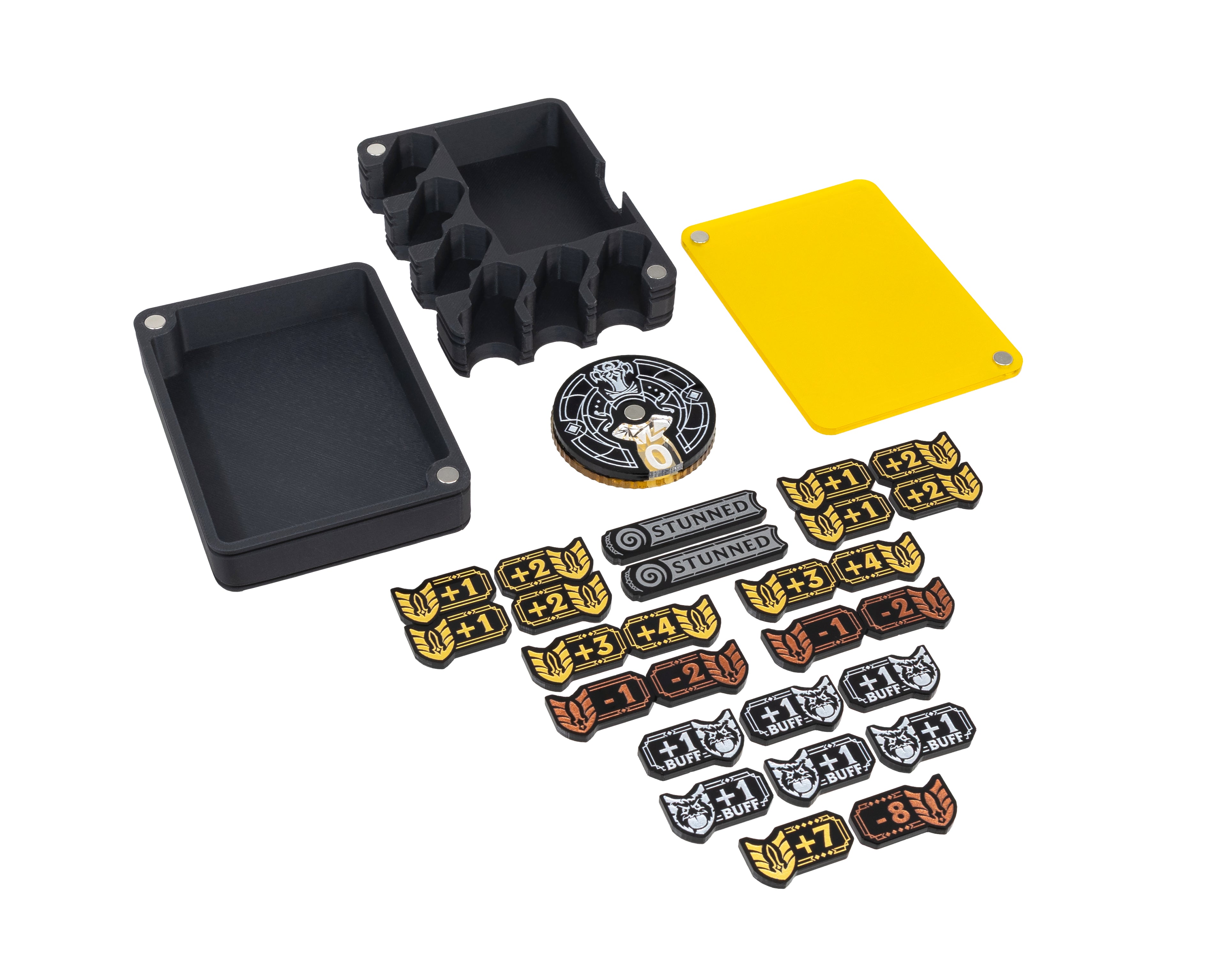- Might Modifier and Buff tokens feature alternative denominations on their reverse sides providing added utility during game play.
