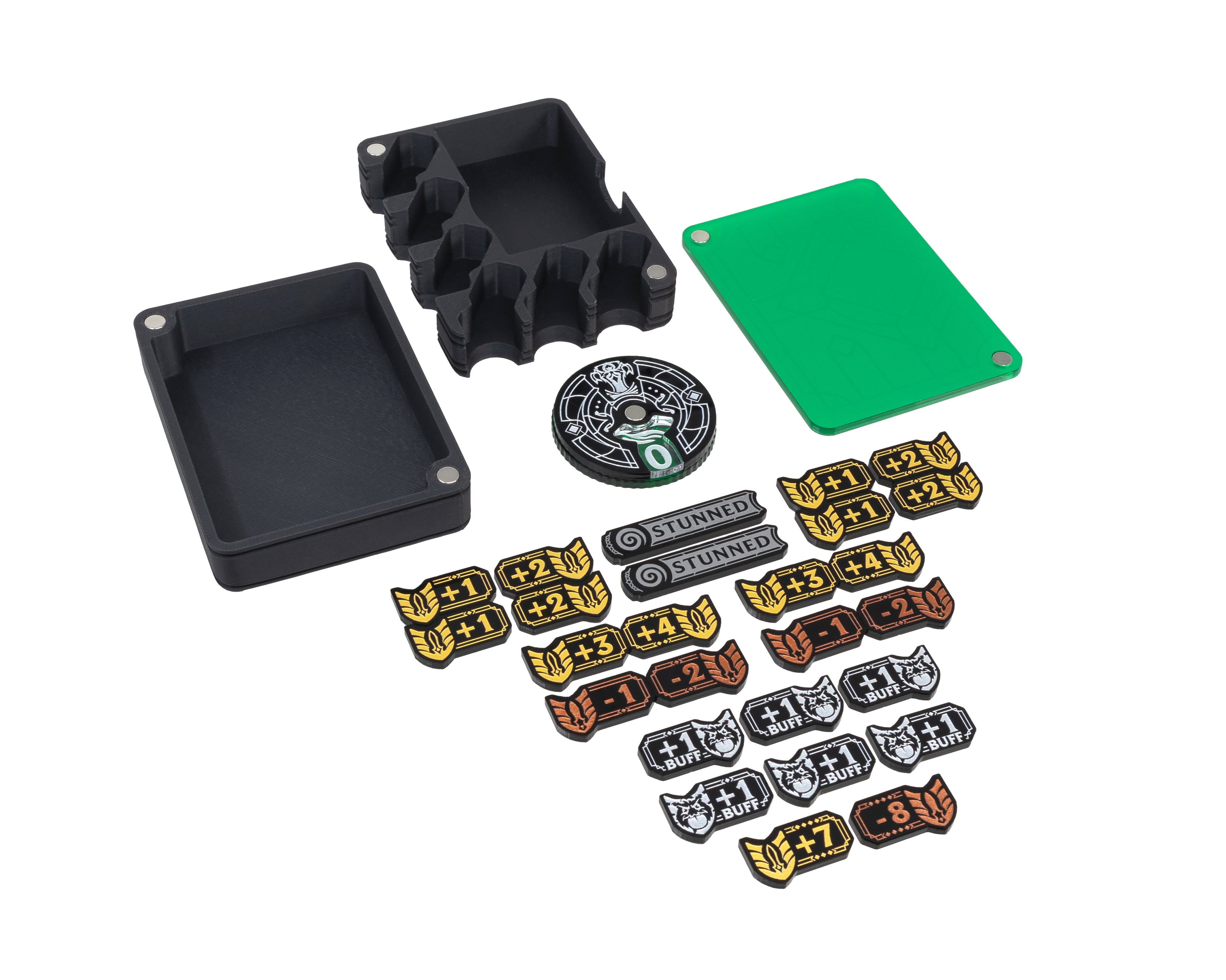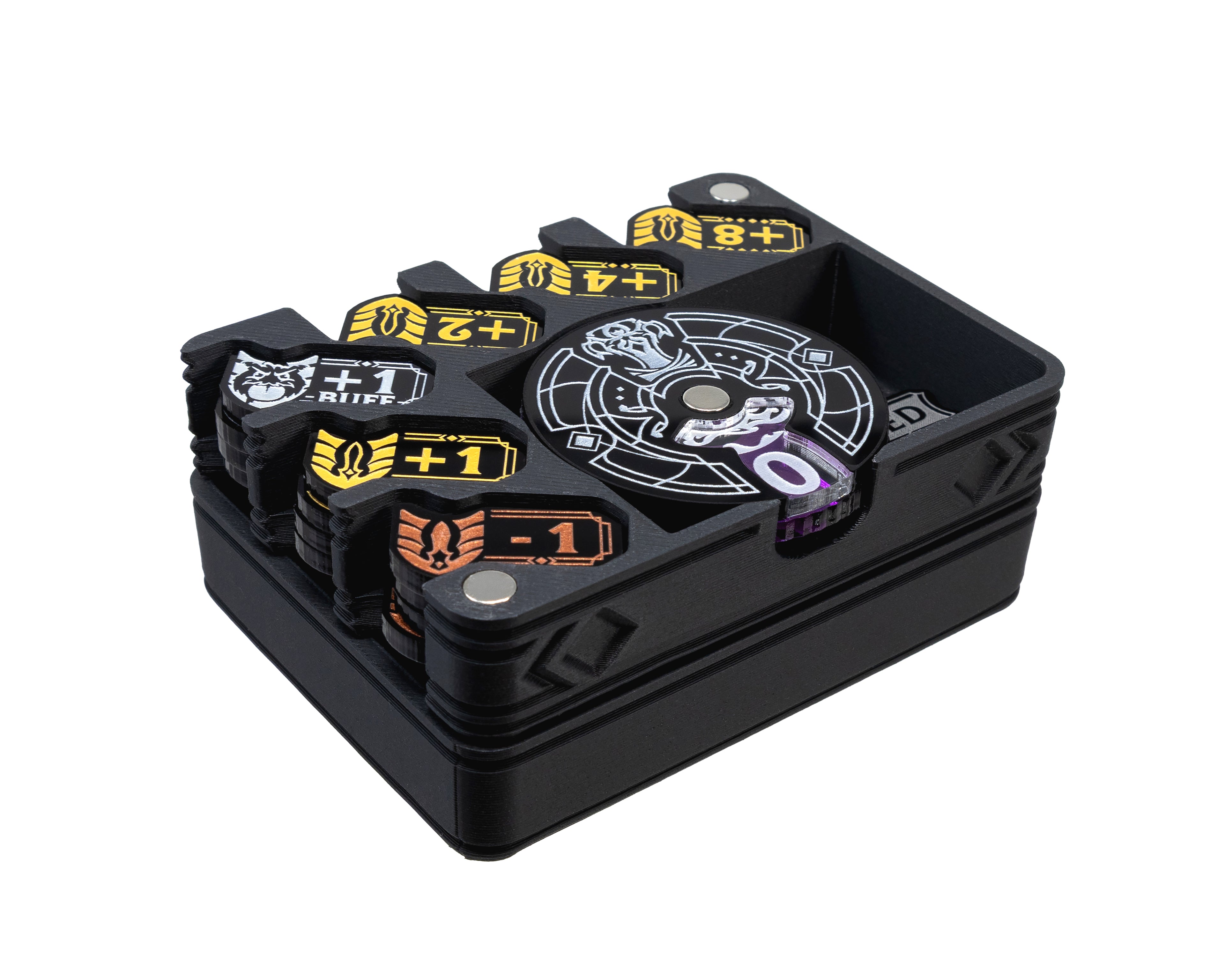 This set of 26 Premium Tokens, Victory Point Tracker Dial and Token Organiser contains all the essentials needed to start keeping track of your games in style and is the perfect way to keep your tokens and game accessories safe and organised. Crisp, clean, easy to read designs, combined with vibrant acrylic paint colours ensures that the game state can be read easily at a glance.