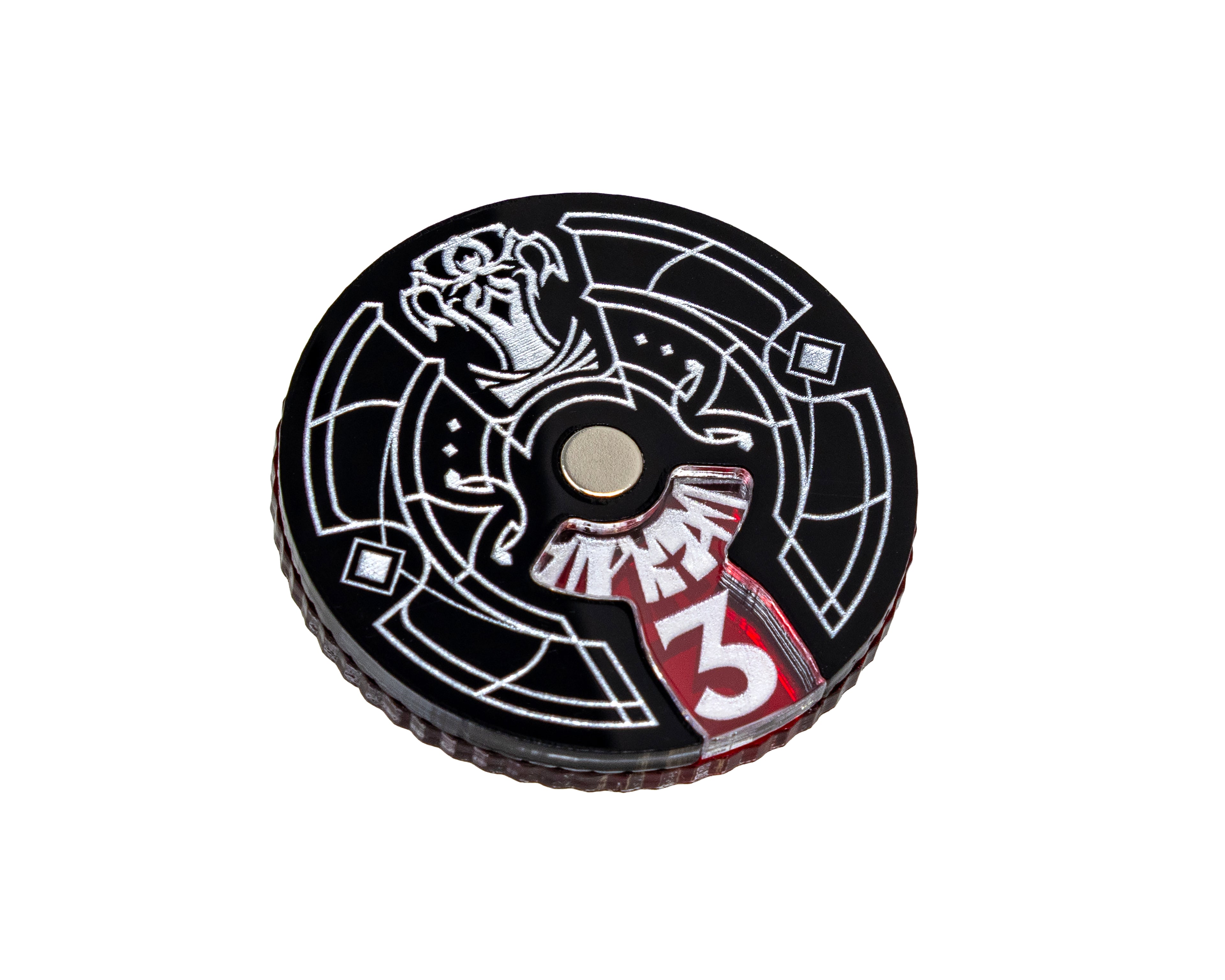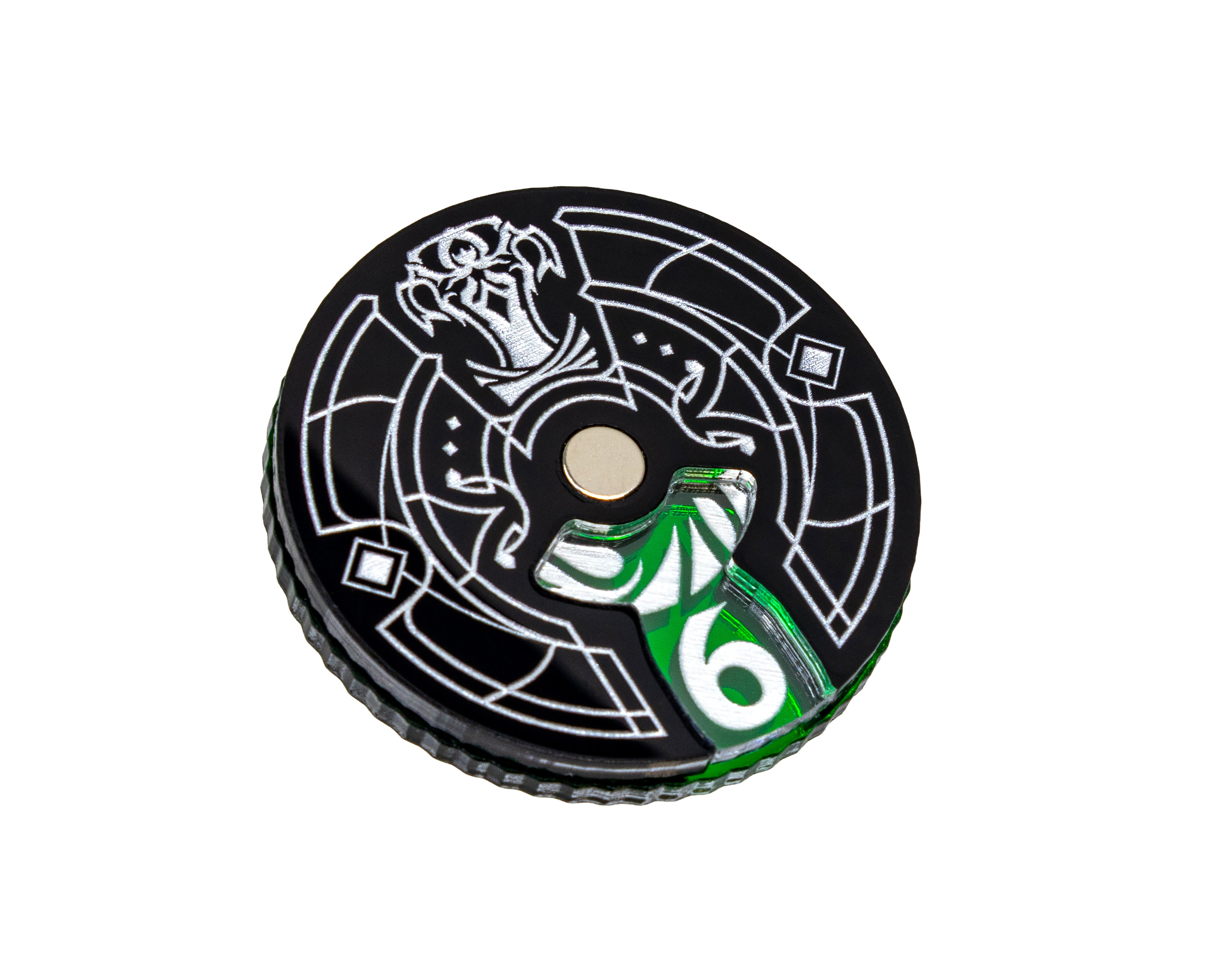 These thematic Victory Point Tracker Dials are perfect for keeping a tally of your victory points. Designed specially for Riftbound TCG, they feature original artwork that compliment the game art and display your score clearly for both you and your opponent to see. Crafted from a combination of opaque, transparent and mirror acrylic and fastened with strong magnets, they have a smooth turning action which can be operated with one hand and are available in the 6 domain colours of the game to match your decks.