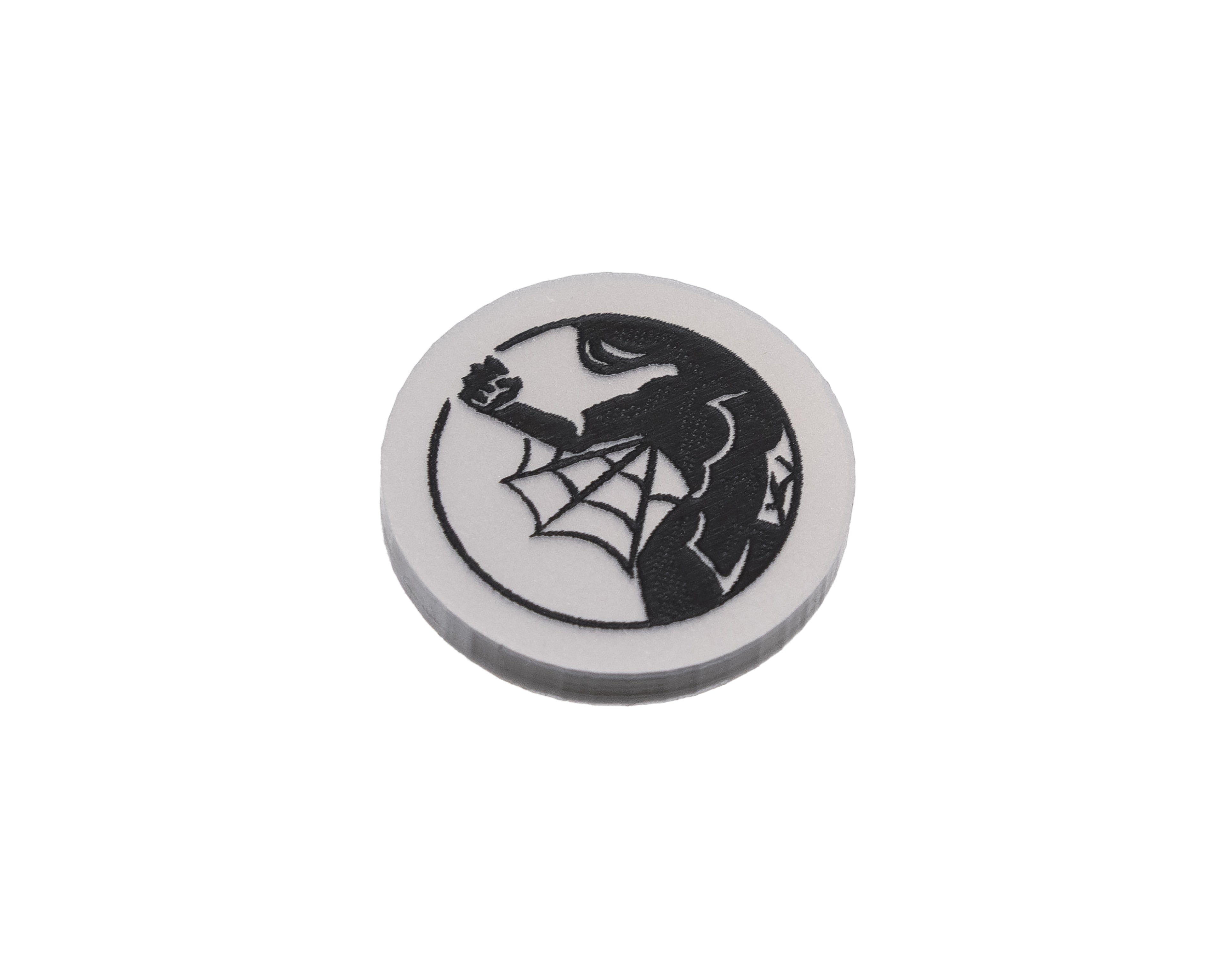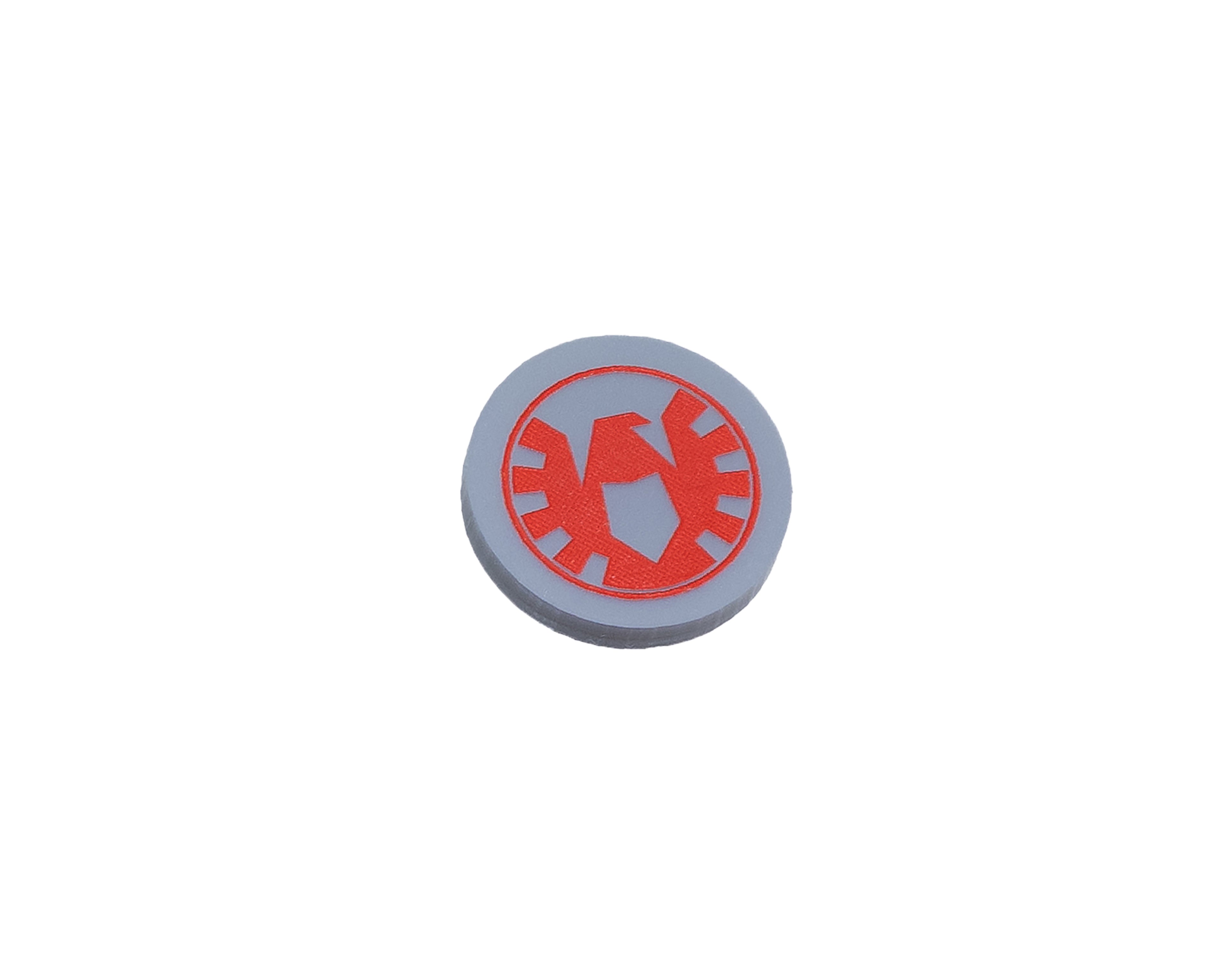 - 5 x SHIELD Team Activation Tokens, double sided, cut from sliver opaque acrylic and painted black on one side and red on the reverse side. Measuring Approximately 18mm diameter.