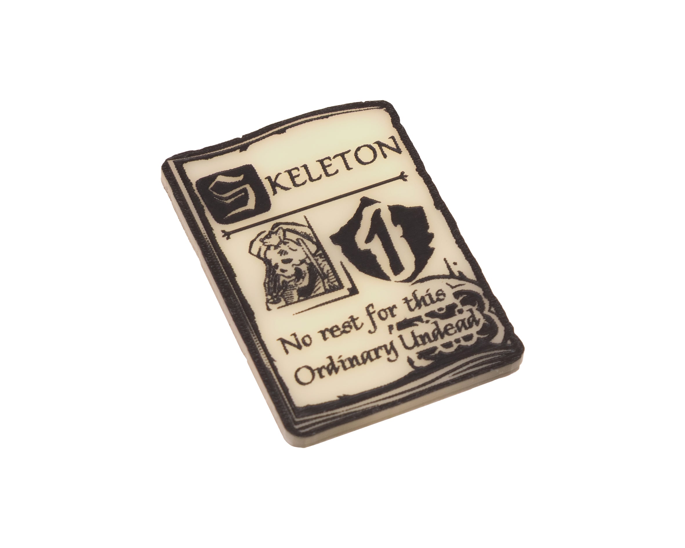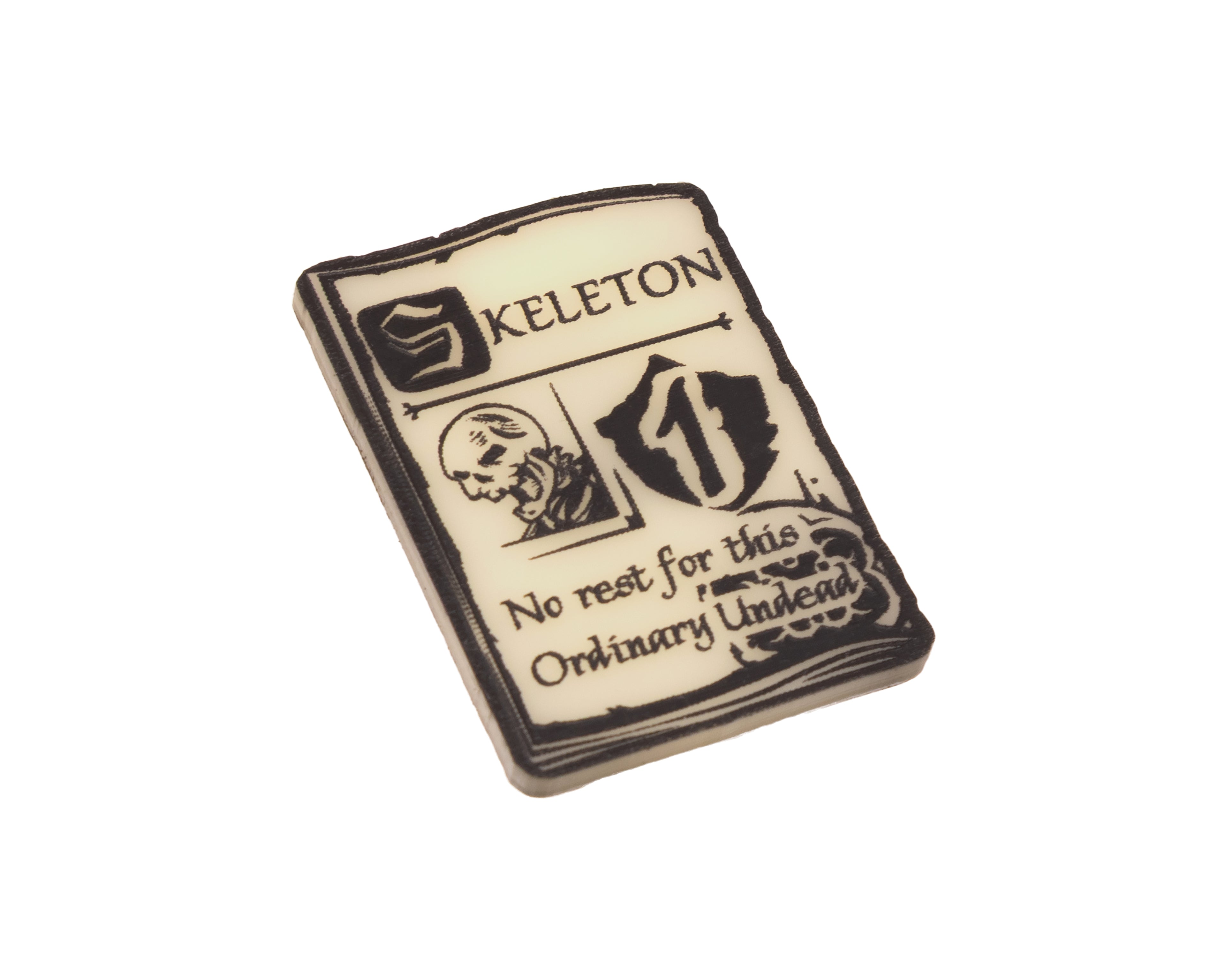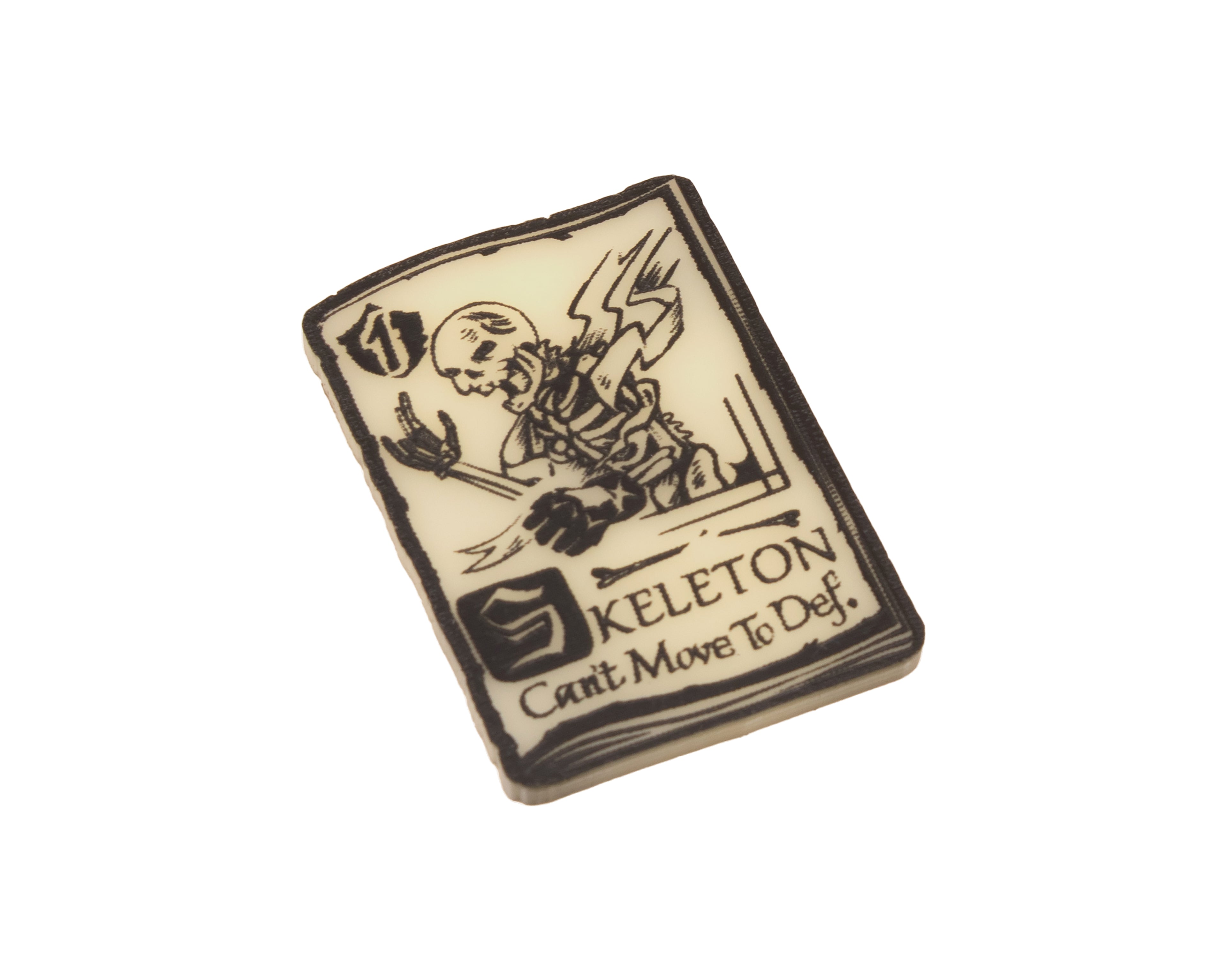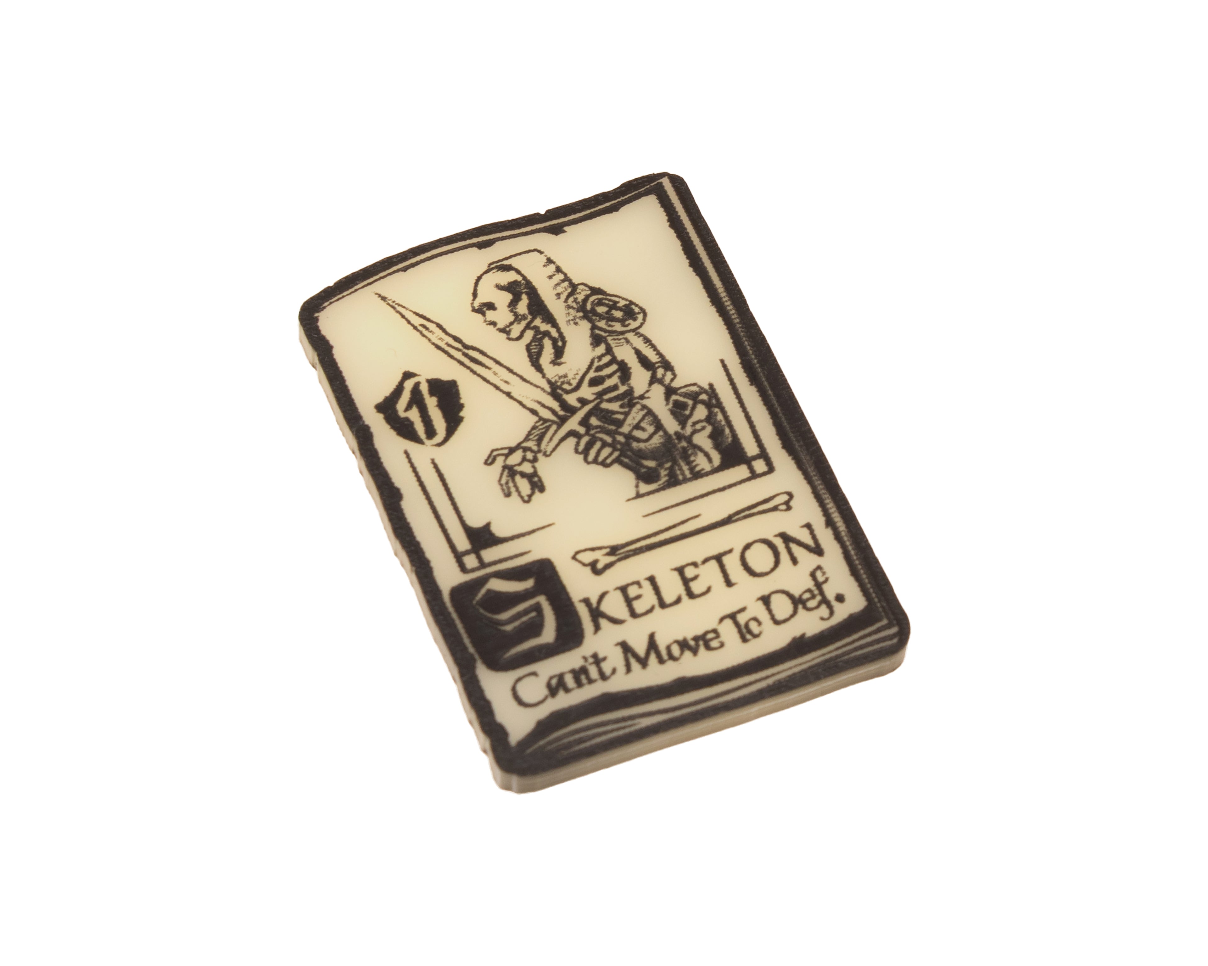 - 4 x Skeleton Unit Tokens, etched and cut from Ivory acrylic, etched on both sides and painted black. Measuring approximately 44mm x 31mm.