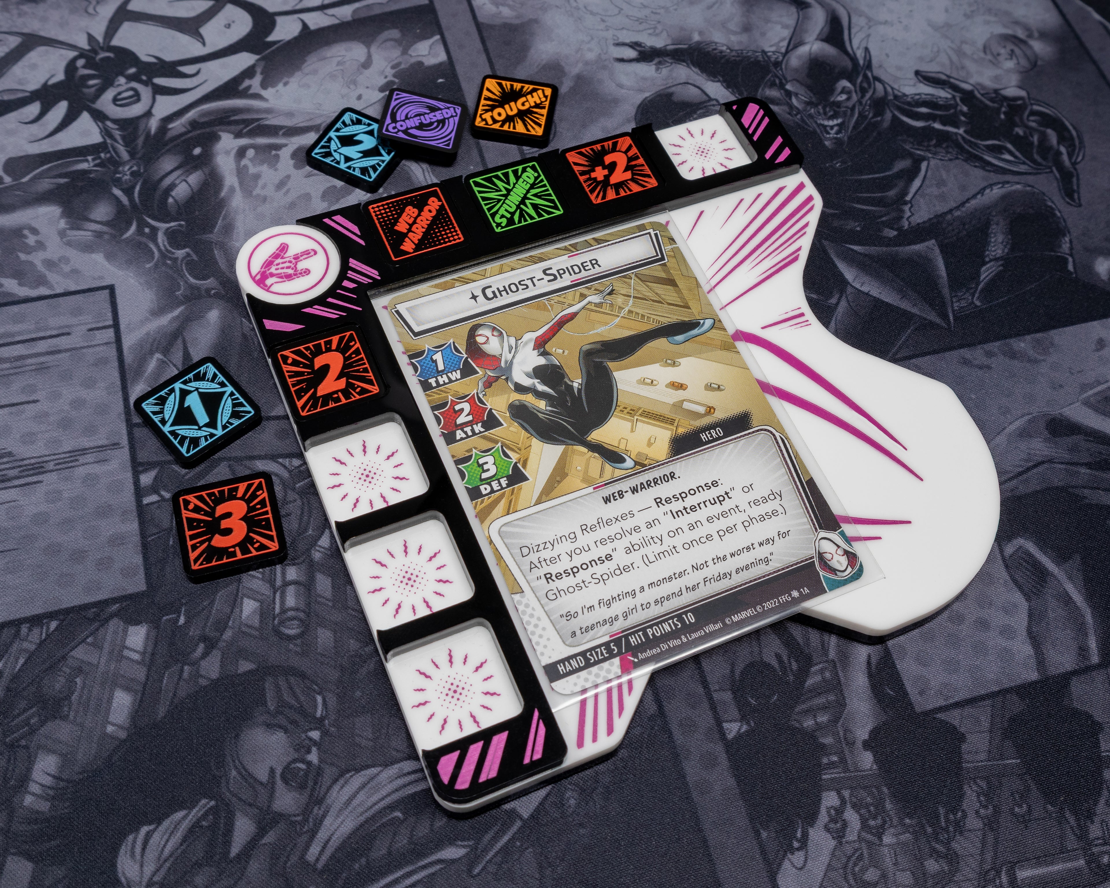 Our Hero Boards has been specifically designed to fit the theme of the Marvel Champions LCG. Having played the game ourselves extensively since launch, we have taken our time to design Hero Boards that are both beautiful and functional.
