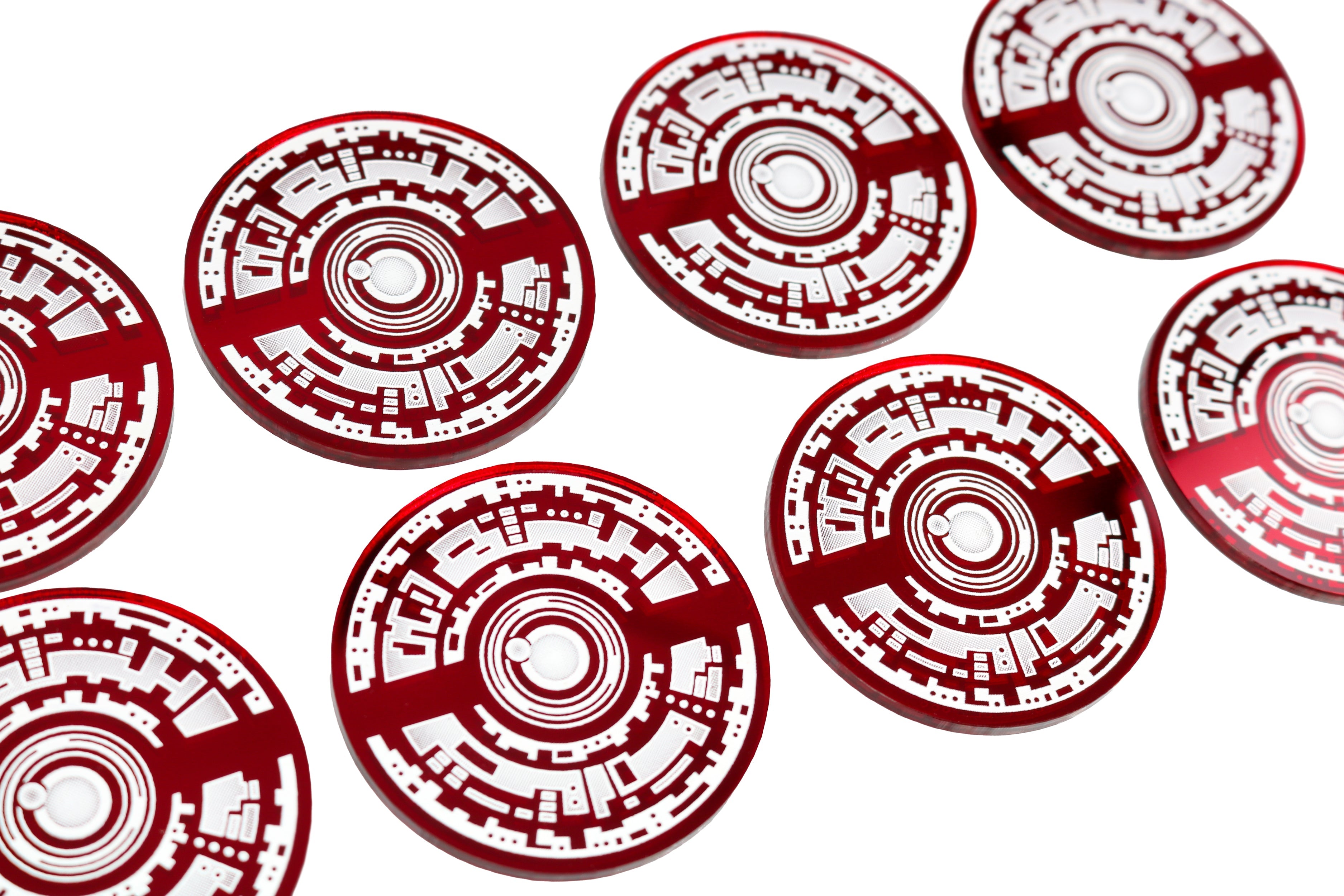 - 8x Objective Markers - Stunning red mirror acrylic with white detailing