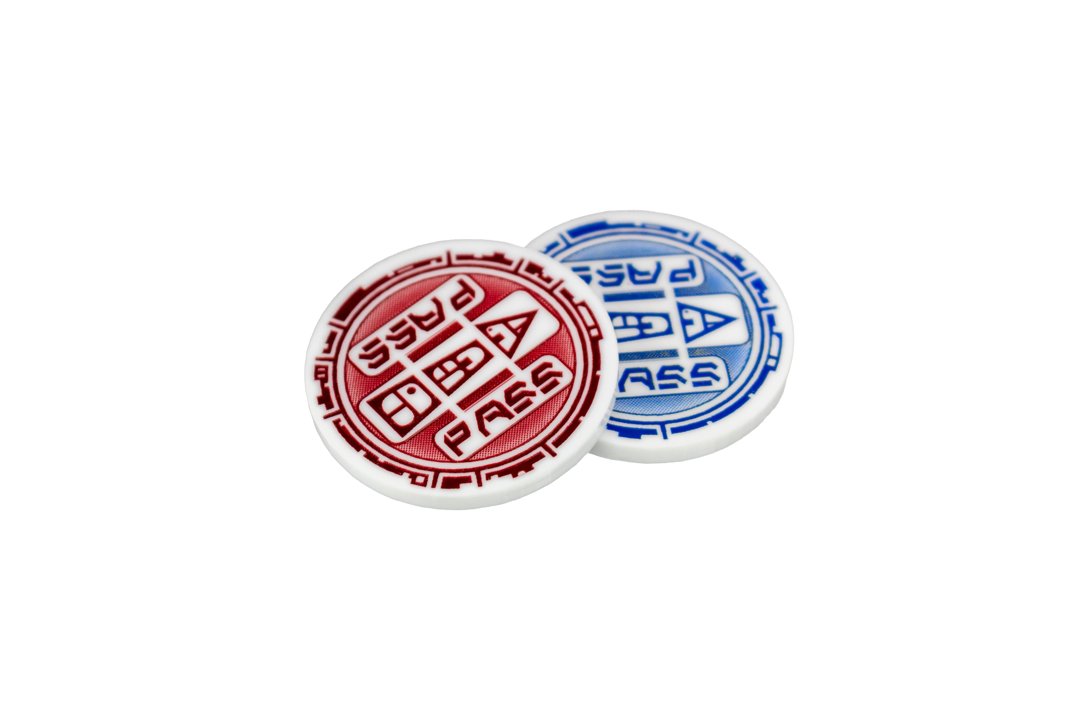- 2x Ion Tokens - Fluorescent blue acrylic with white detailing