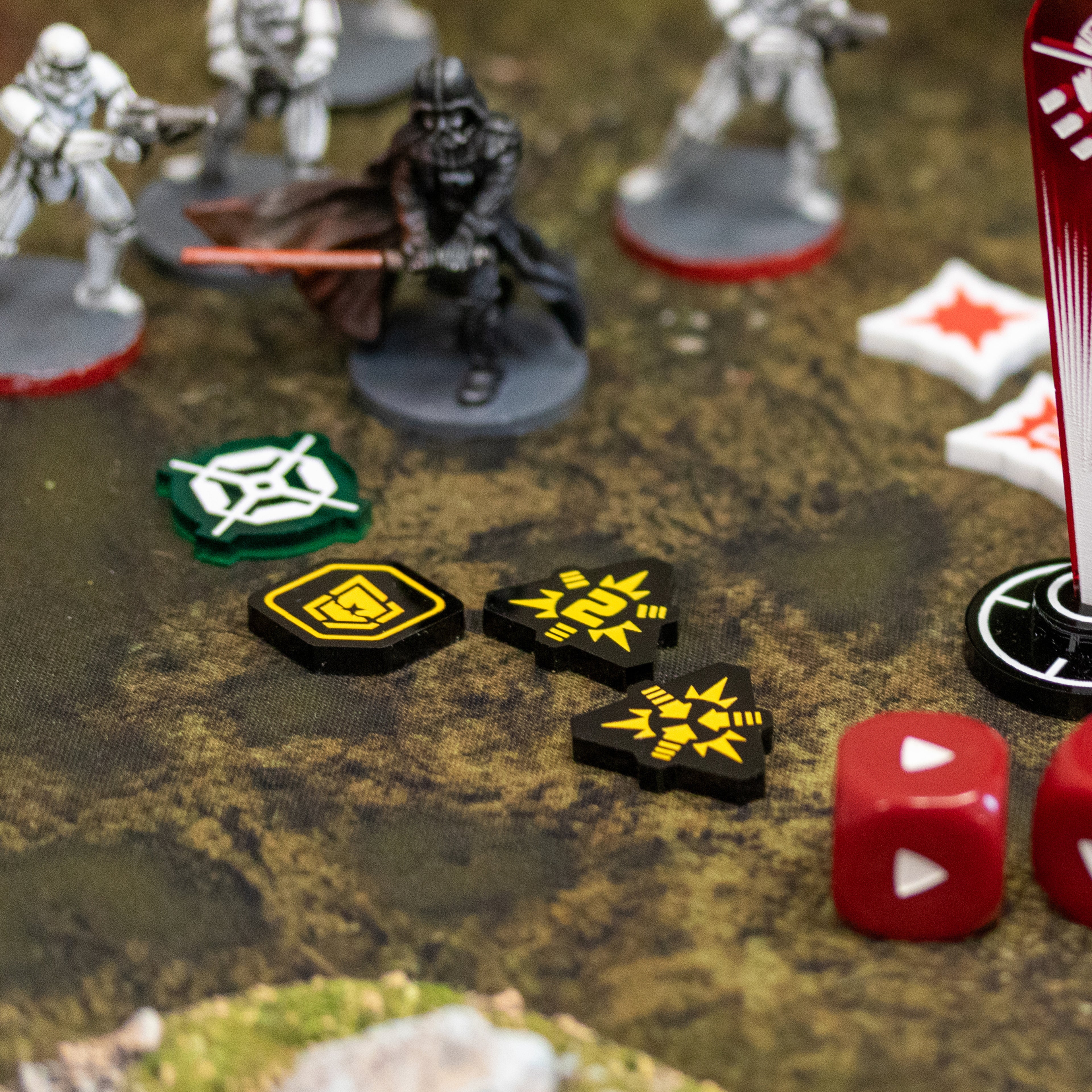 - 6x Aim Tokens - Dark green translucent acrylic for pinpoint accuracy