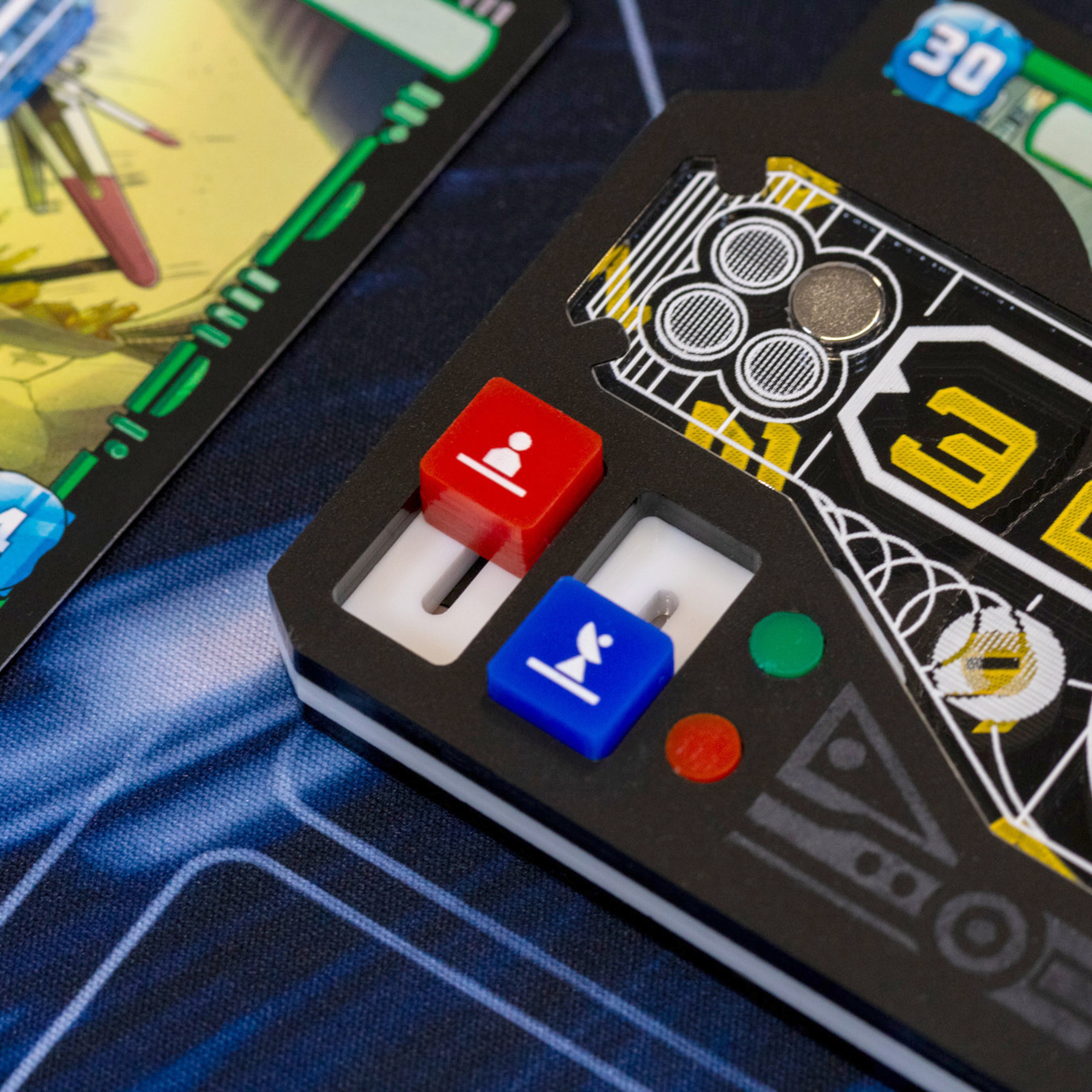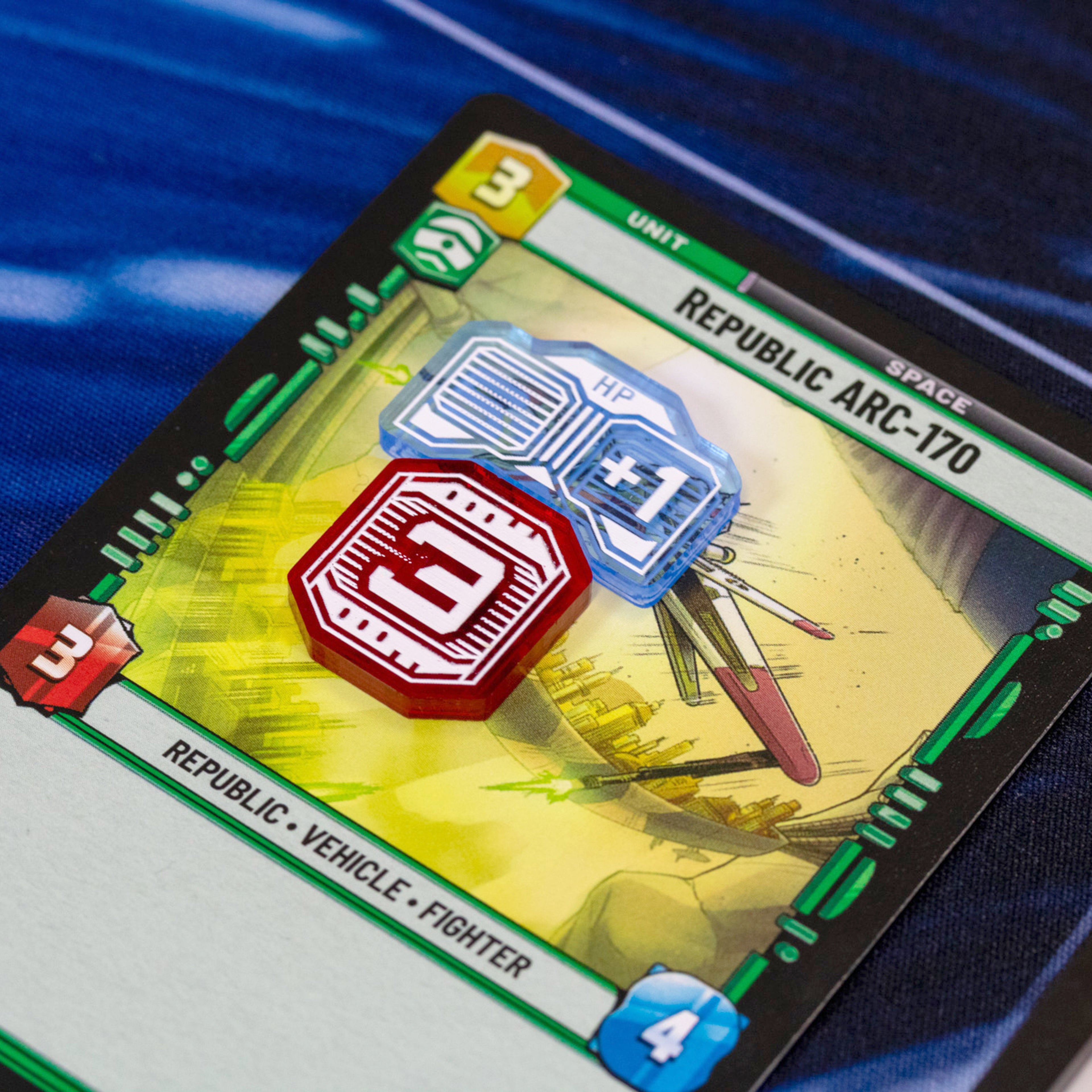 - 18 x Damage Tokens - Translucent red acrylic in three denominations (1/2, 3/4, 5/10)