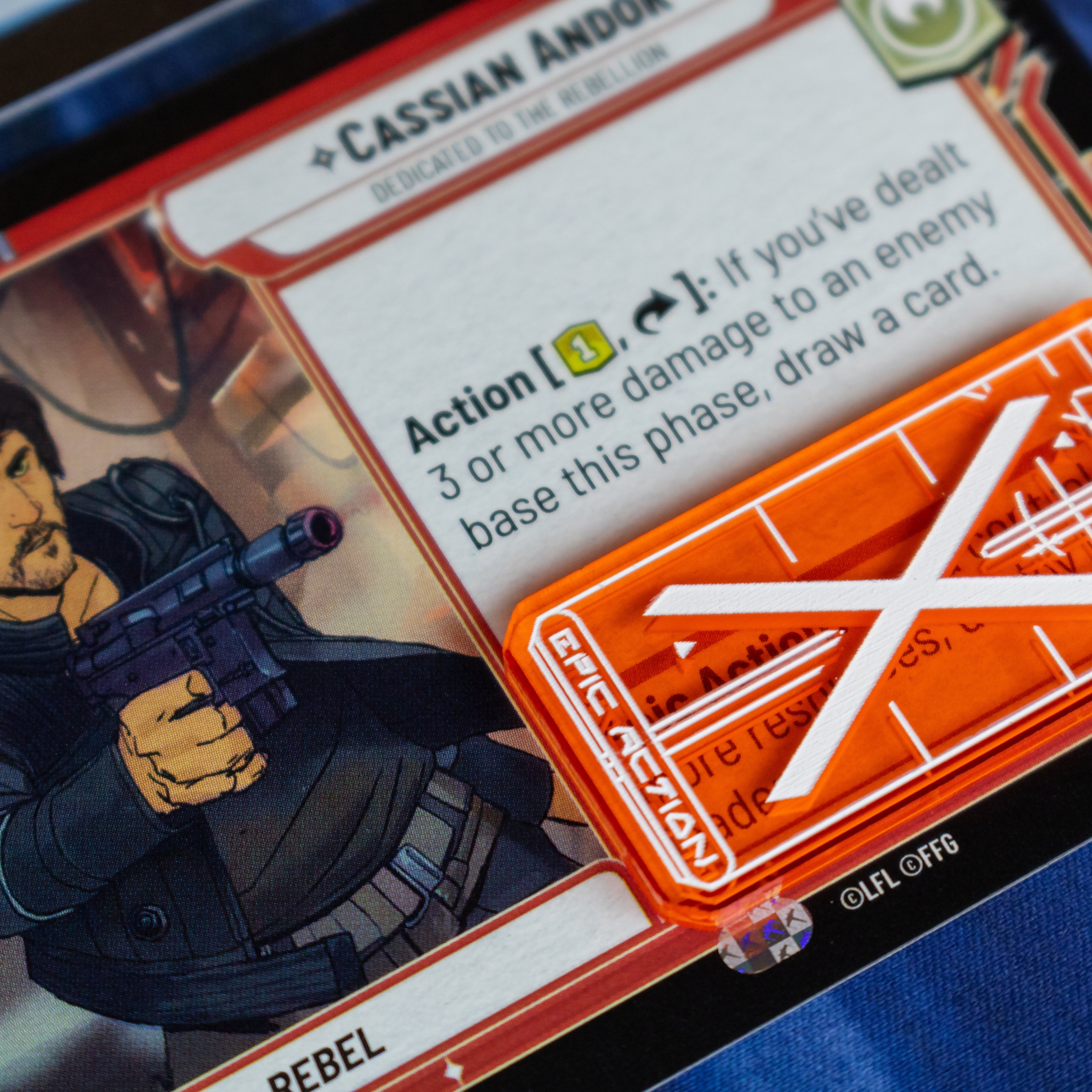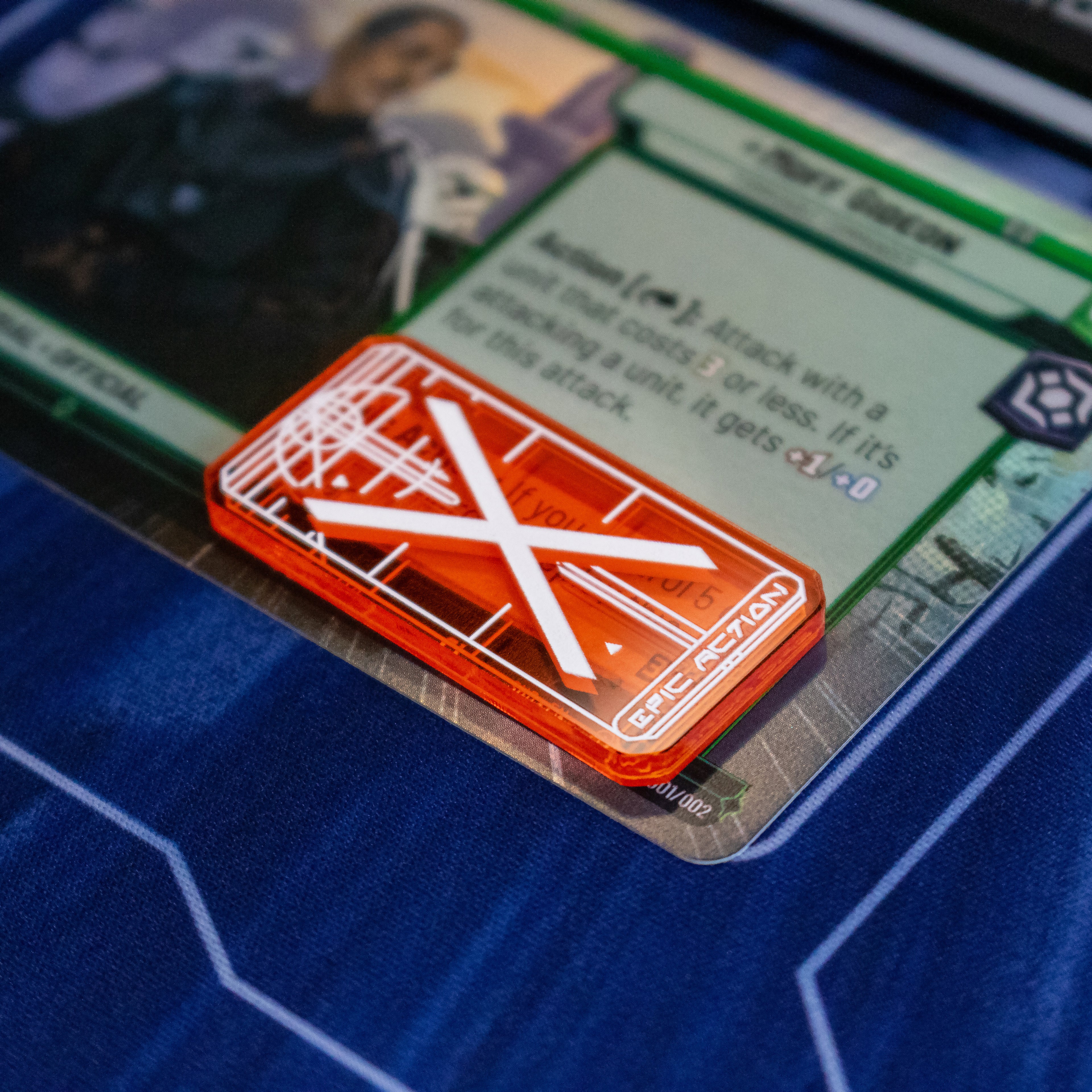 - 2 x Epic Action Tokens - Large and vibrant orange Epic Action tokens that cover card text boxes mean that all players will be in no doubt as to who has used their Epic Action