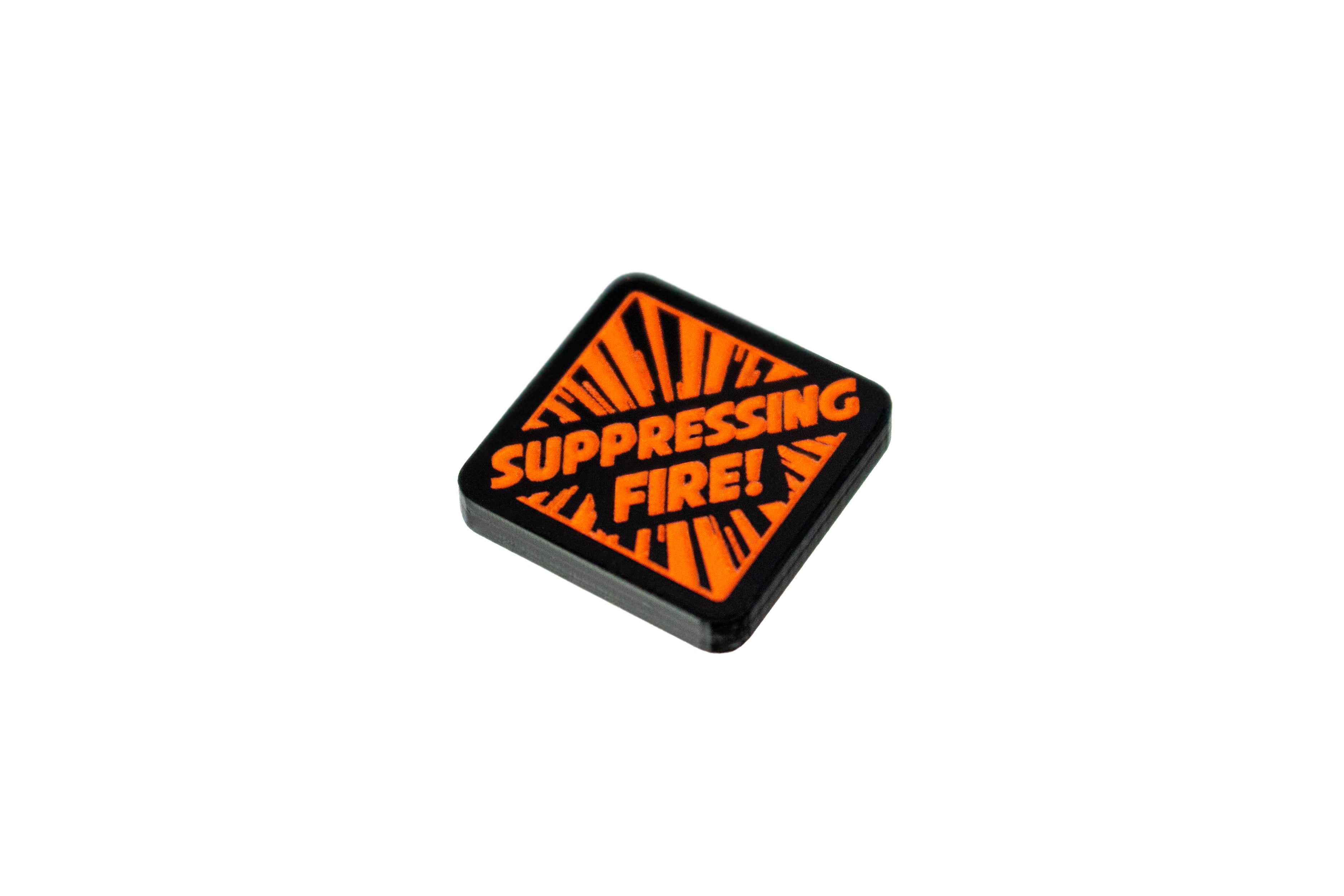 This suppressing Fire token is perfect for decluttering the play area when required to attach the card to an enemy. With an easy-to-read design and highly contrasting colours, these items are both a thematic and practical upgrade for your games.