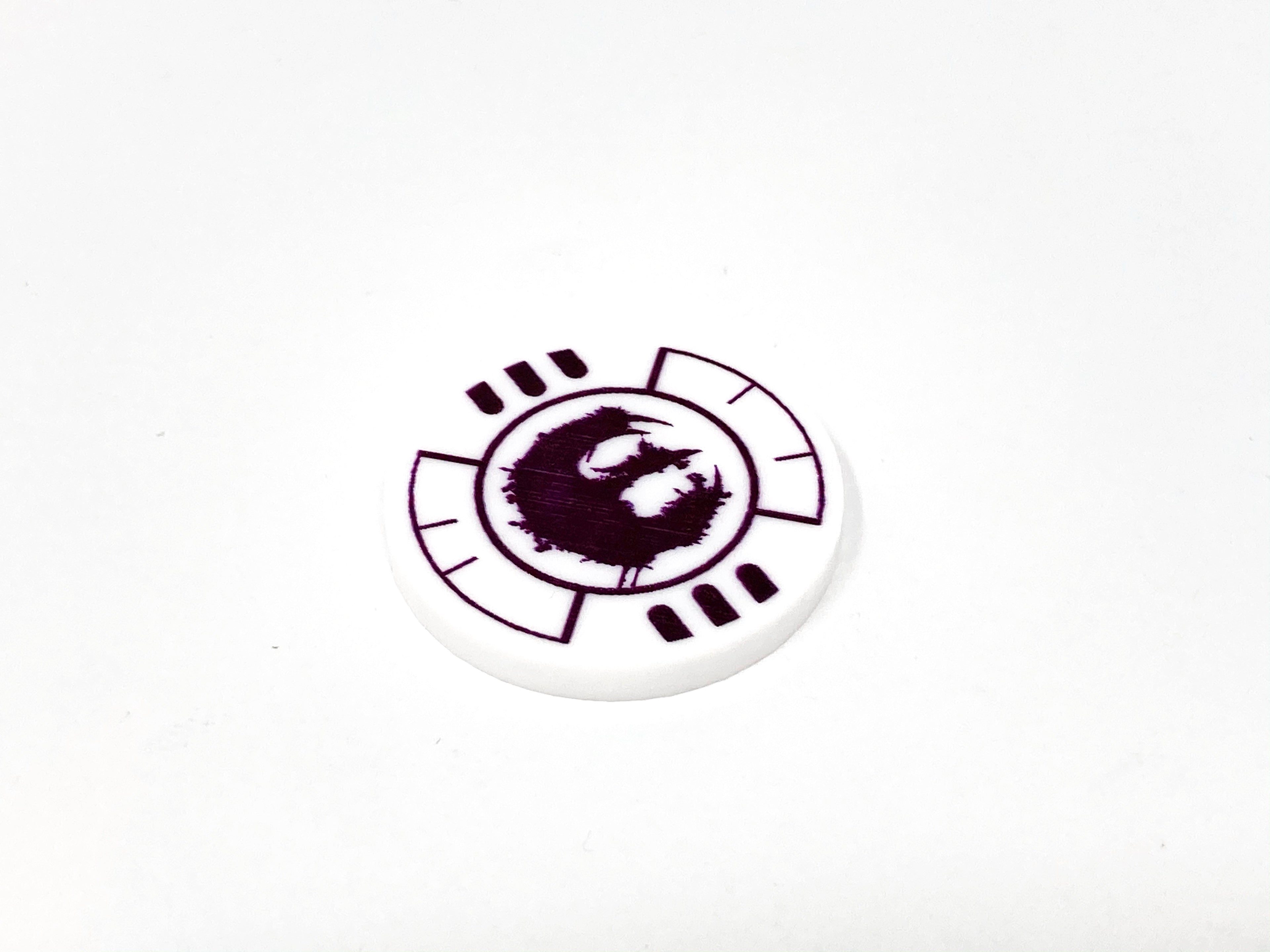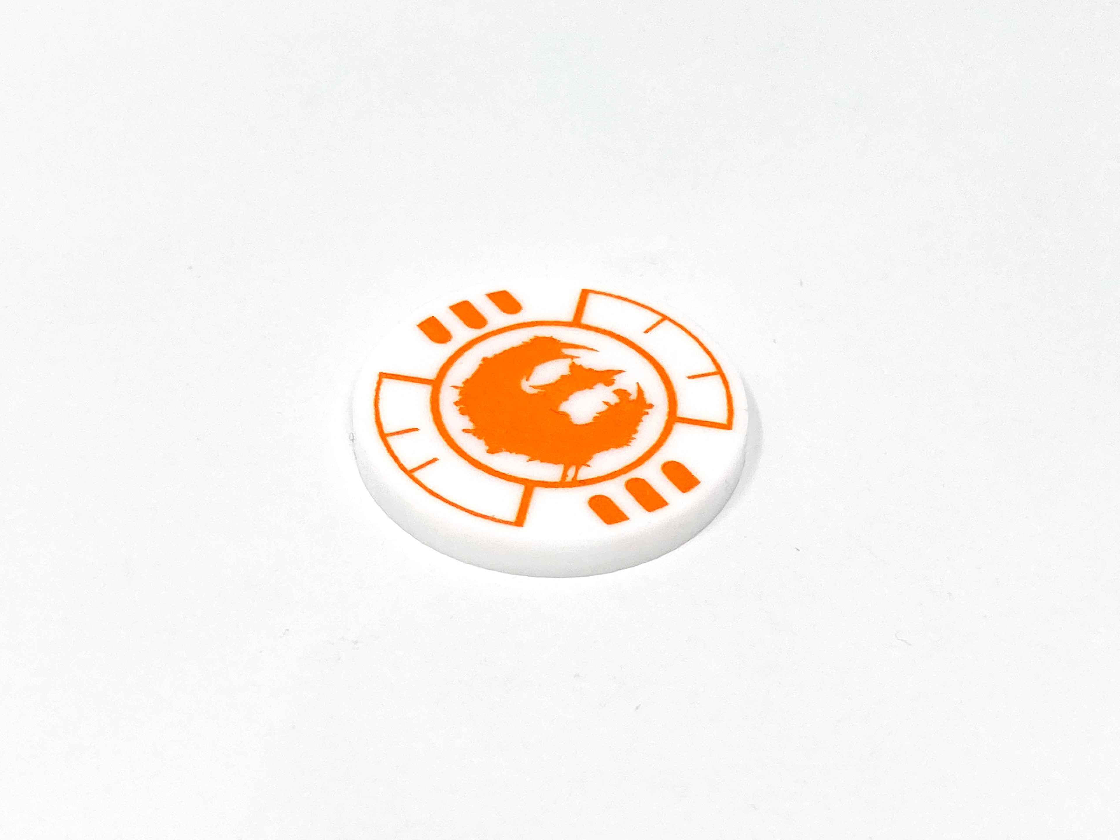 - 1 x Graffiti token (white acrylic, painted orange & purple)
