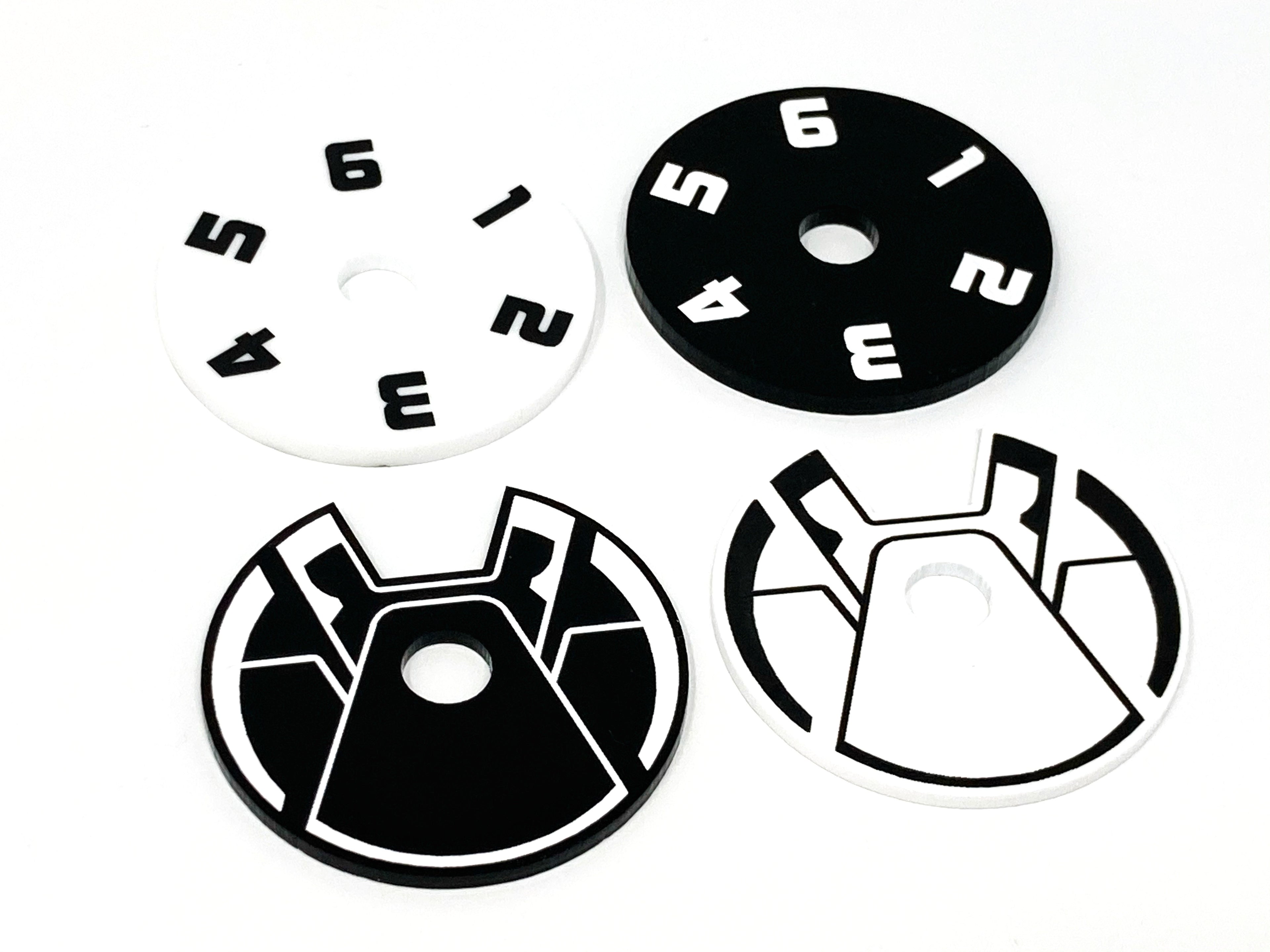 *****These two part dials are supplied without central clasp. A PLASTIC CLASP FROM FFG SW LEGION CORE SET IS REQUIRED FOR THIS ITEM.*****