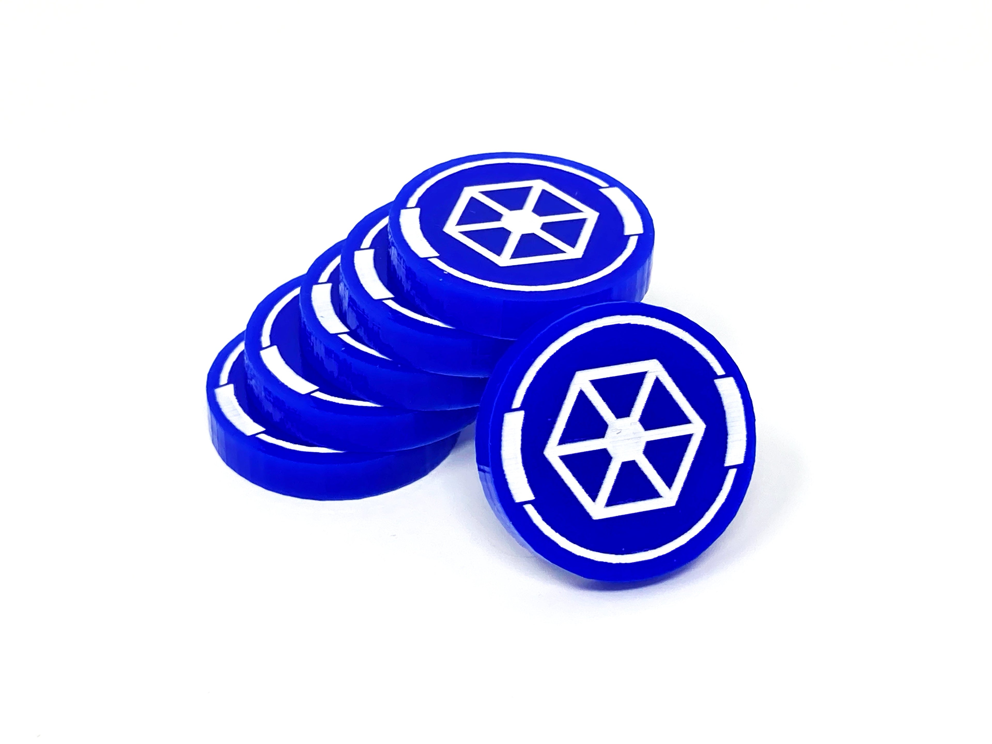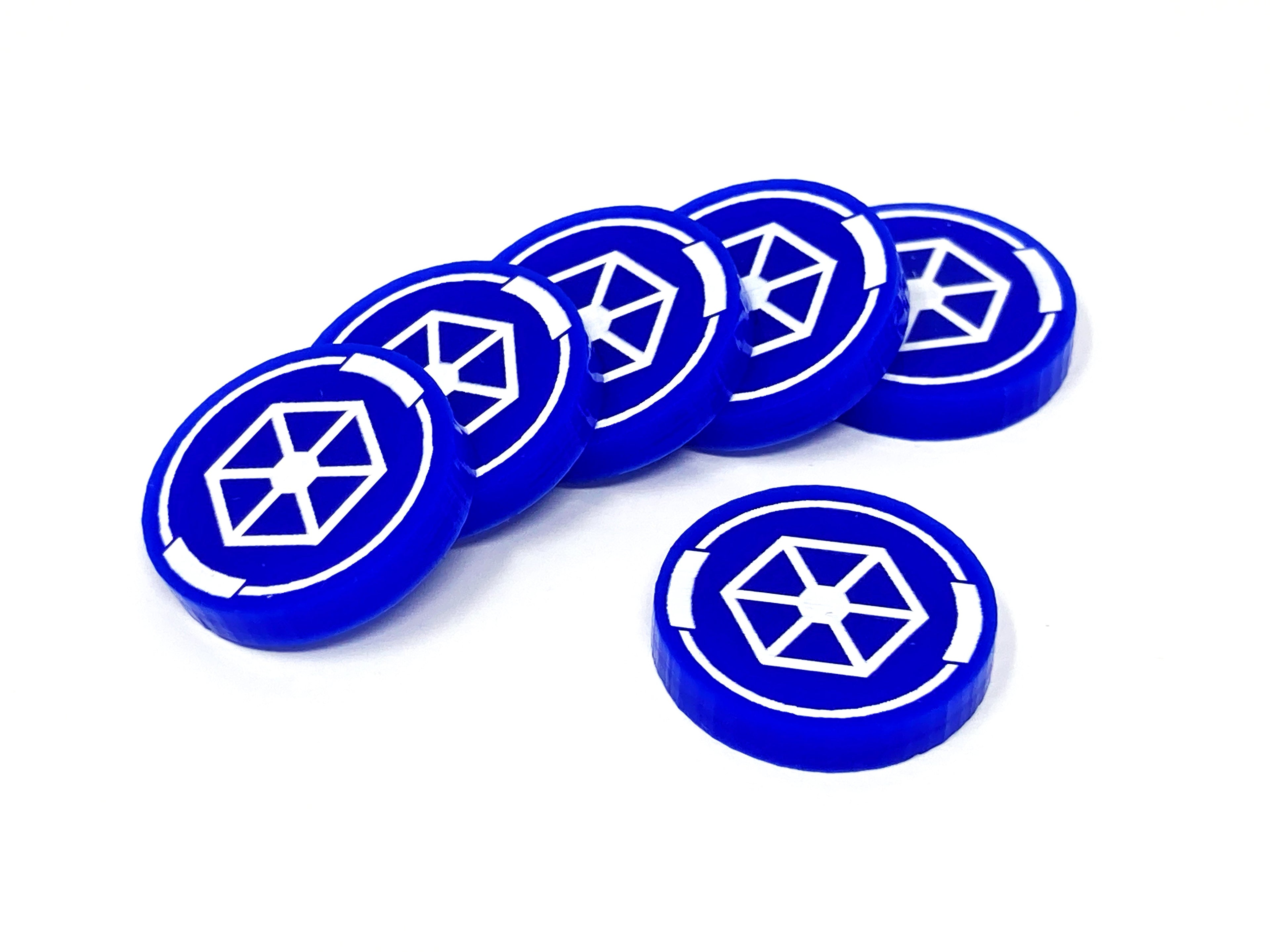 - 6 x Victory tokens (Single sided, mid blue acrylic, painted white)
