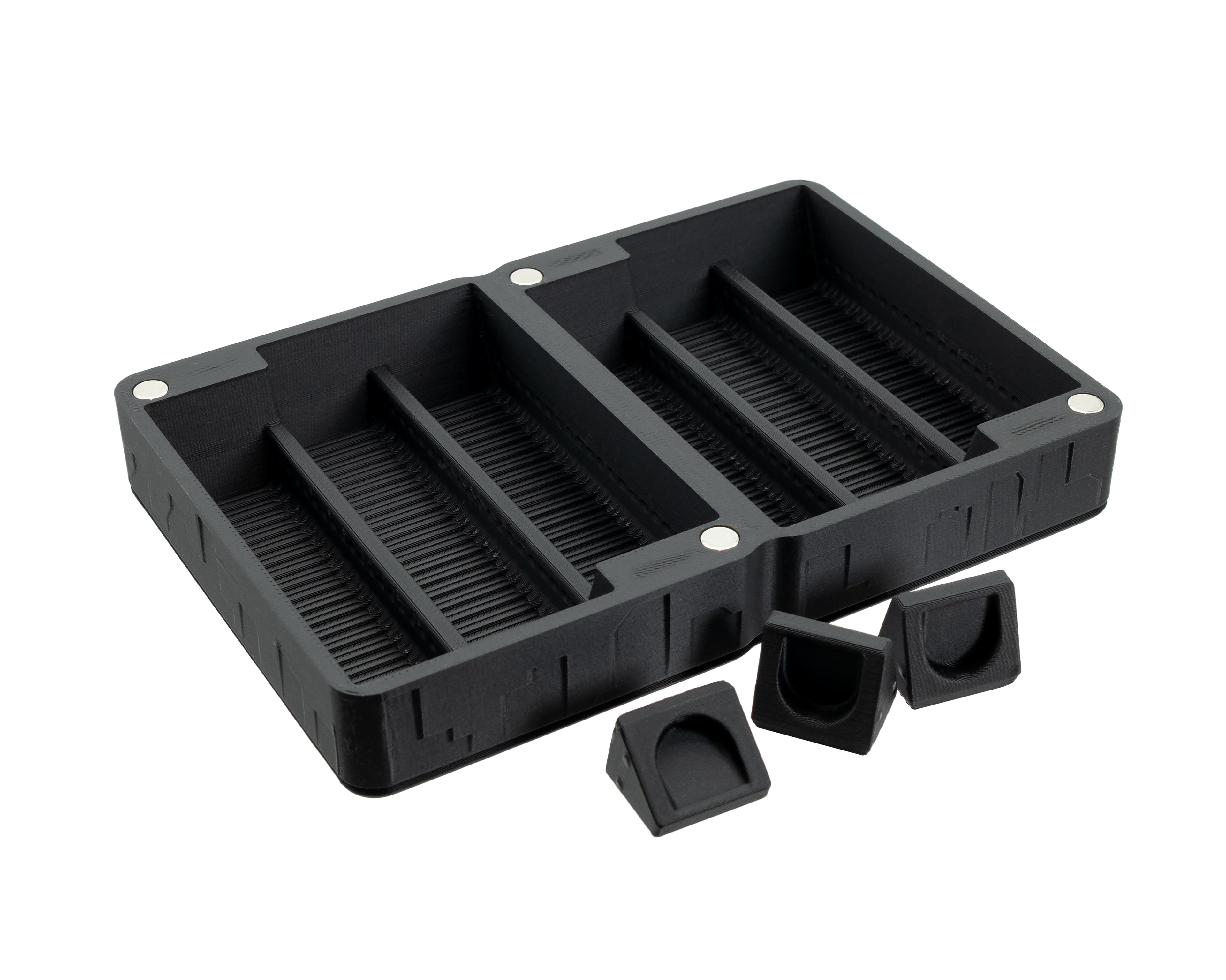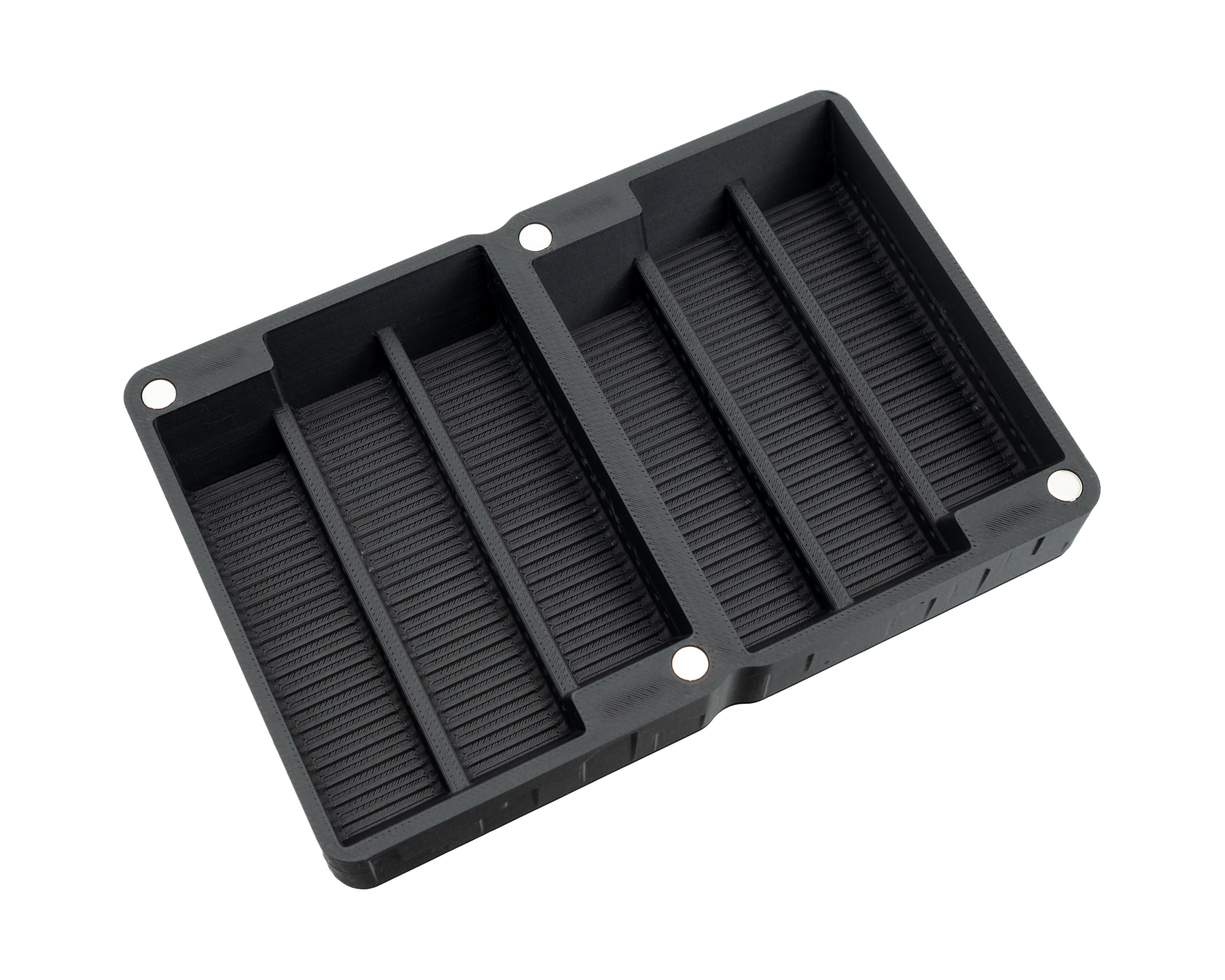 Each organiser features 8 strong neodymium magnets which allow multiple organisers to be securely stacked on top of one another.