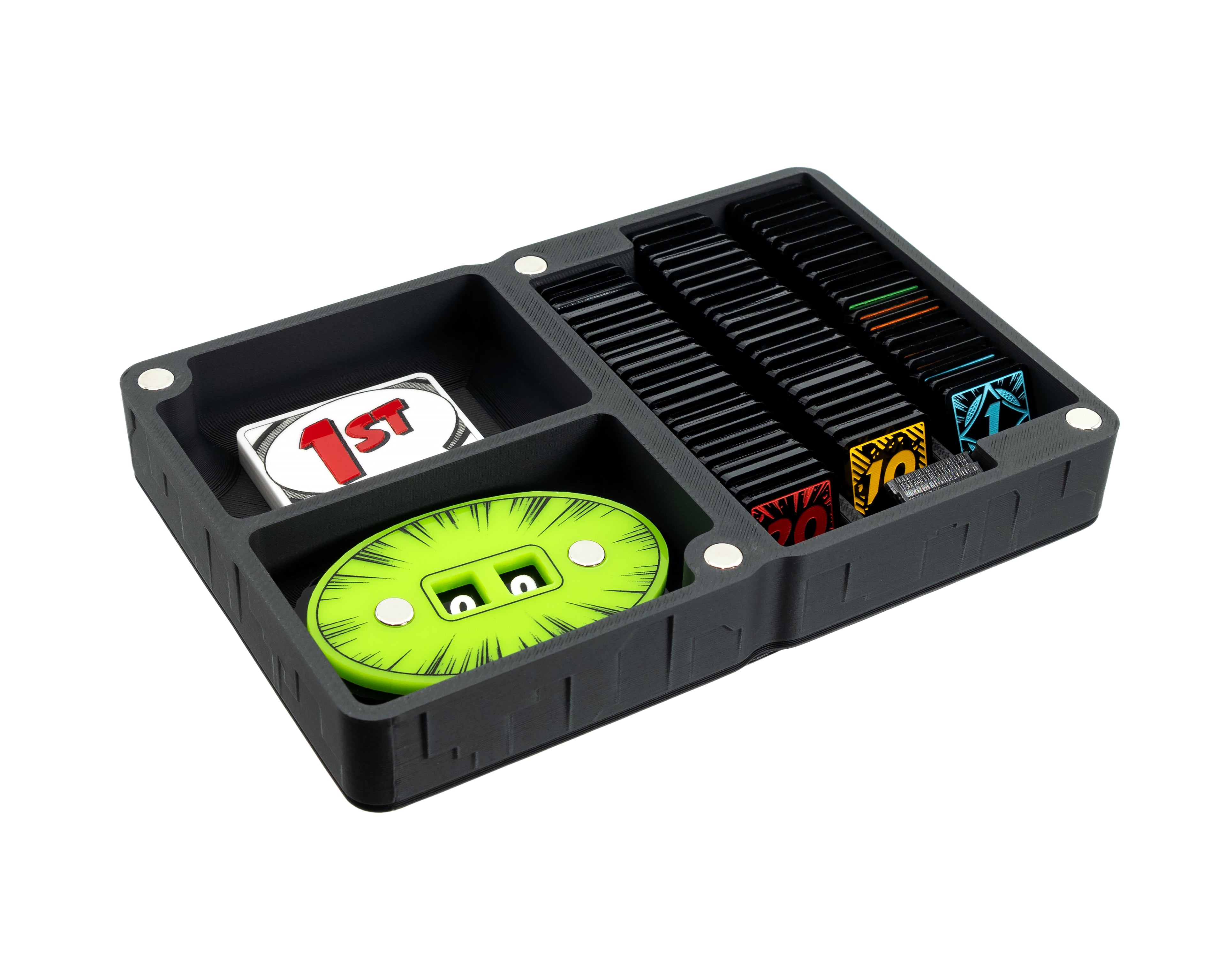 Included with this organiser are 3 adjustable token dividers, which allow players to more easily segment token types within the organiser.