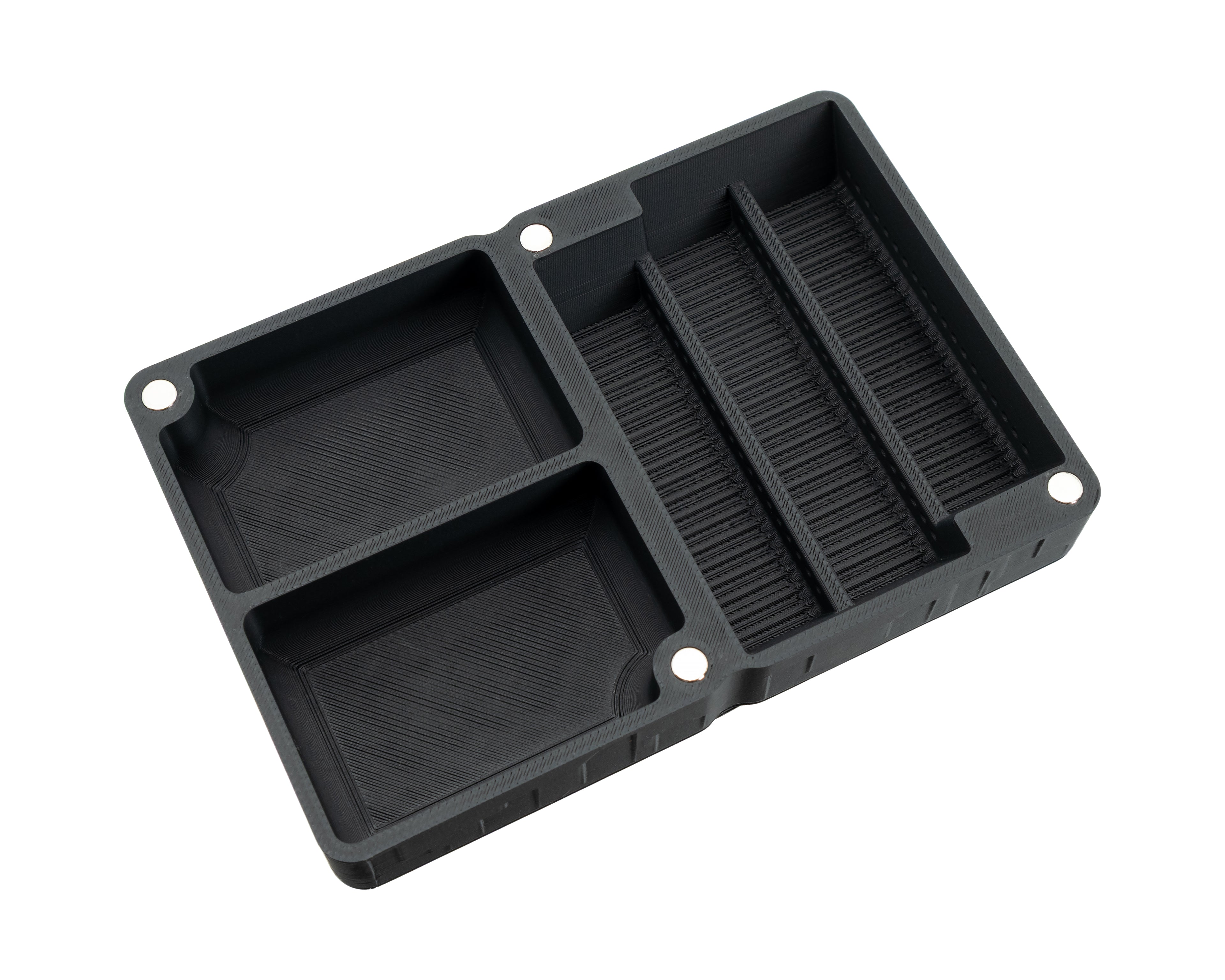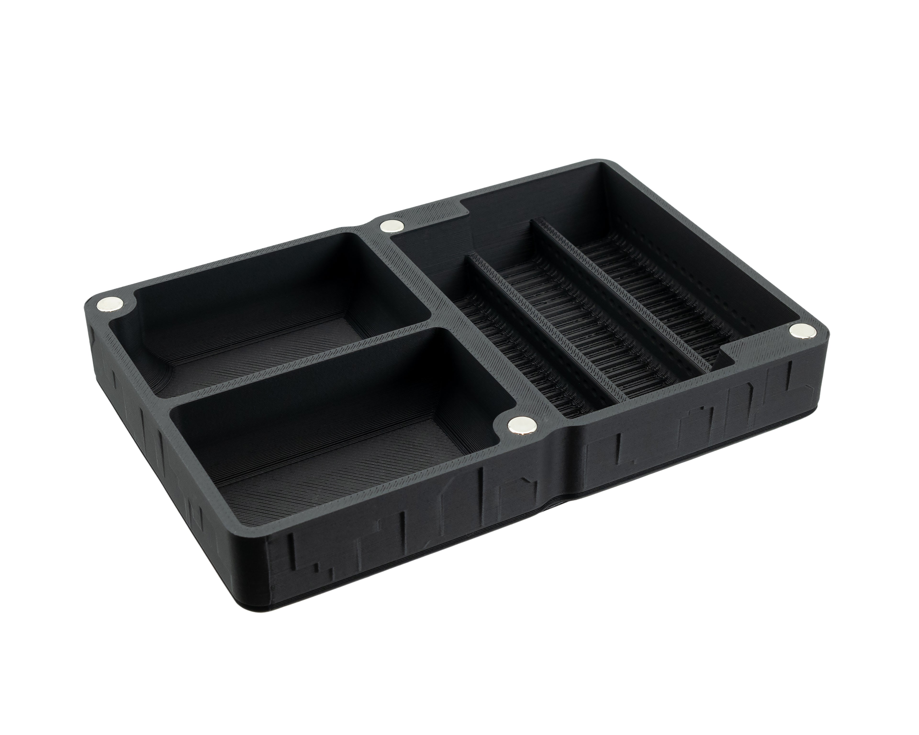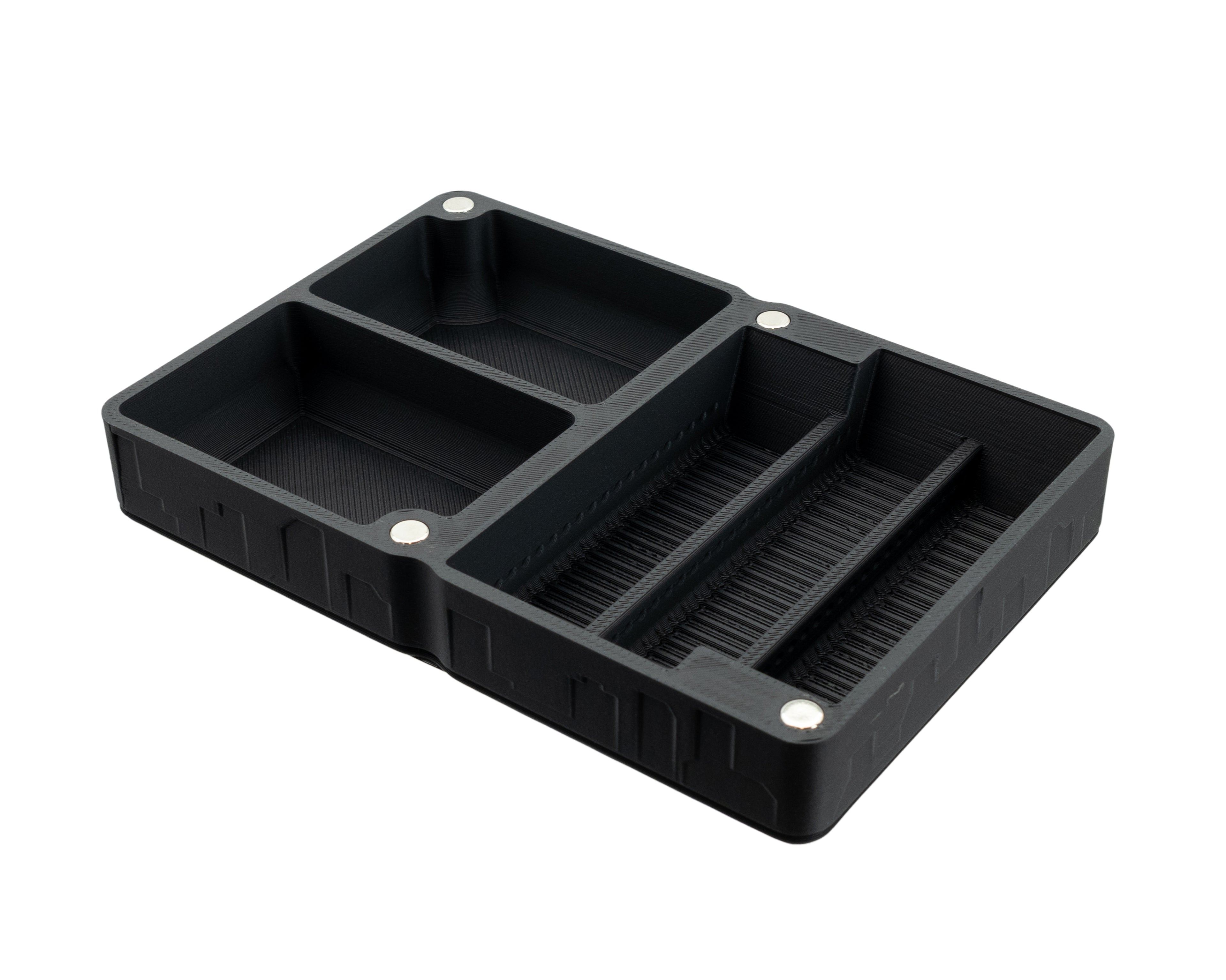 Each organiser features 8 strong neodymium magnets which allow multiple organisers to be securely stacked on top of one another.