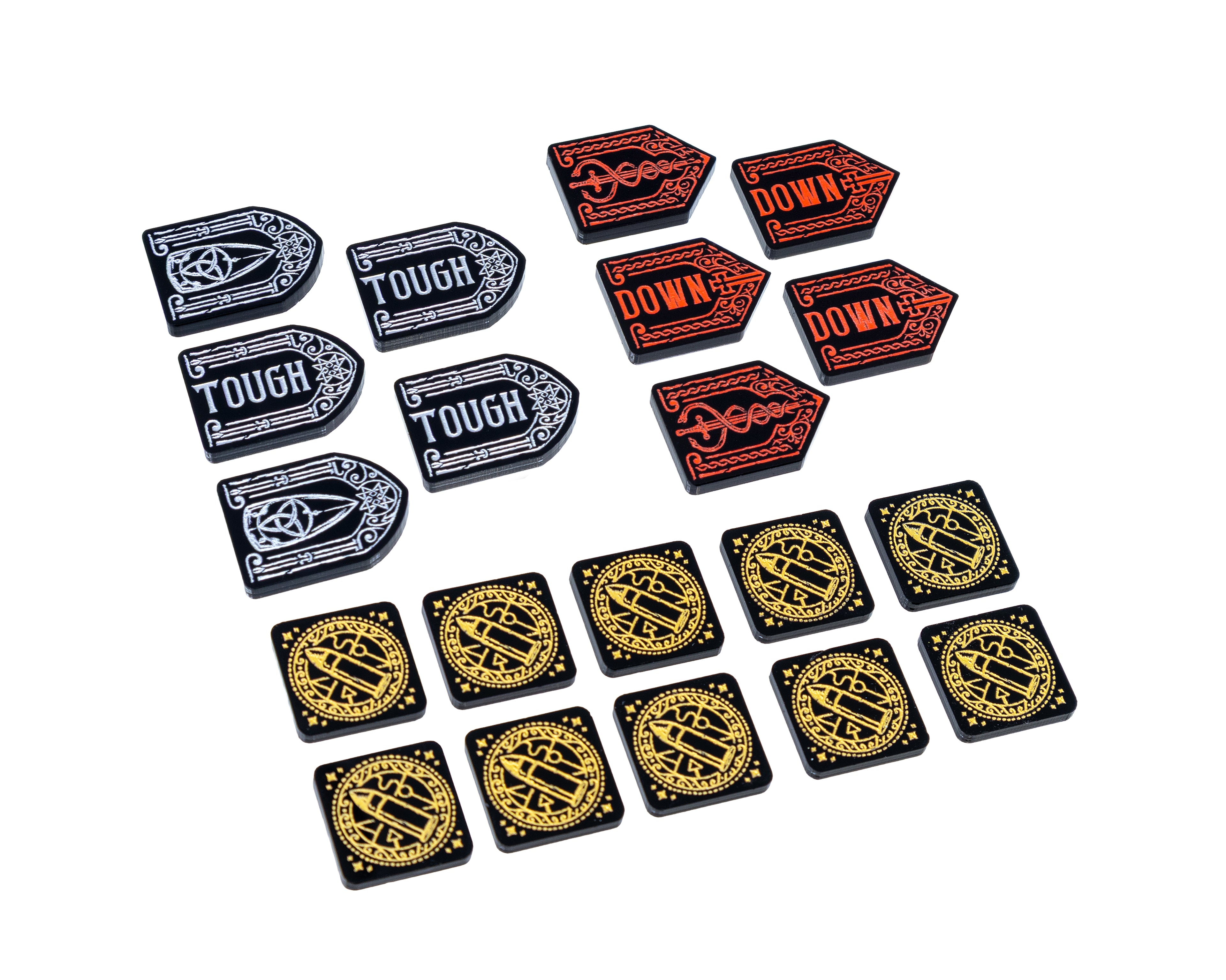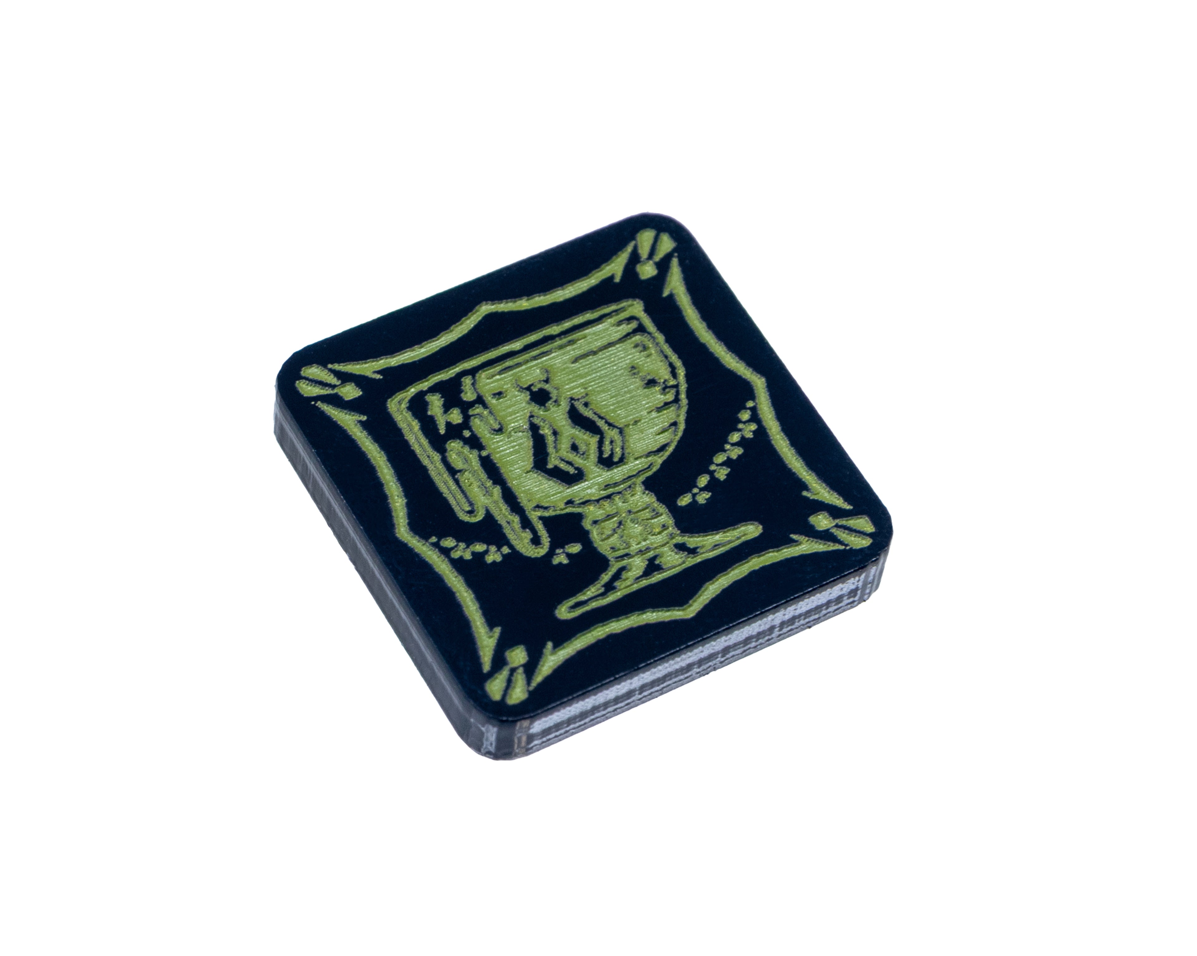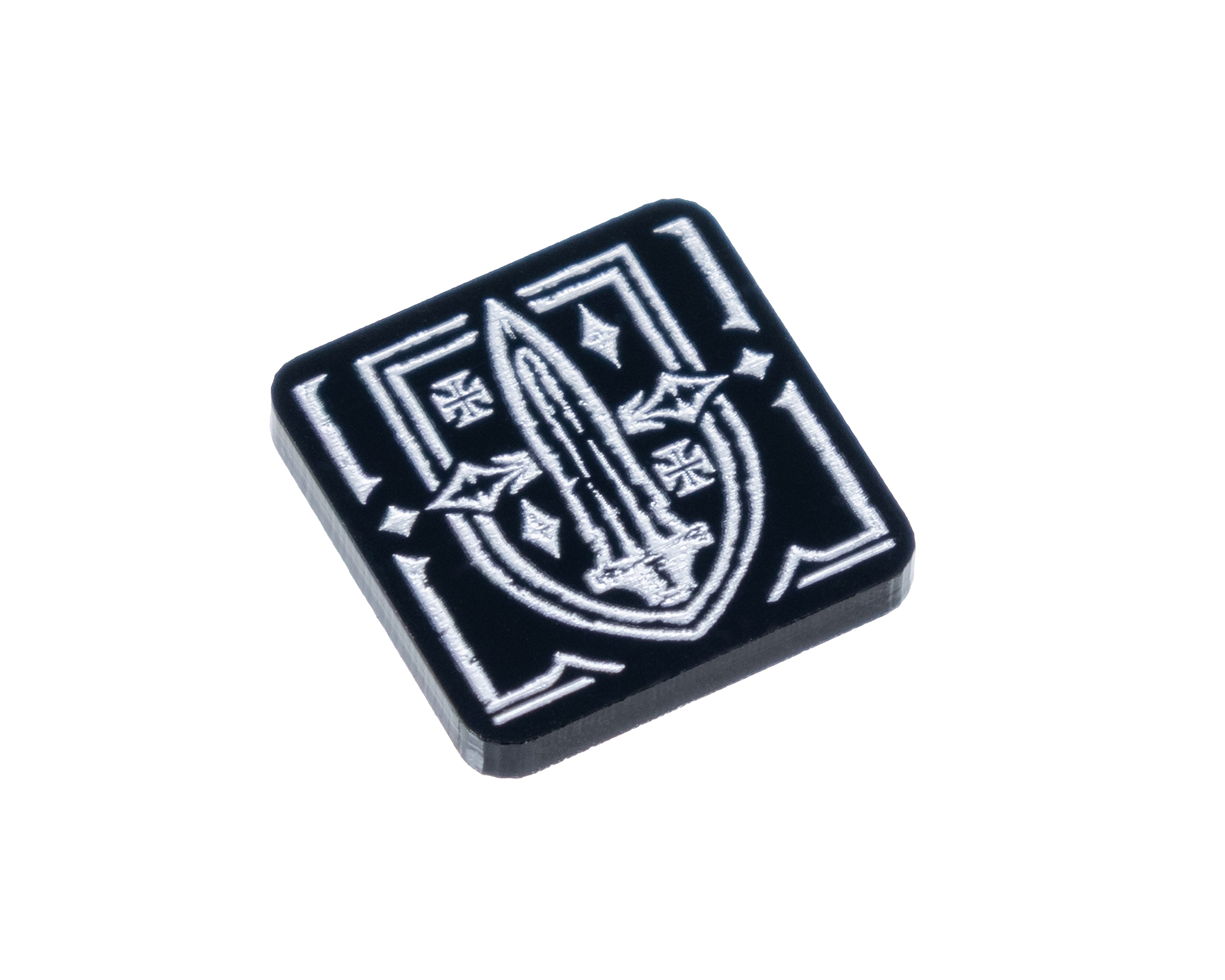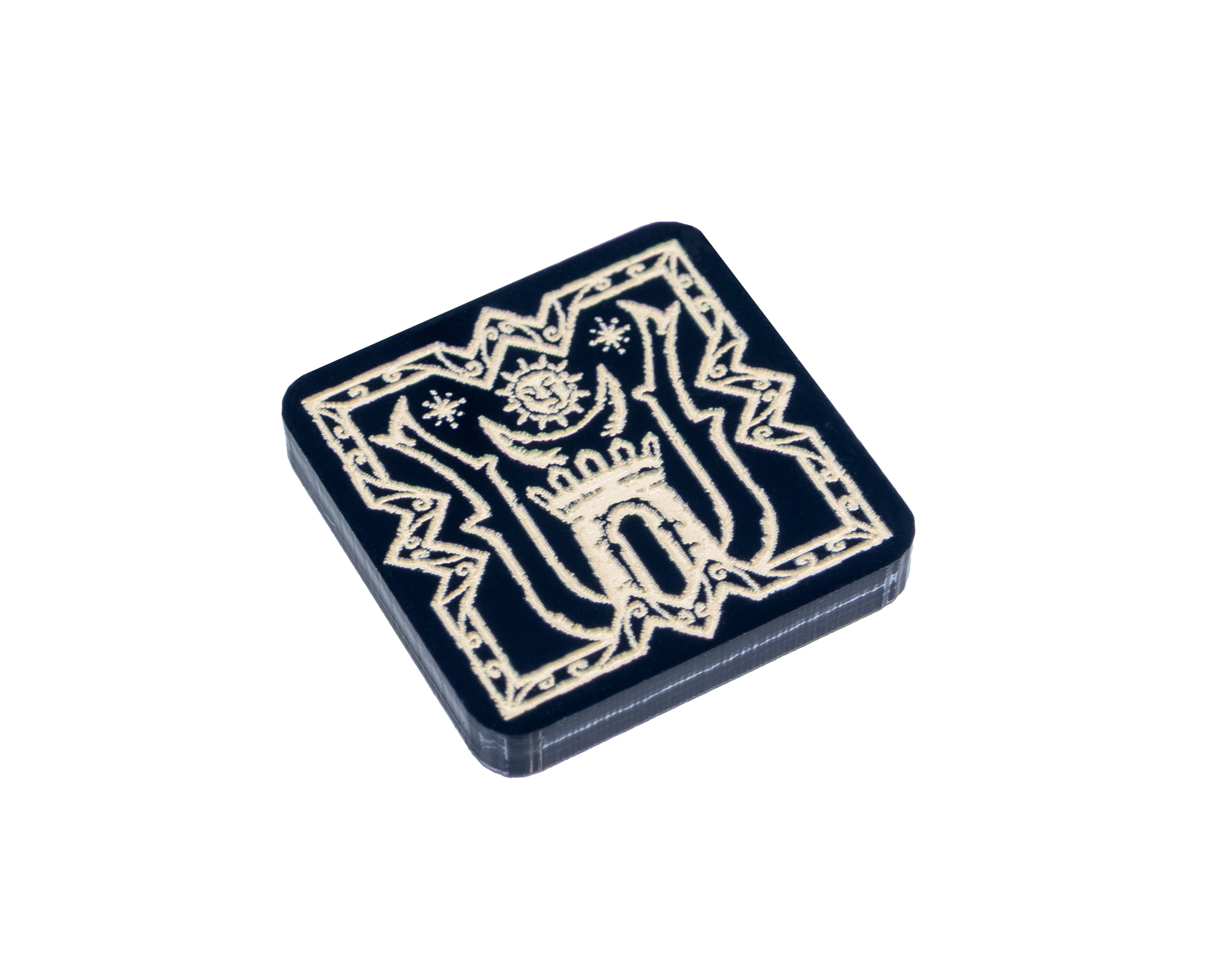 - 10 x Activation tokens, double sided, etched and cut from black 3mm acrylic. Measuring 18mm x 18mm.