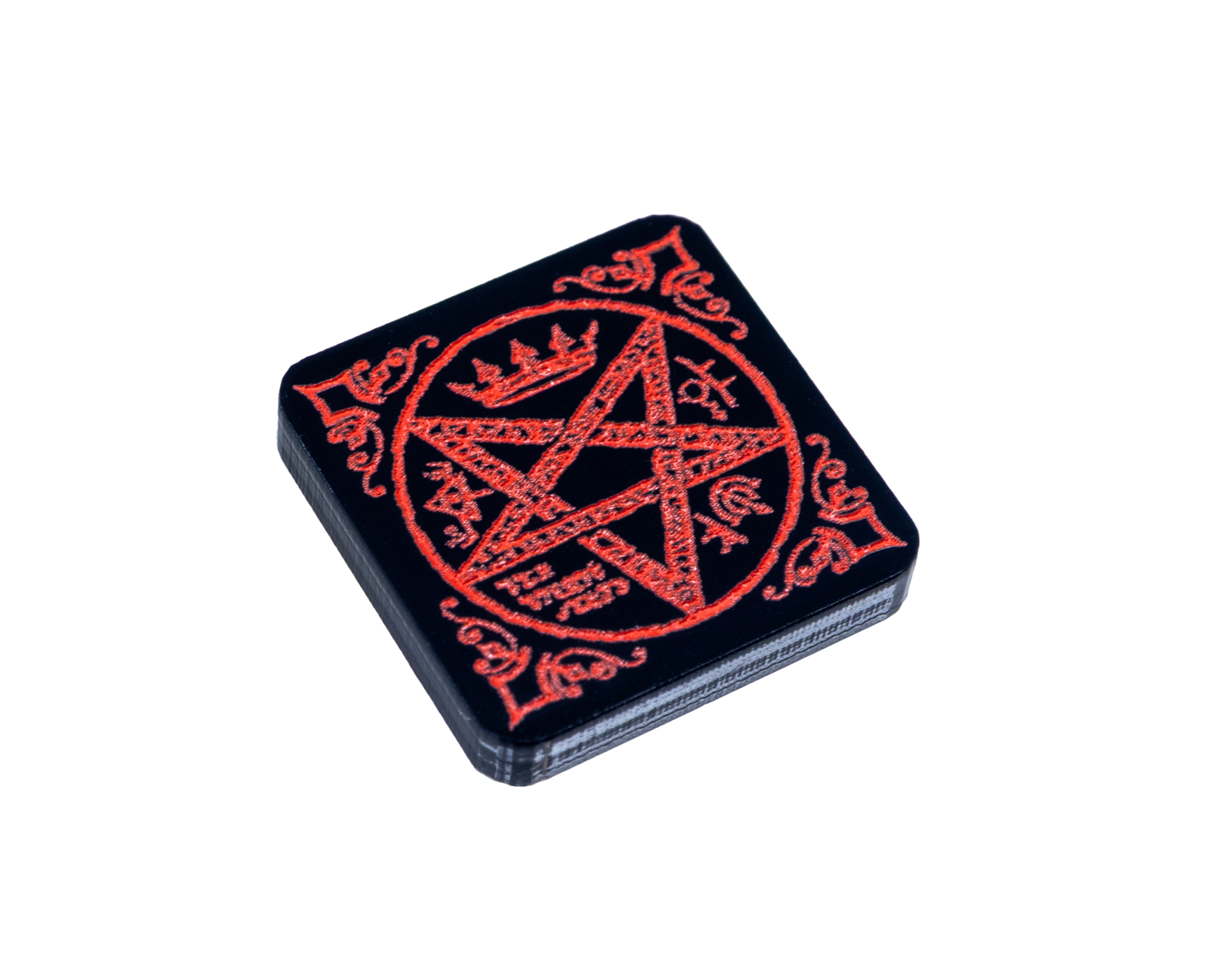 These thematic, double sided acrylic tokens have been lovingly designed with easy to read yet intricate designs, that will compliment your miniatures on the battlefield no matter where your allegiances lie...be it the forces of heaven, or hell.