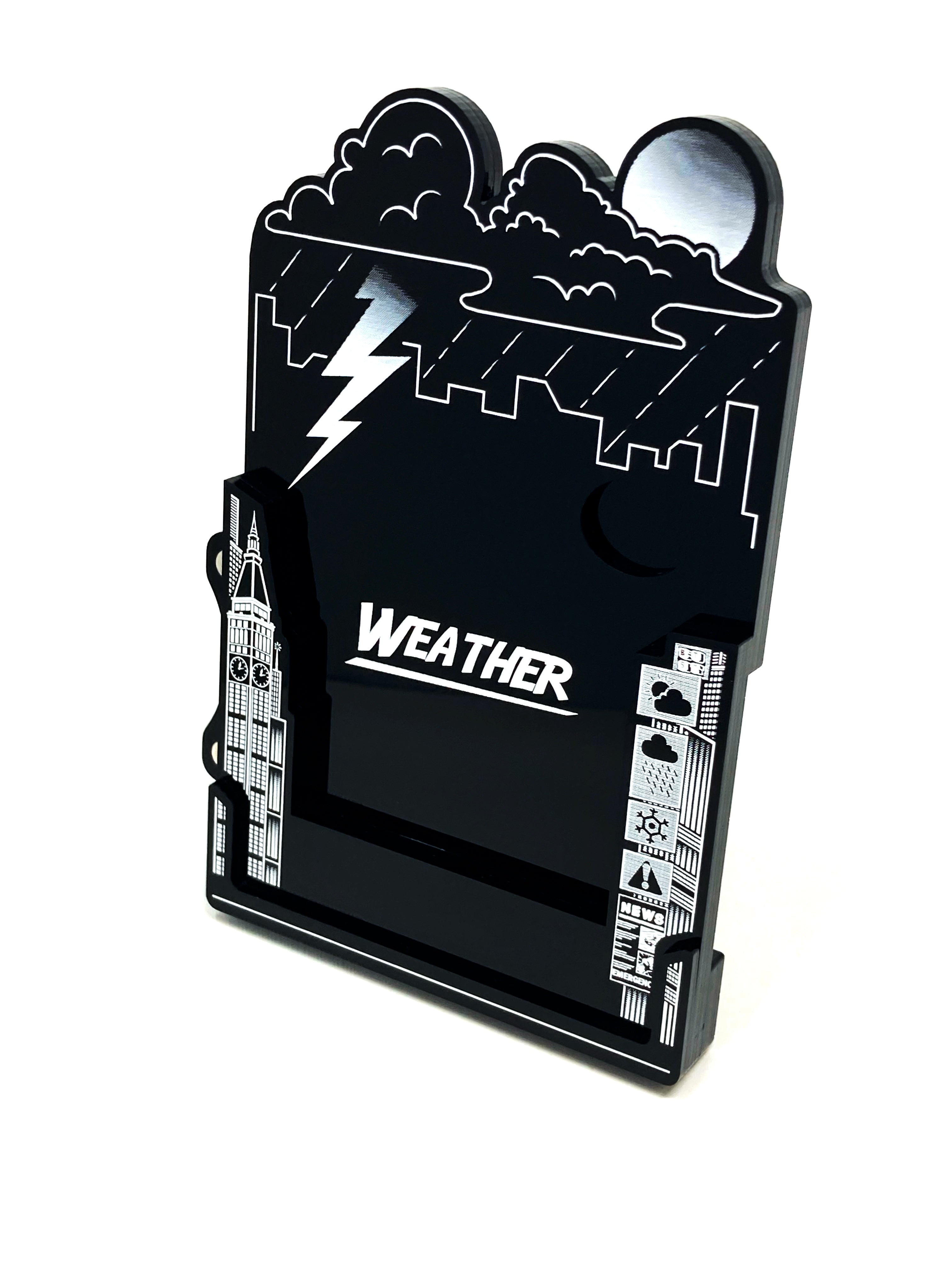 - Finger holes cut into and to the side of the card space on the weather stand, allow easy removal and flipping of cards